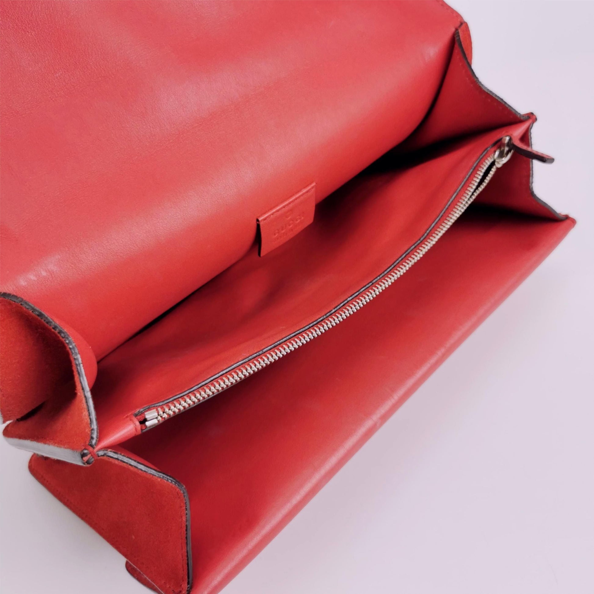 Introducing the Preloved Gucci Dionysus Small Shoulder Bag, a luxurious accessory for the fashion-forward woman. Crafted from high-quality suede and leather, this elegant bag measures 27.8 x 18.5 x 6 cm, perfect for your daily essentials. The bag features a solid pattern with a distinctive double tiger head buckle closure. Rated 8.5/10 for condition, this gently used bag shows signs of wear such as slight overall wear, moderate stains inside, and minor hardware wear, but remains in great shape. Elevate your style with this iconic Gucci piece. |