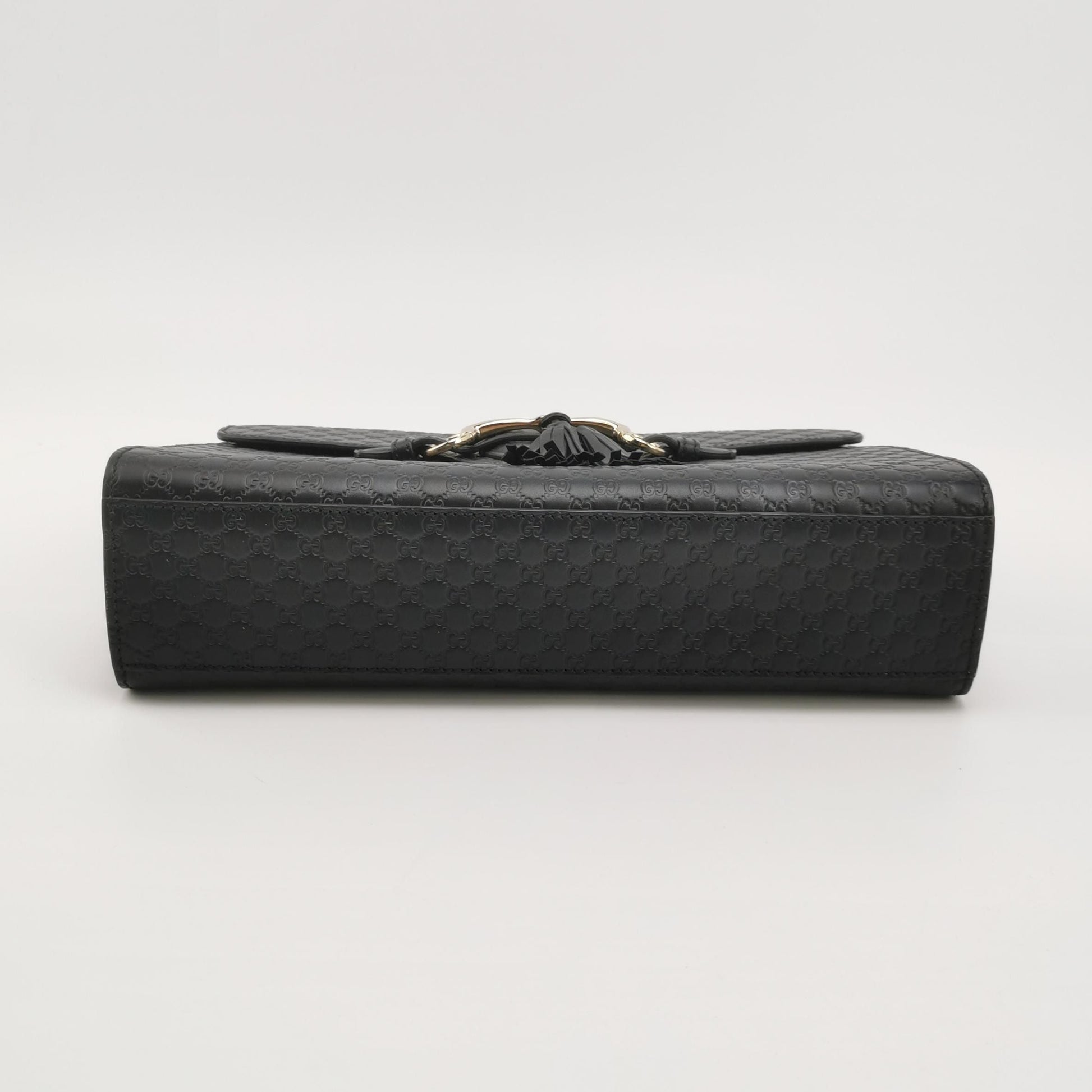 Introducing the Preloved Gucci Emily Medium Leather Shoulder Bag, a luxurious accessory that combines elegance with functionality. This bag features a monogram pattern, gold hardware, and a distinctive horsebit detail with tassel. Crafted from high-quality leather, it measures 30 x 18.5 x 8.5 cm, making it the perfect size for your daily essentials. Rated 9.5/10 for condition, this bag shows minimal signs of wear, maintaining its excellent appearance. Elevate your wardrobe with this iconic Gucci piece. |