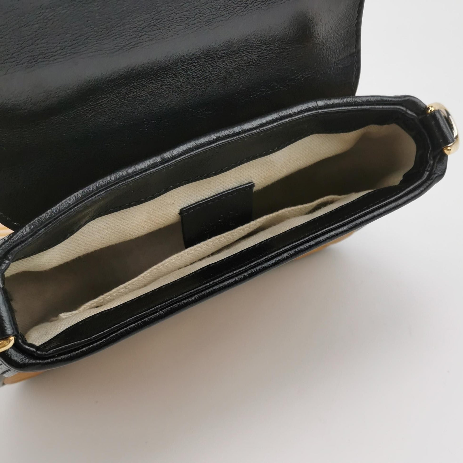 Normal signs of use, including slight wear on the body, hardware, and straps, as well as minor interior stains and creases on the sides