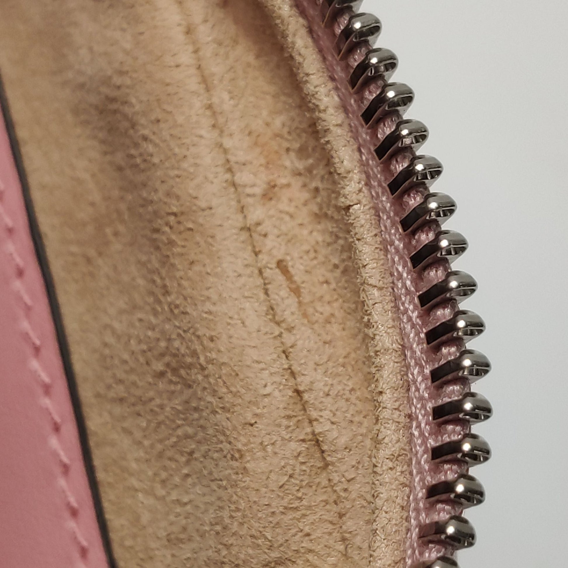 Minor stains on the body, slight wear on hardware, minor wear on the back of the bag, minor stains inside, slight wear on the bottom