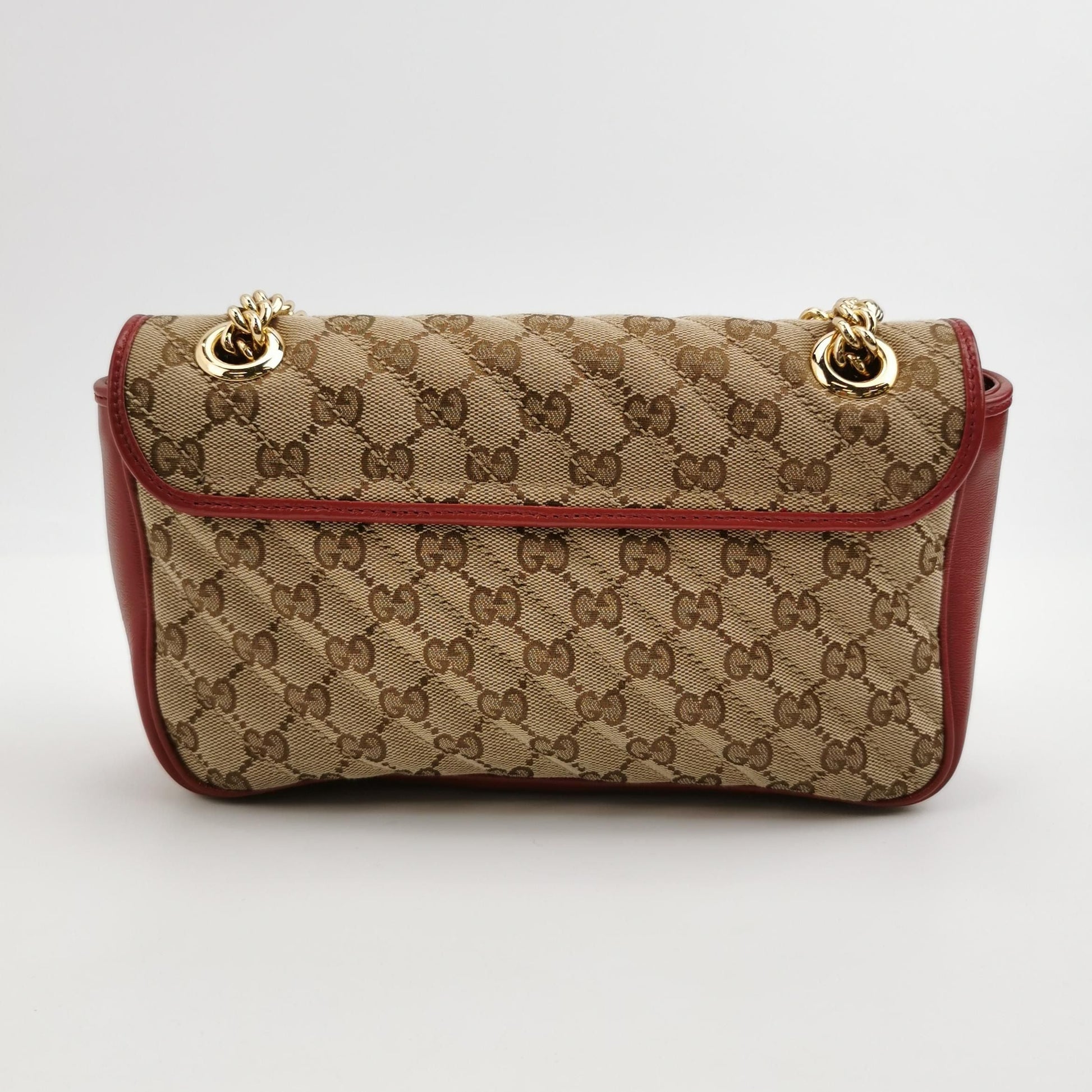 Preloved Gucci GG Marmont Small Leather and Canvas GG Monogram Double G Flap Shoulder Bag 250606781225855