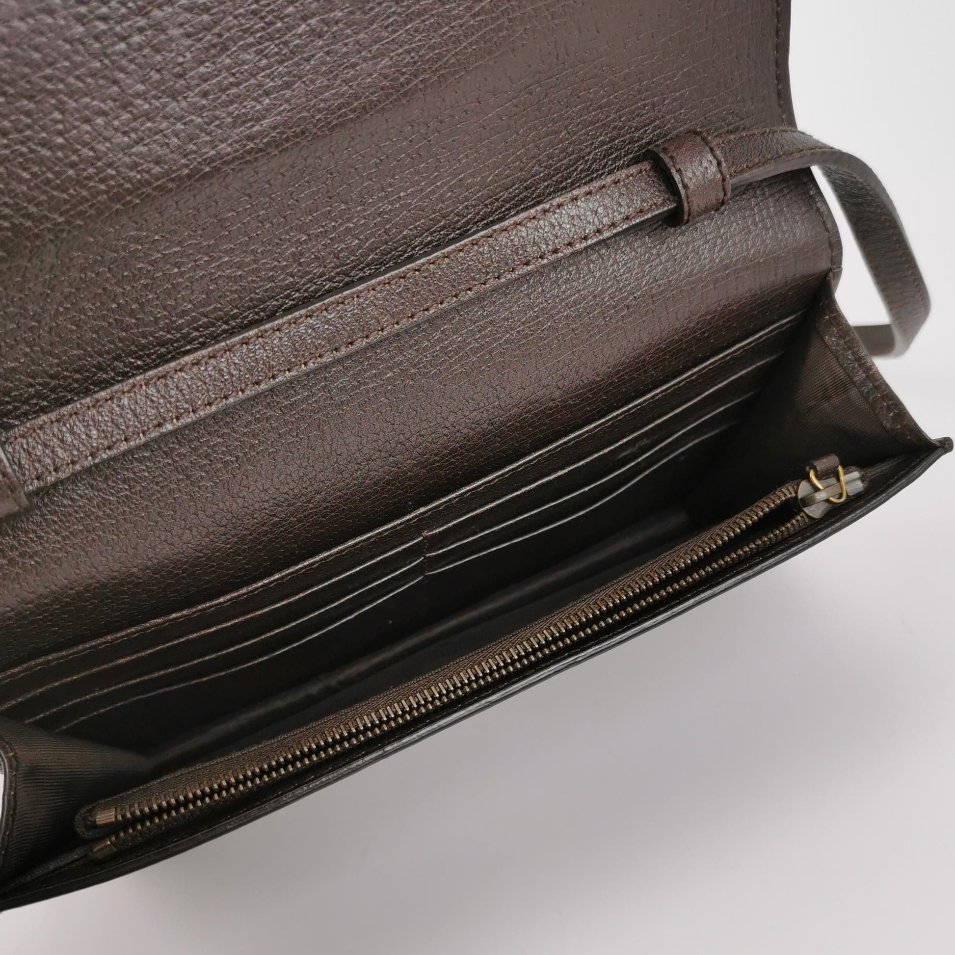 Minor wear on the body, slight wear on the hardware, minor wear on the lining, slight wear on the shoulder strap
