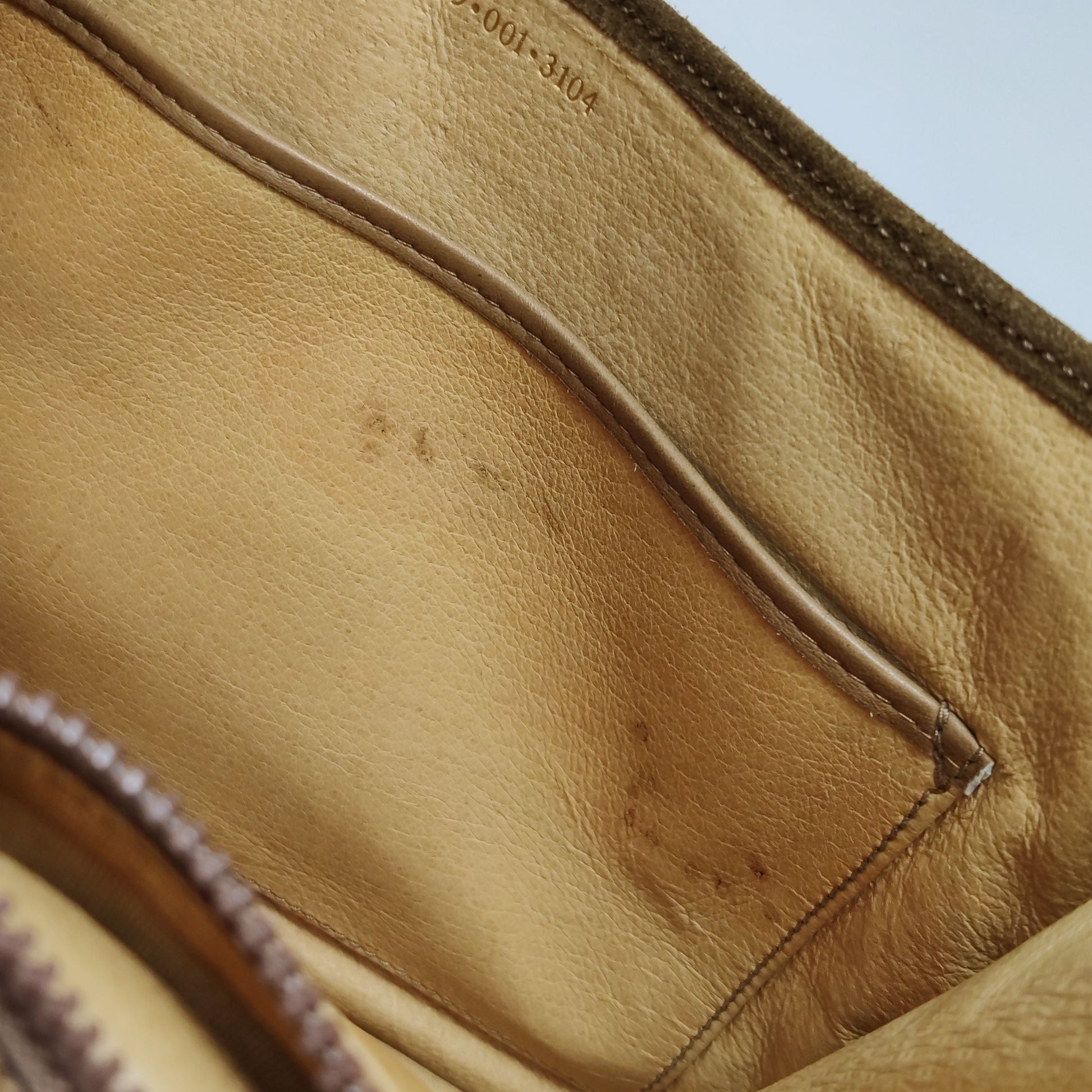 Slight overall stains on the body, moderate wear on the hardware, minor wear on the strap and bottom corners