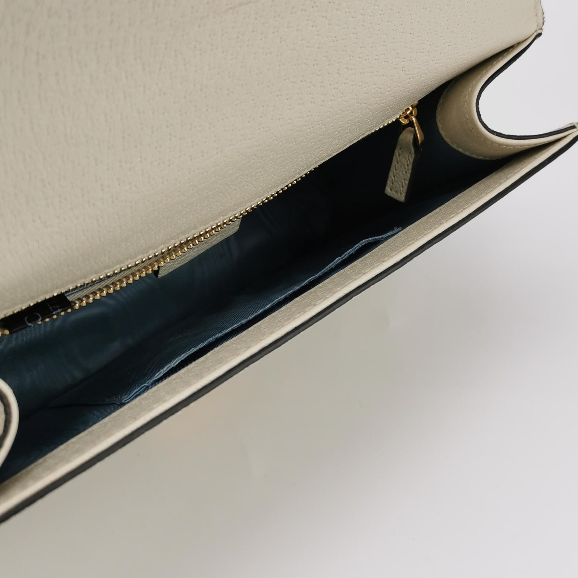 | Introducing the Preloved Gucci Sylvie Small Crossbody Bag, a chic and stylish accessory for the modern woman. This bag features a unique bee and star print on a combination of leather and canvas, with a practical metal buckle closure. Measuring 25.5 x 16.5 x 7.5 cm, it's the perfect size for your daily essentials. Rated 9.5/10 for condition, this bag shows only slight signs of wear, maintaining an excellent appearance. The adjustable strap and removable decorative accessories add versatility to this already fashionable piece. Elevate your wardrobe with this iconic Gucci bag. | |