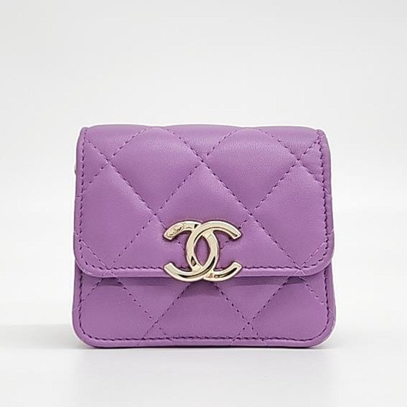 Chanel Purple Leather Coco Chain Card Wallet
