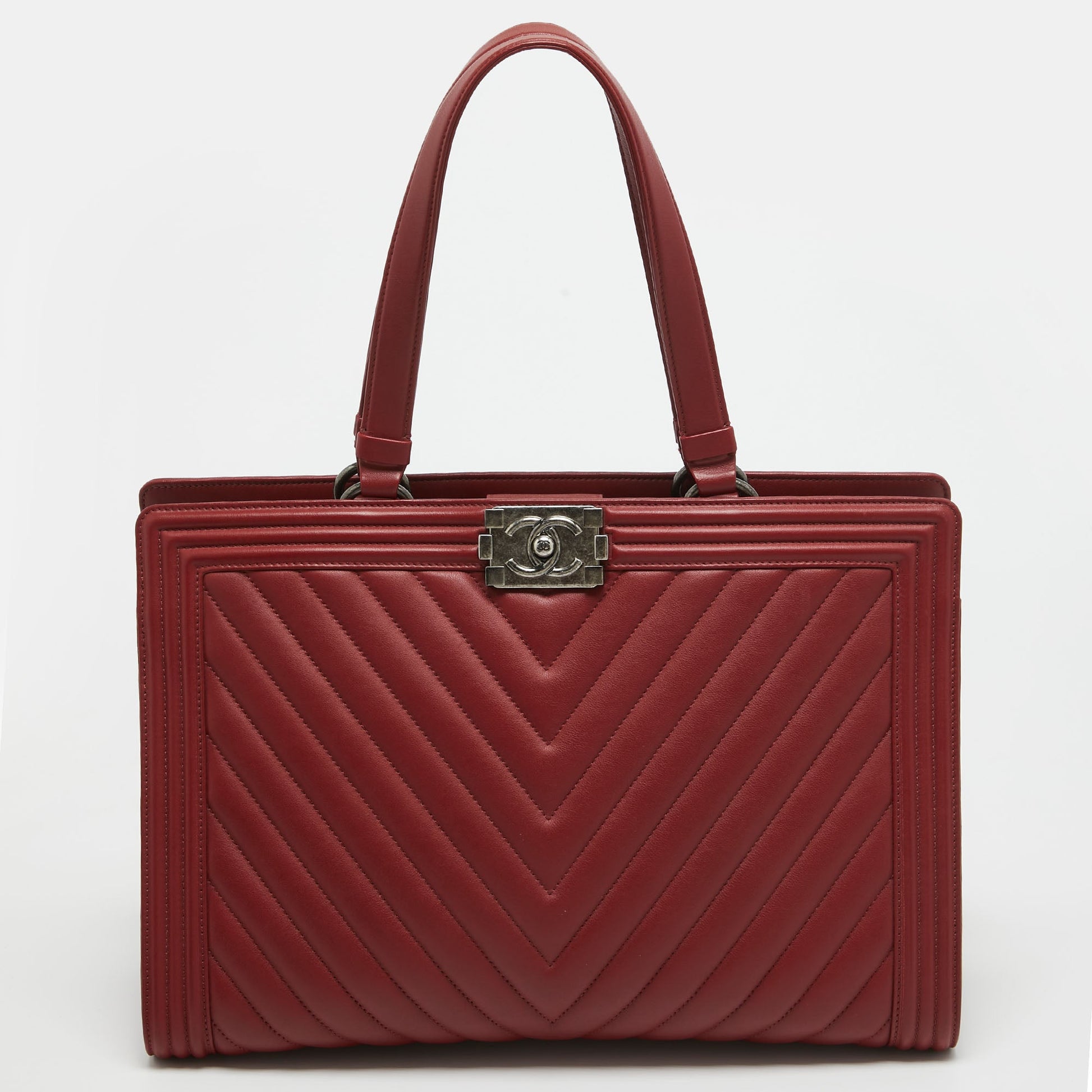 Discover the iconic Chanel Red Chevron Quilted Leather Large Boy Shopper Tote, a stunning addition to your collection of designer luxury handbags. Crafted from premium leather, this tote combines elegance with practicality, featuring a spacious interior for all your essentials. Renowned for its quality and timeless design, Chanel ensures that every piece reflects superior craftsmanship. Use our price comparison platform to buy luxury handbags online and find the best deals available. Trust our expertise in luxury fashion to guide you in making informed purchases. Elevate your style with this statement piece while enjoying the benefits of competitive pricing and reliable information.