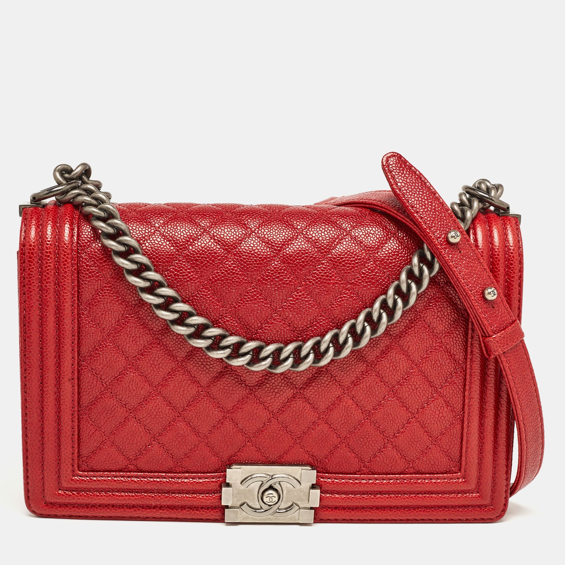 Discover the iconic Chanel Red Quilted Caviar Leather New Medium Boy Bag, a must-have in designer luxury handbags. Crafted from premium caviar leather, this bag features a striking quilted design and a chic silver-tone chain. Ideal for both casual and formal occasions, it combines style with practicality. Looking to buy luxury handbags online? Our price comparison platform helps you find the best deals on this coveted piece. Trust in Chanel's reputation for quality and timeless elegance. With our expert insights, you can make informed decisions and secure your luxury handbag at an unbeatable price. Elevate your collection today!