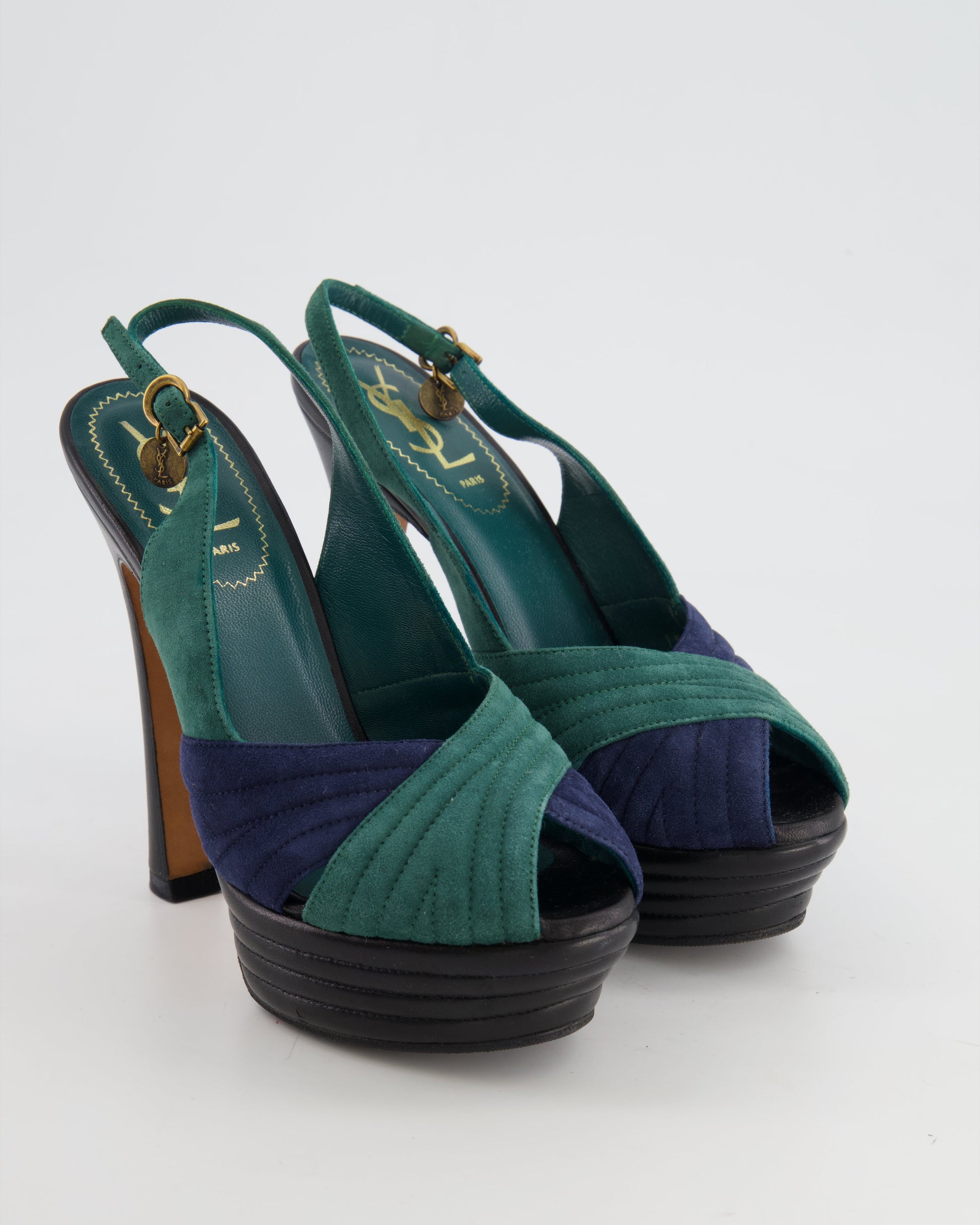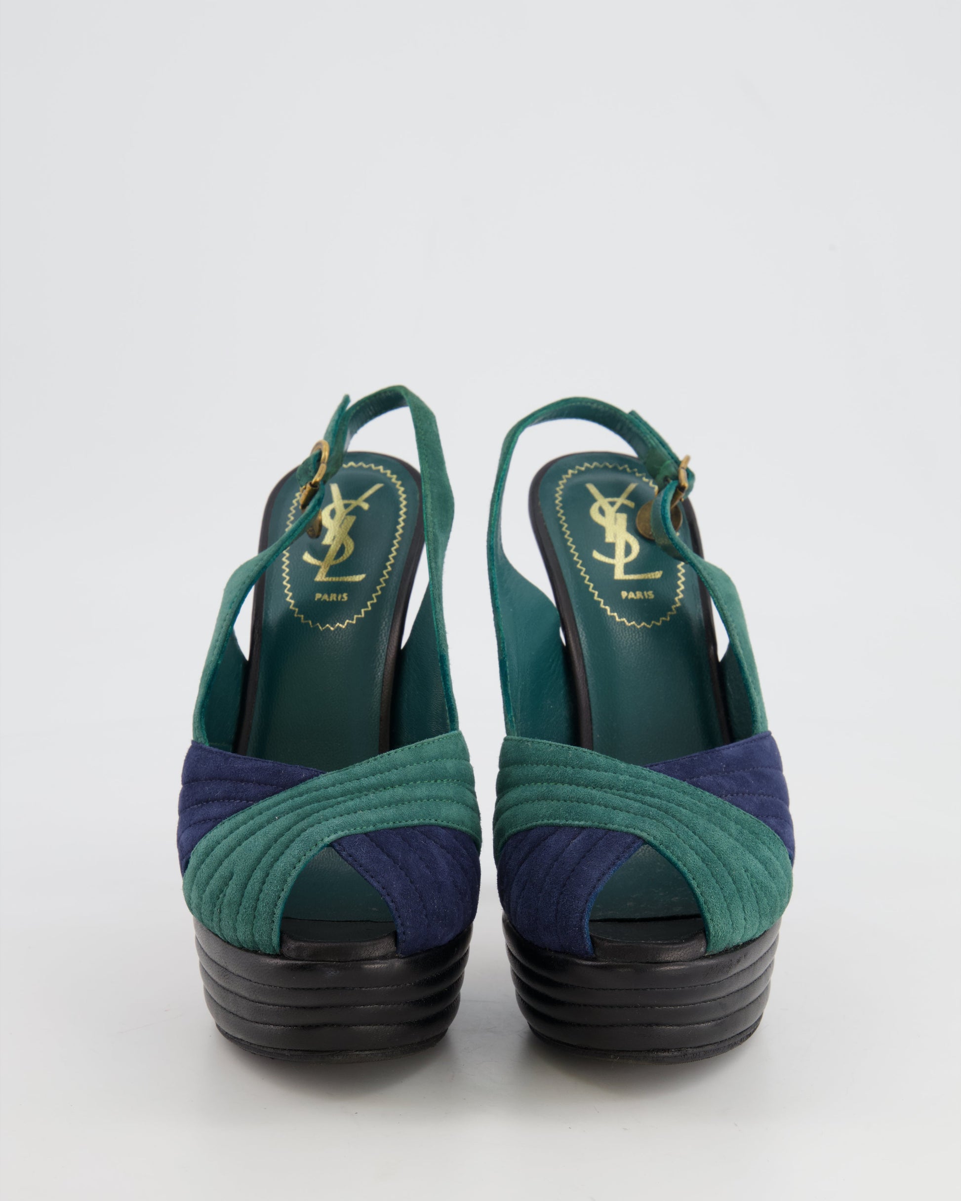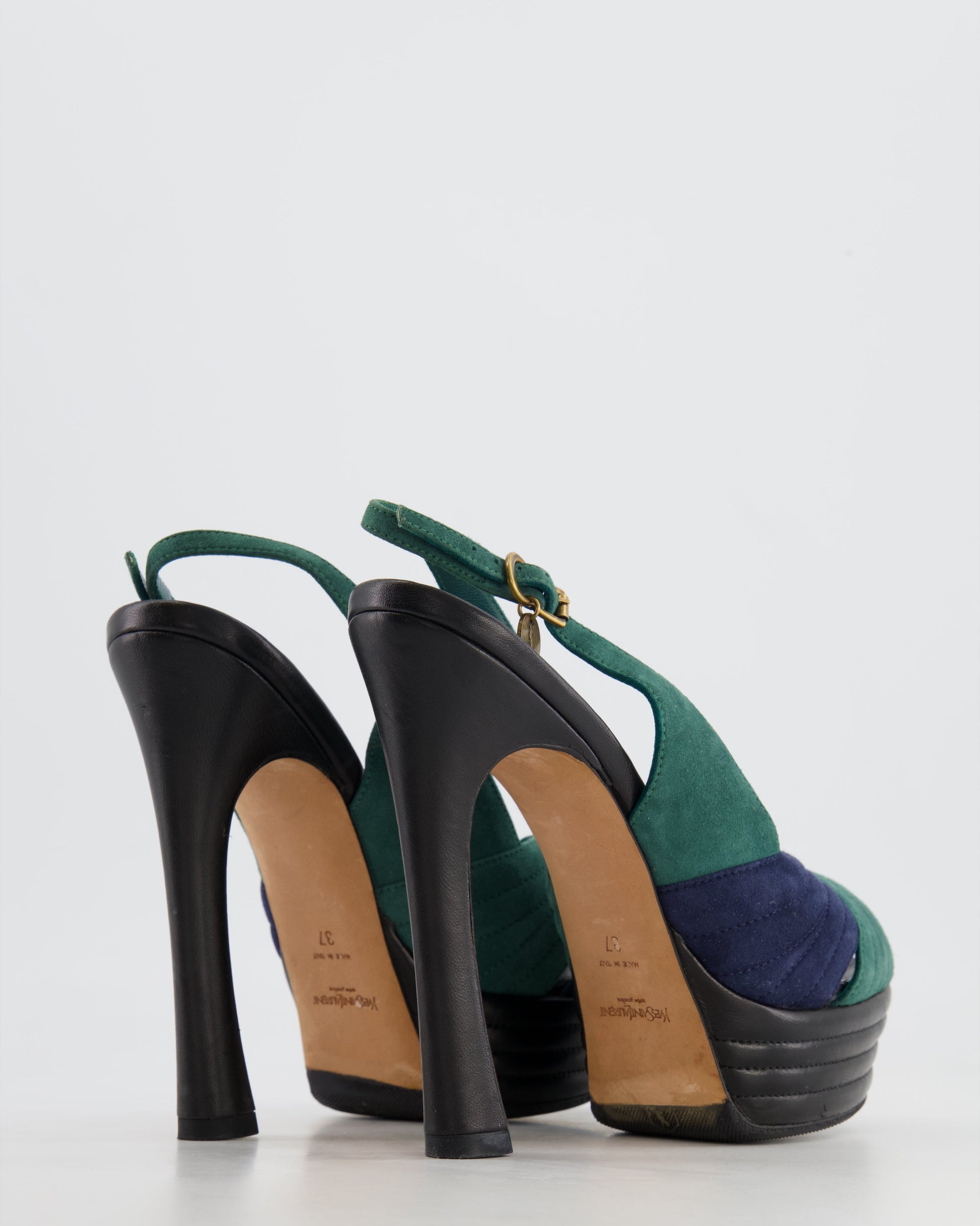 Saint Laurent Black, Green and Blue Suede Platform Heels Size EU 37