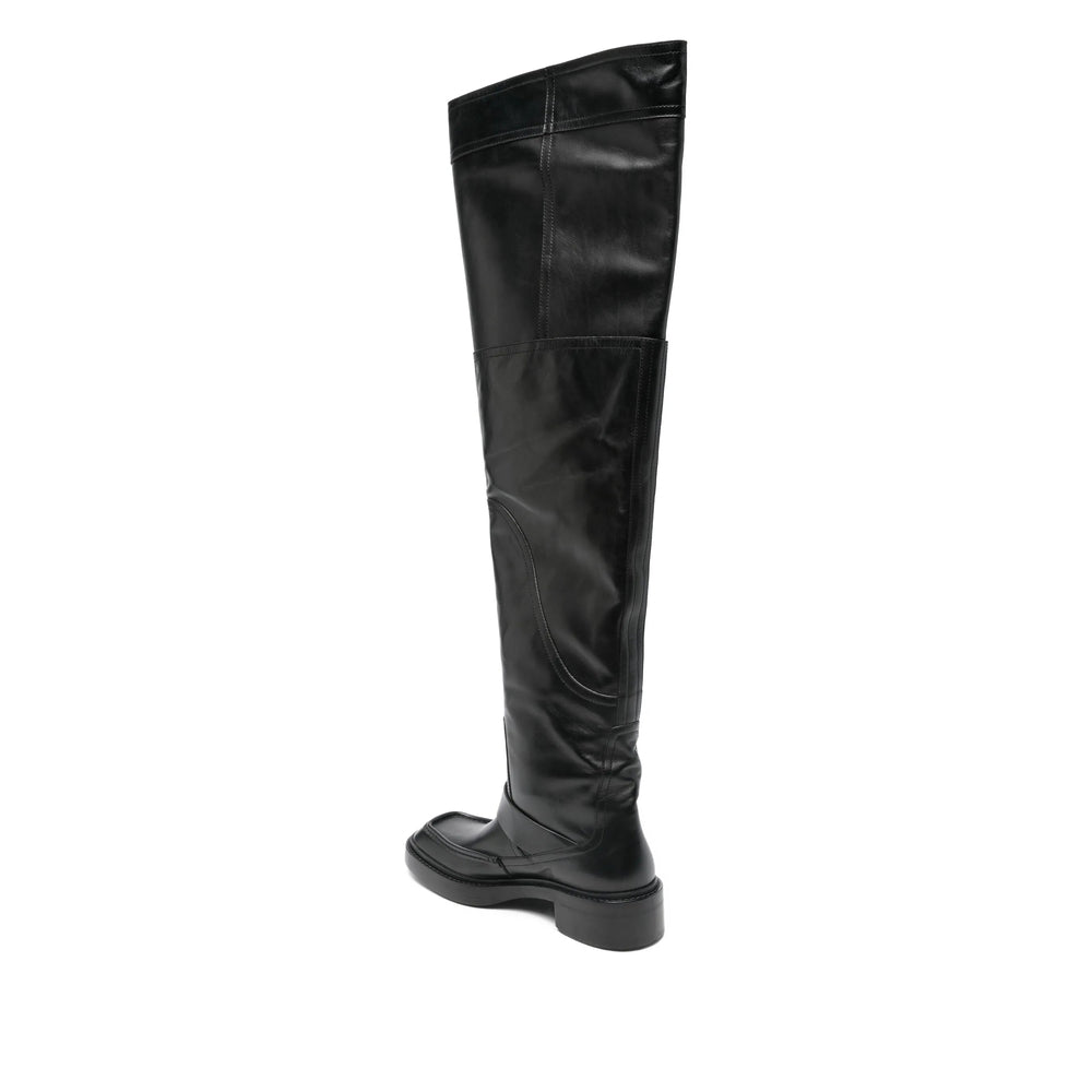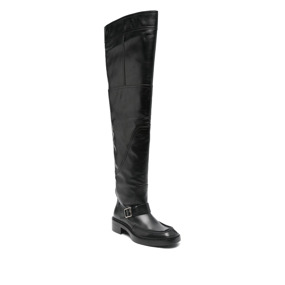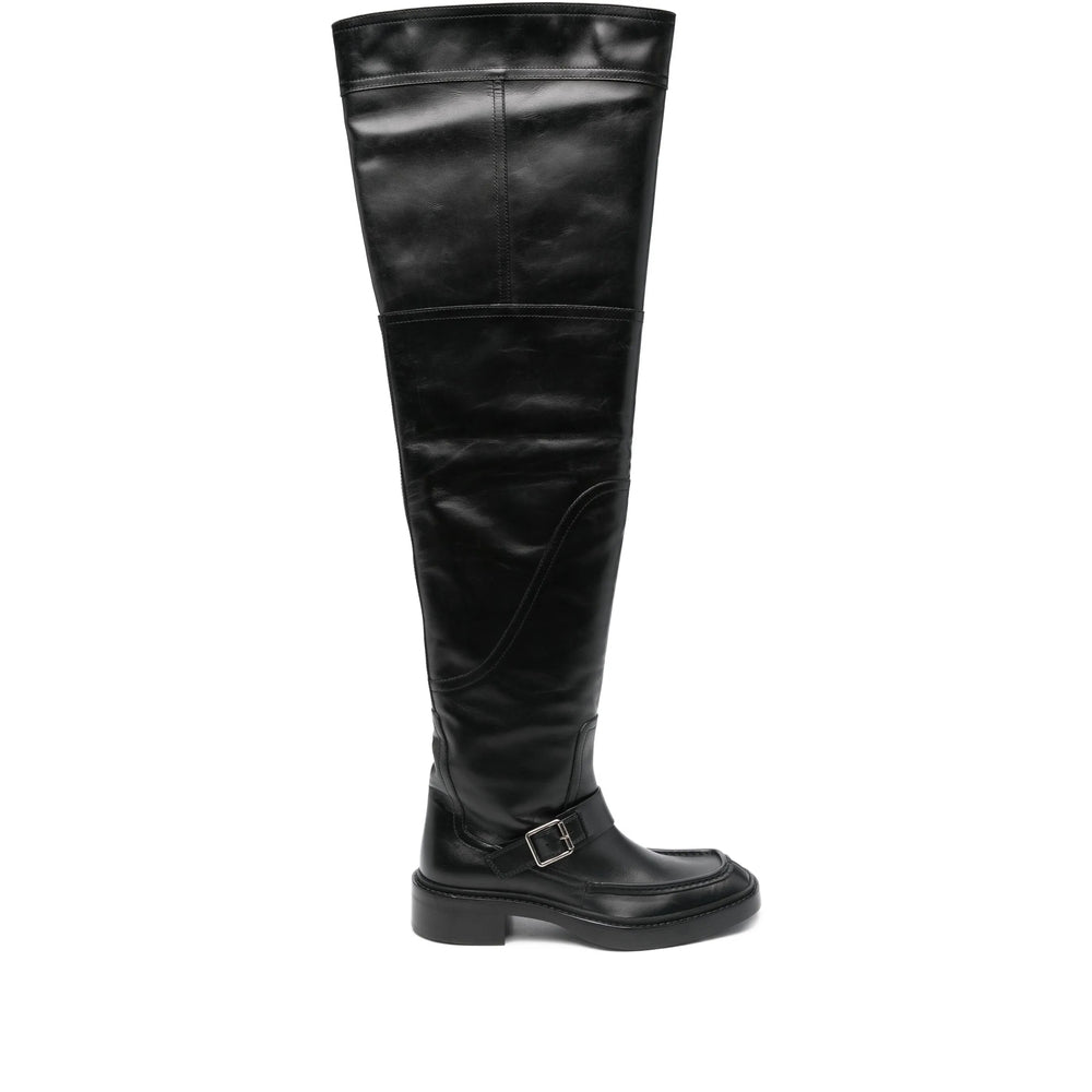 black leather upper buckle detail square toe