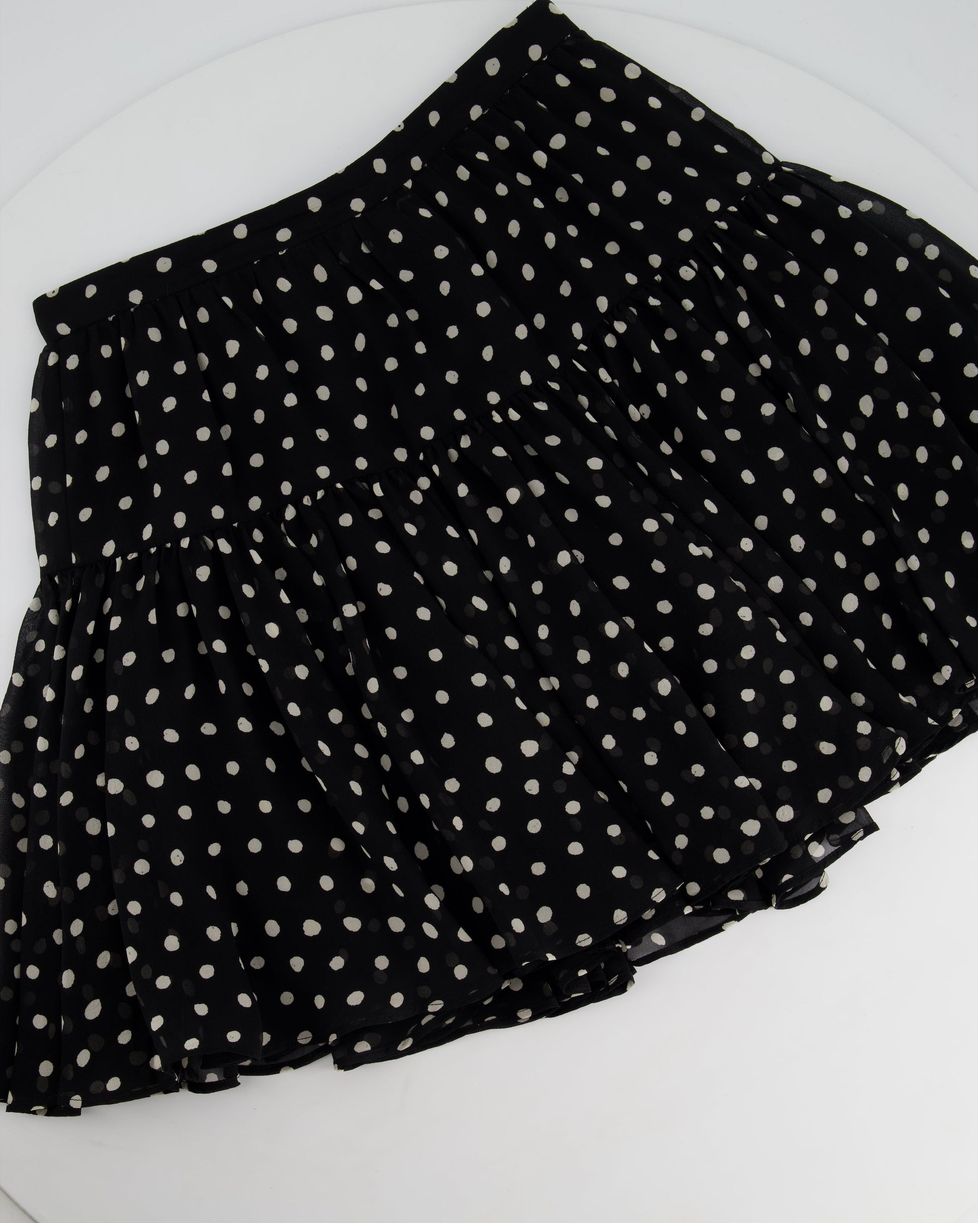 Saint Laurent Black & White Polkadot Silk Mini Skirt Size FR 36 (UK 8)