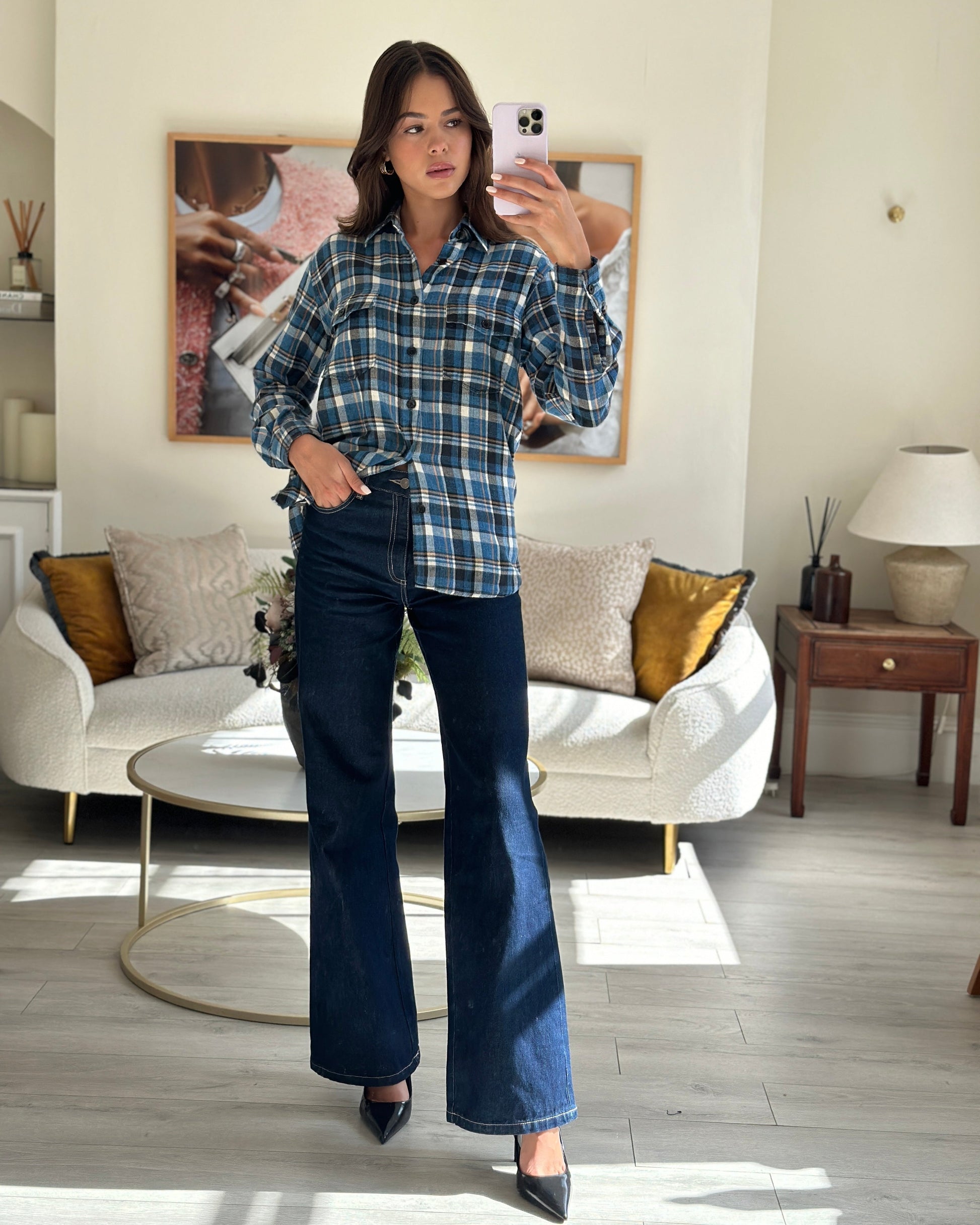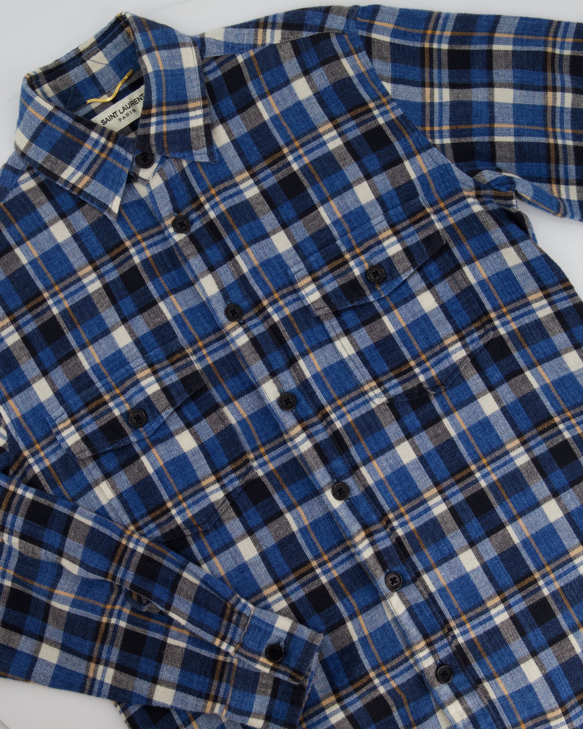 Saint Laurent Blue Plaid Long Sleeve Shirt Size S (UK 8)