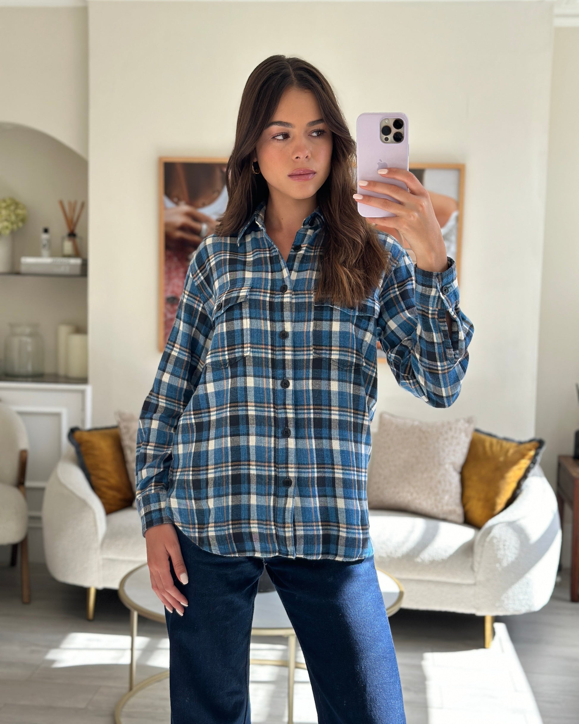 Saint Laurent Blue Plaid Long Sleeve Shirt Size XS (UK 6)