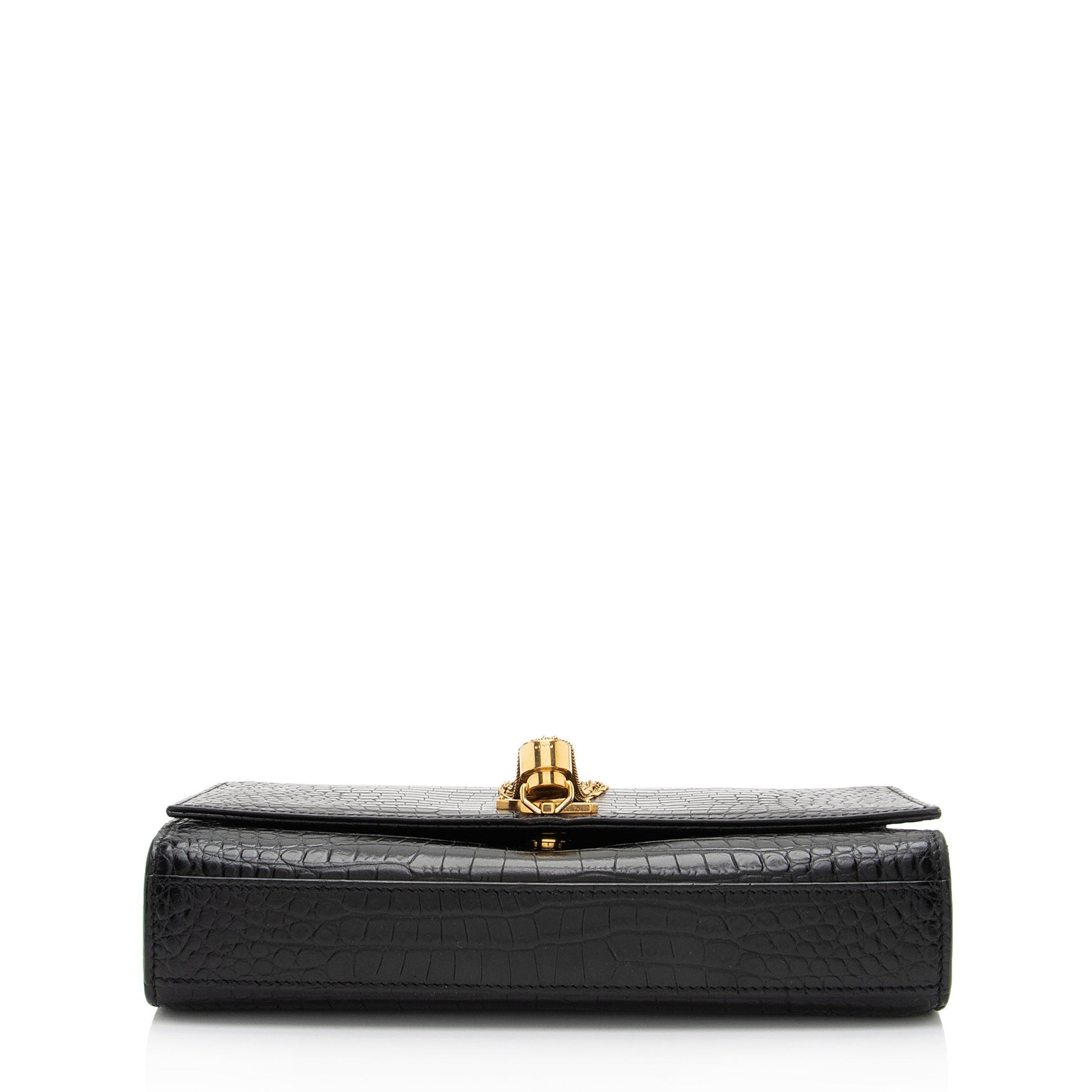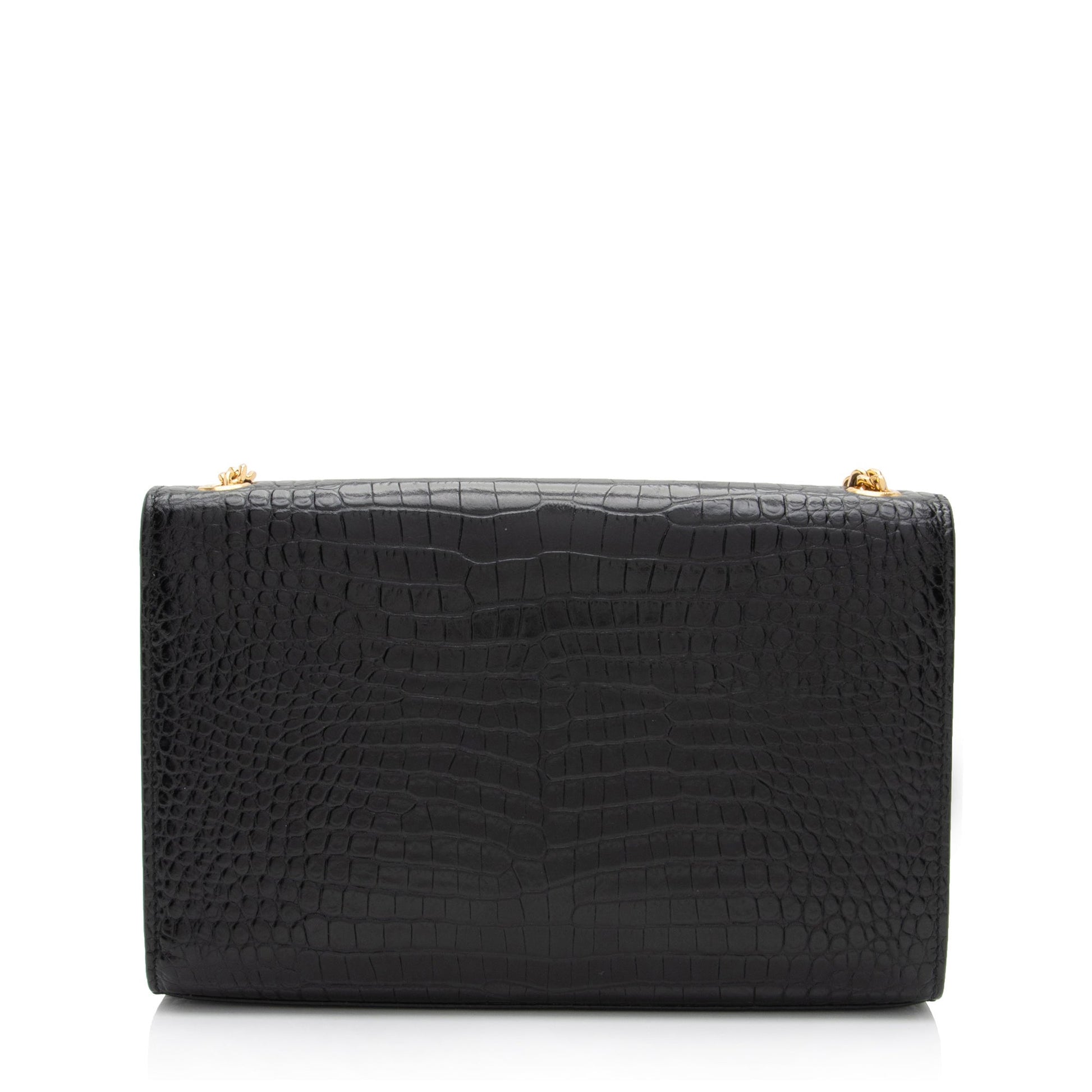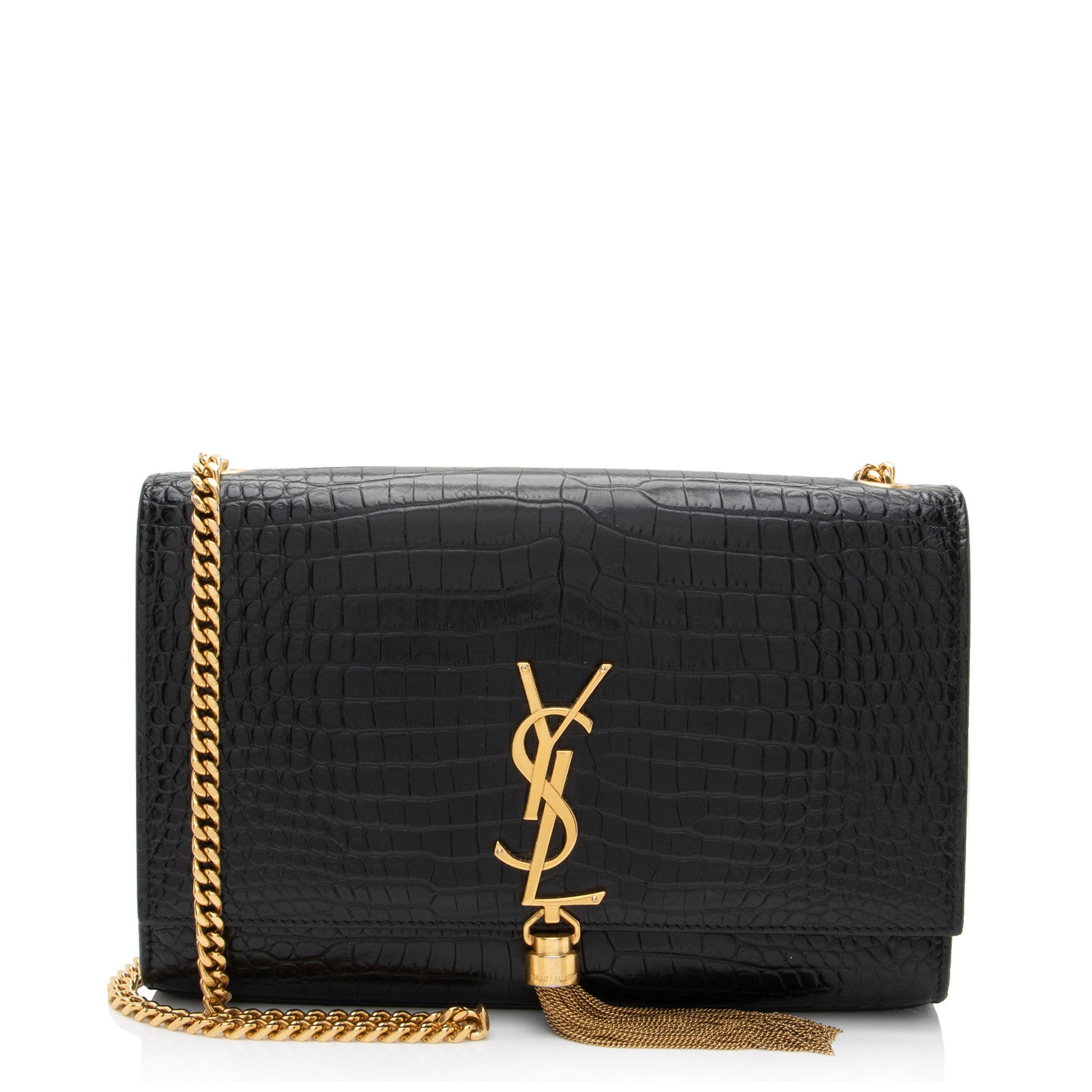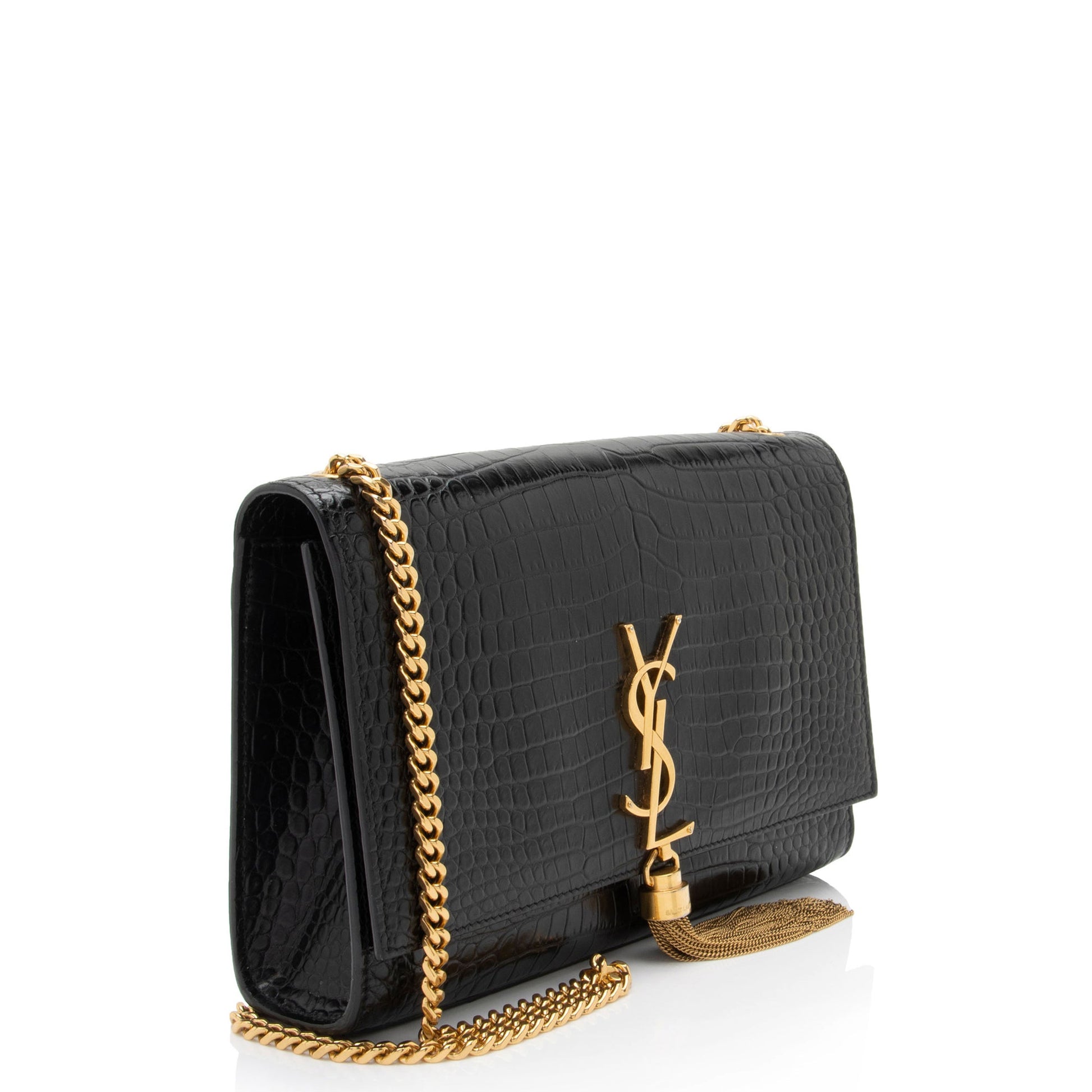 Saint Laurent Croc Embossed Leather Monogram Kate Tassel Medium Shoulder Bag (SHF-XGojHb)