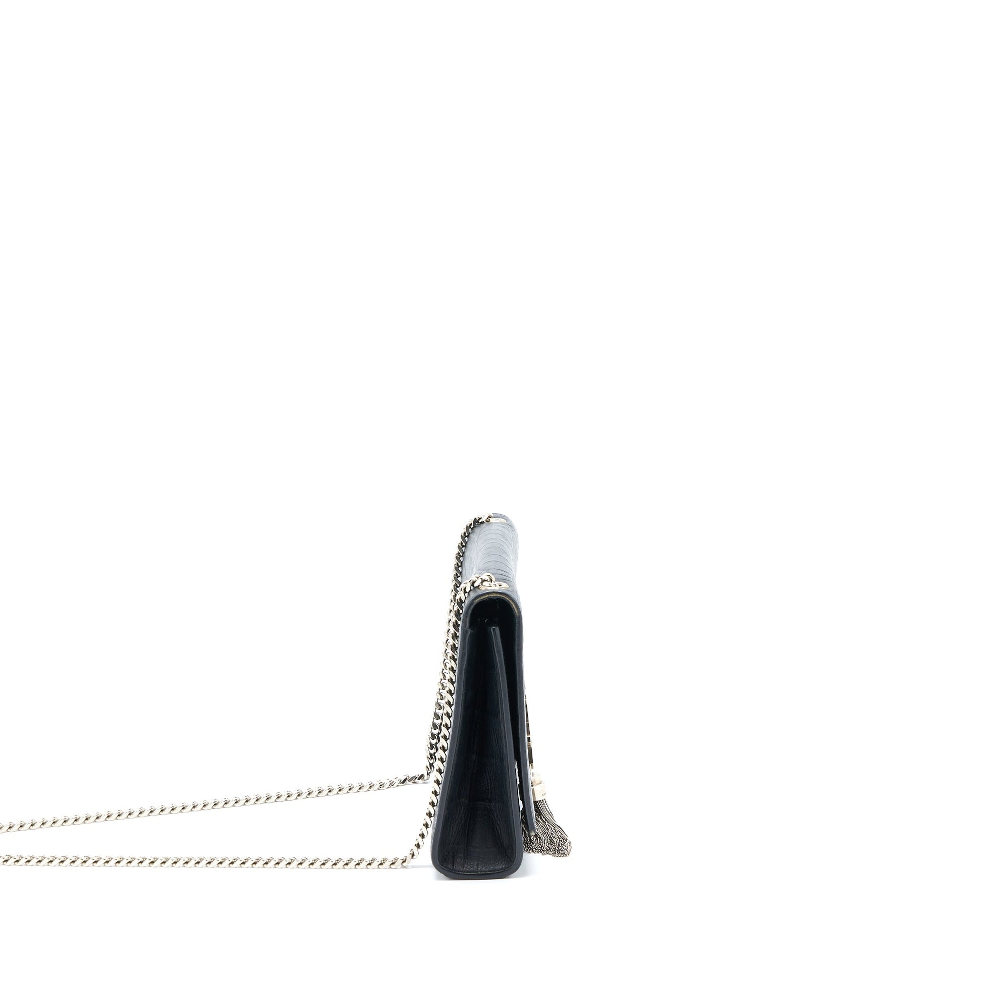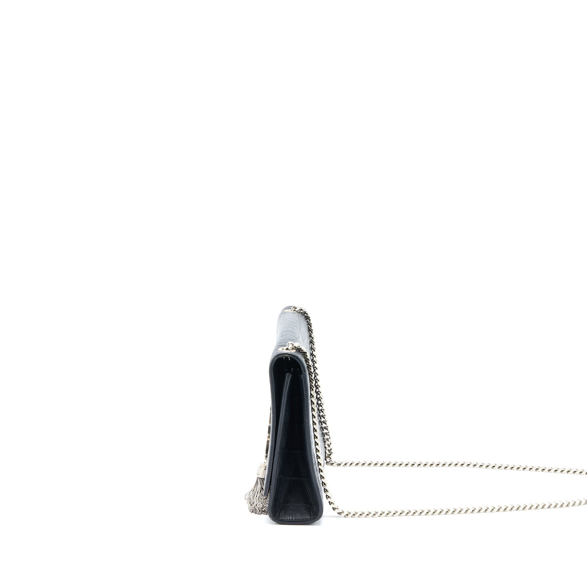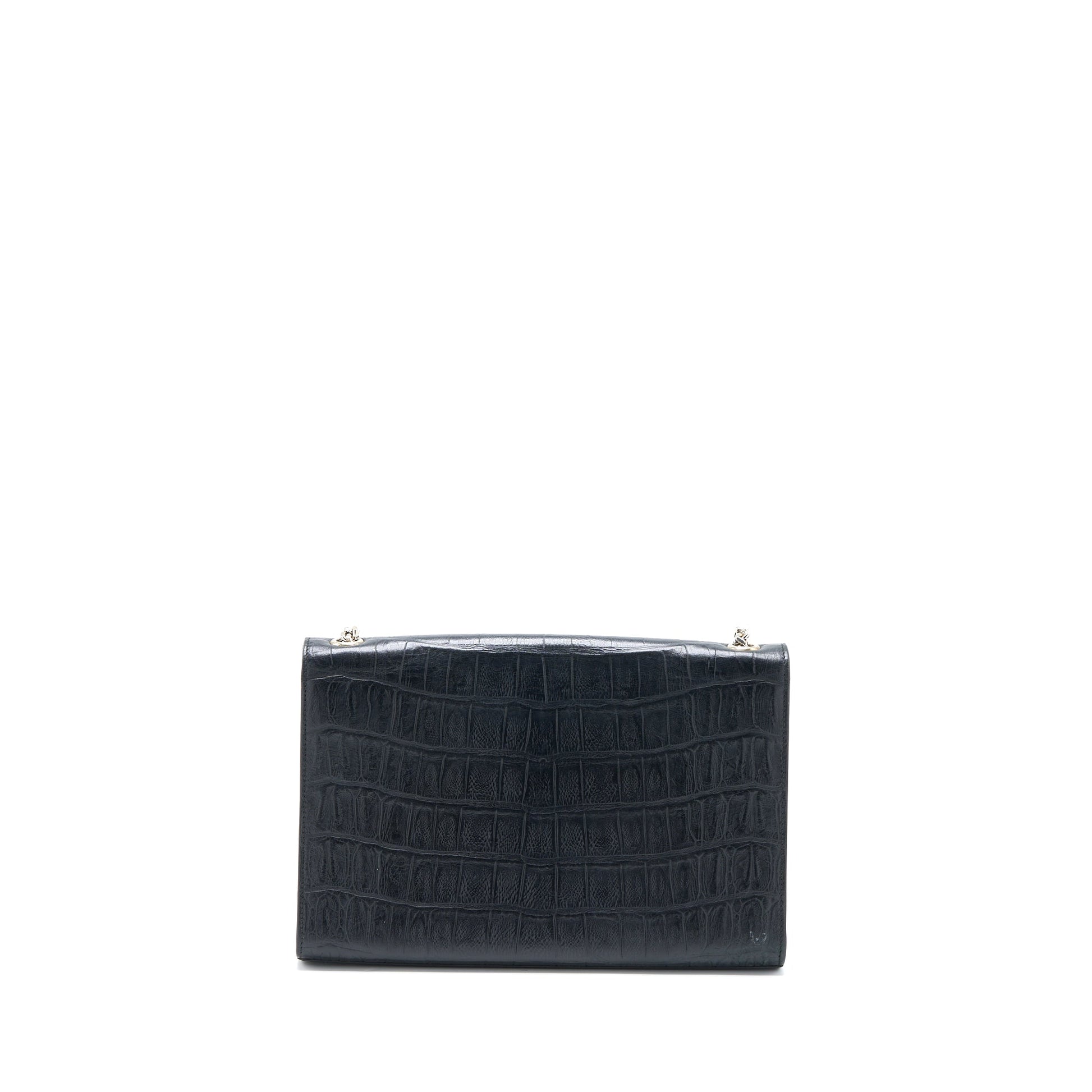 Saint Laurent Kate Bag Croc Embossed Leather Grey SHW