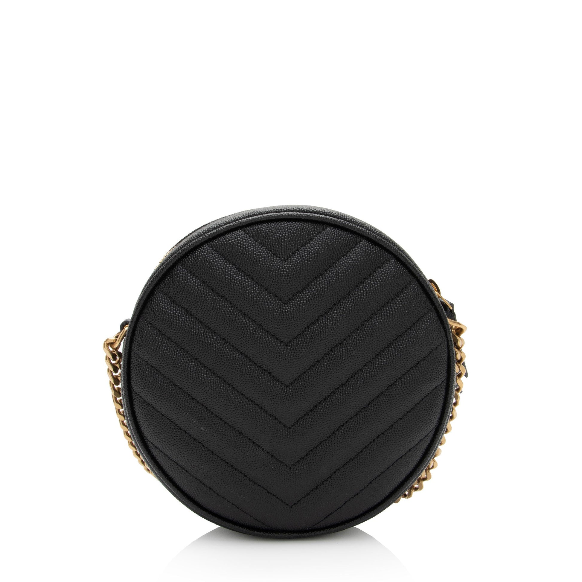 Saint Laurent Matelasse Calfskin Monogram Vinyle Round Camera Bag (SHF-uS4MX2)