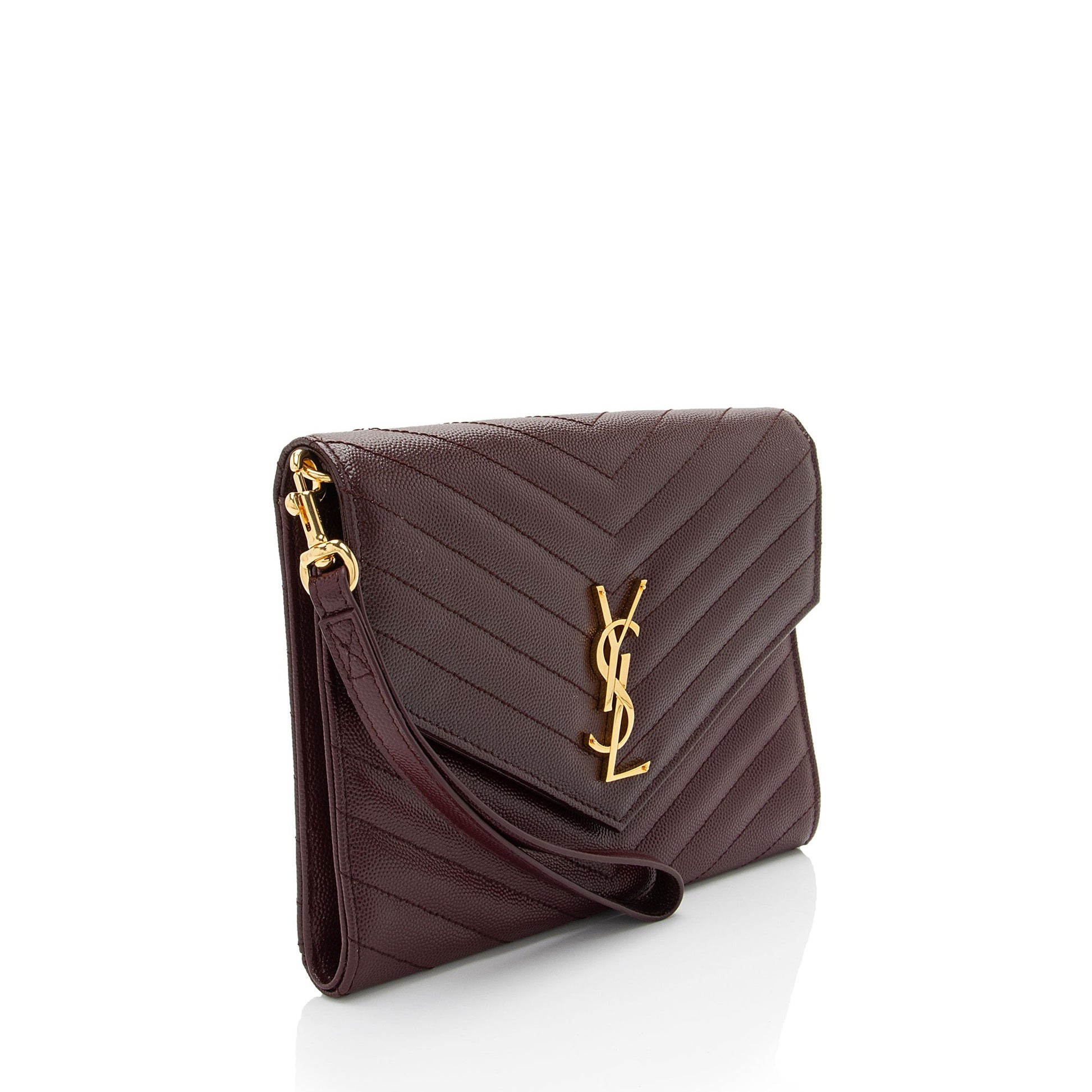 Saint Laurent Matelasse Grain de Poudre Monogram Envelope Pouch (SHF-lz1cXR)