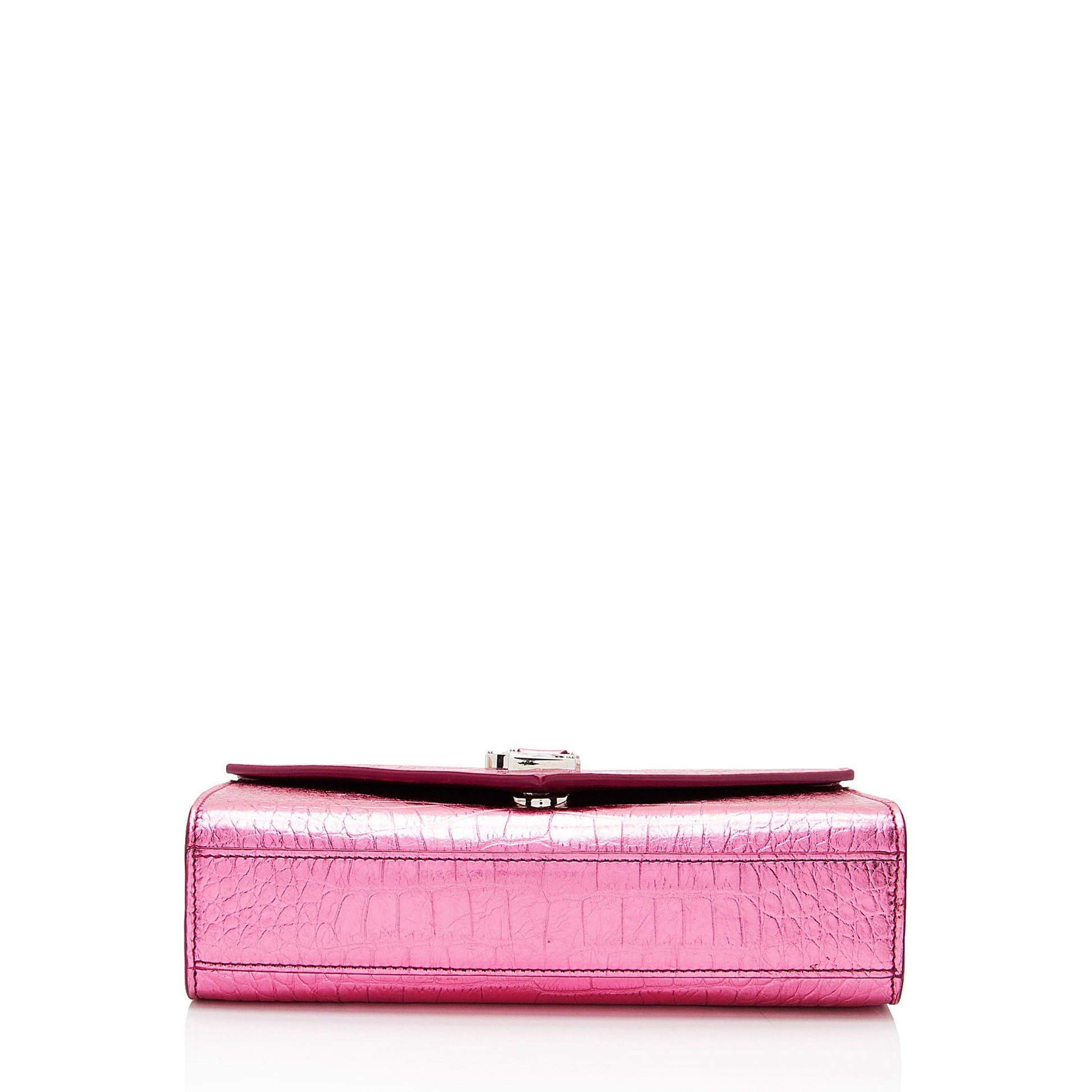 Saint Laurent Metallic Croc Embossed Leather Monogram Small Envelope Bag (SHF-v3reig)