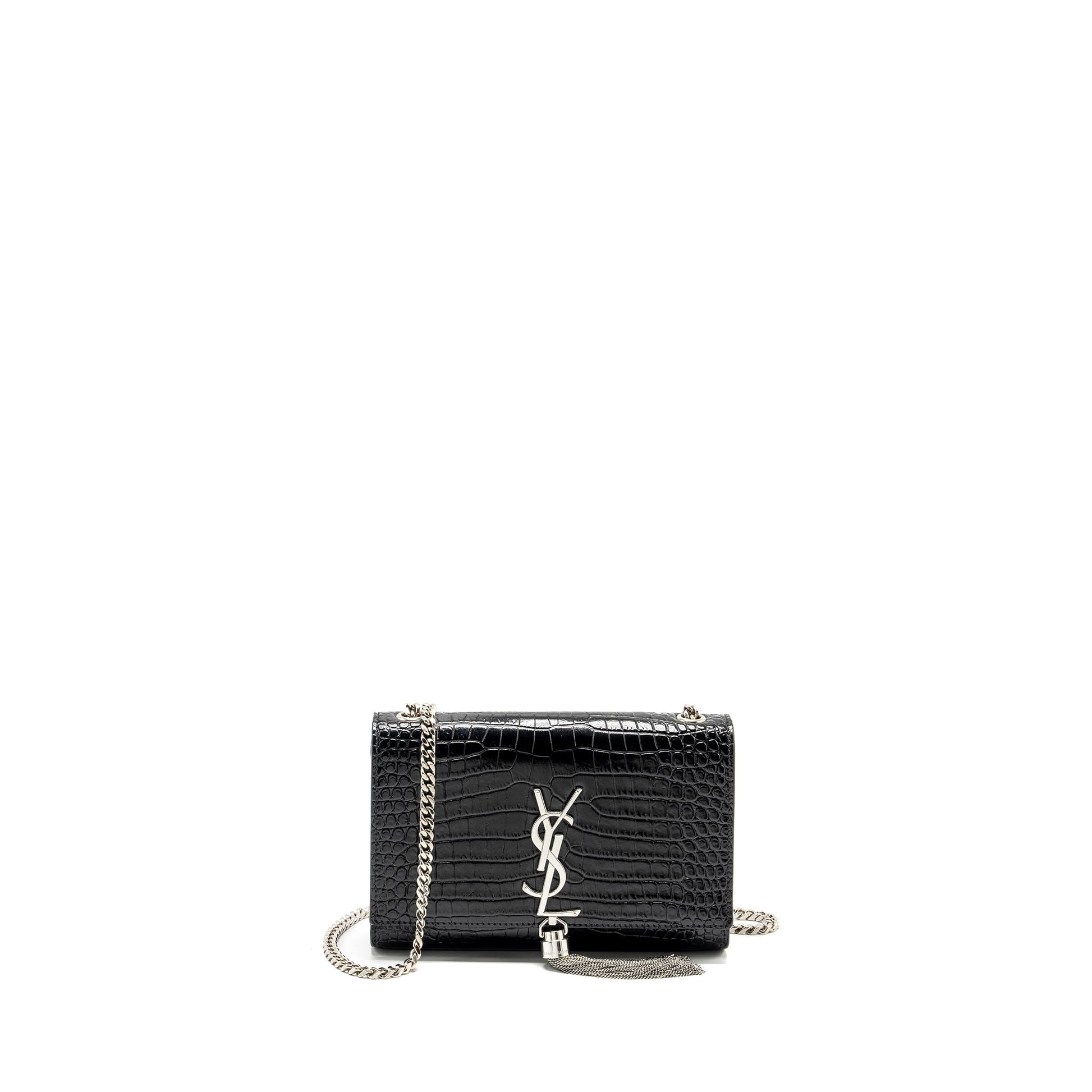 Saint Laurent /YSL Kate Small Chain Wallet With Tassel in Crocodile-Embossed Black SHW
