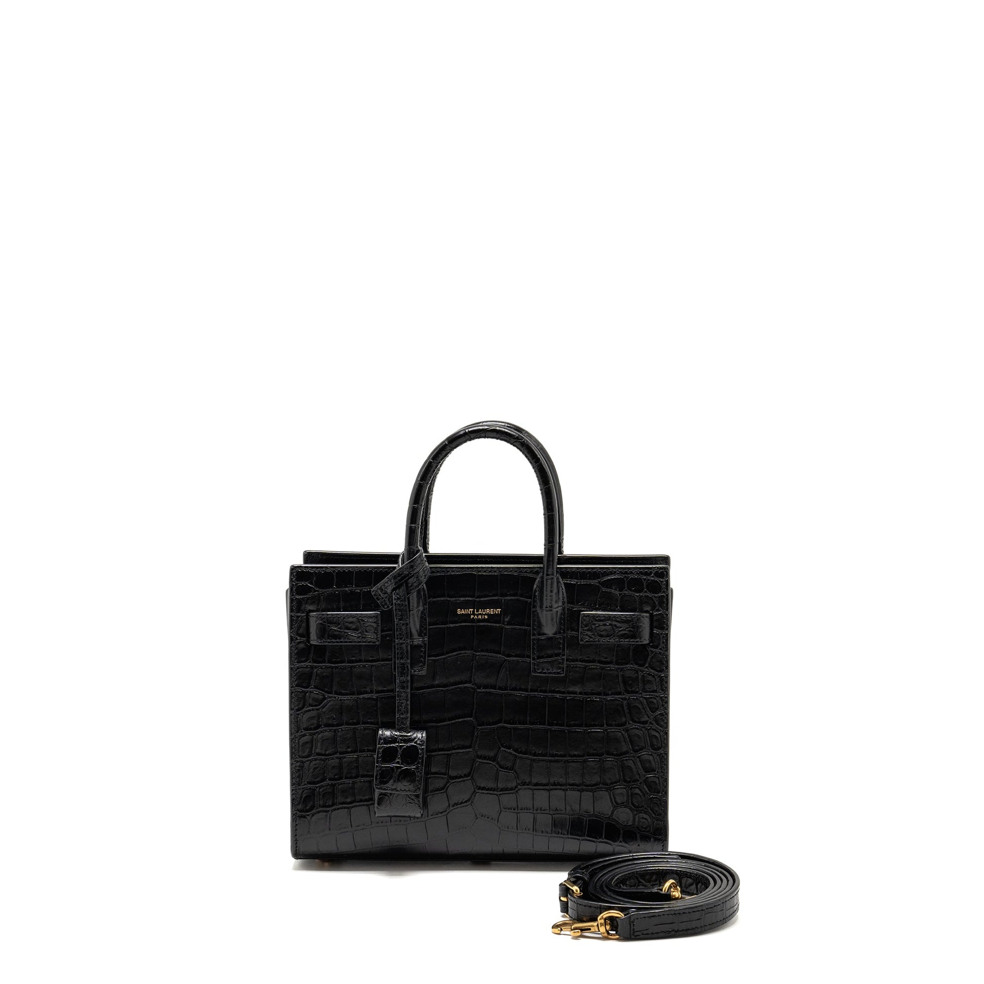 Saint Laurent/YSL Nano Sac de Jour Croc-Embossed Calfskin Black GHW