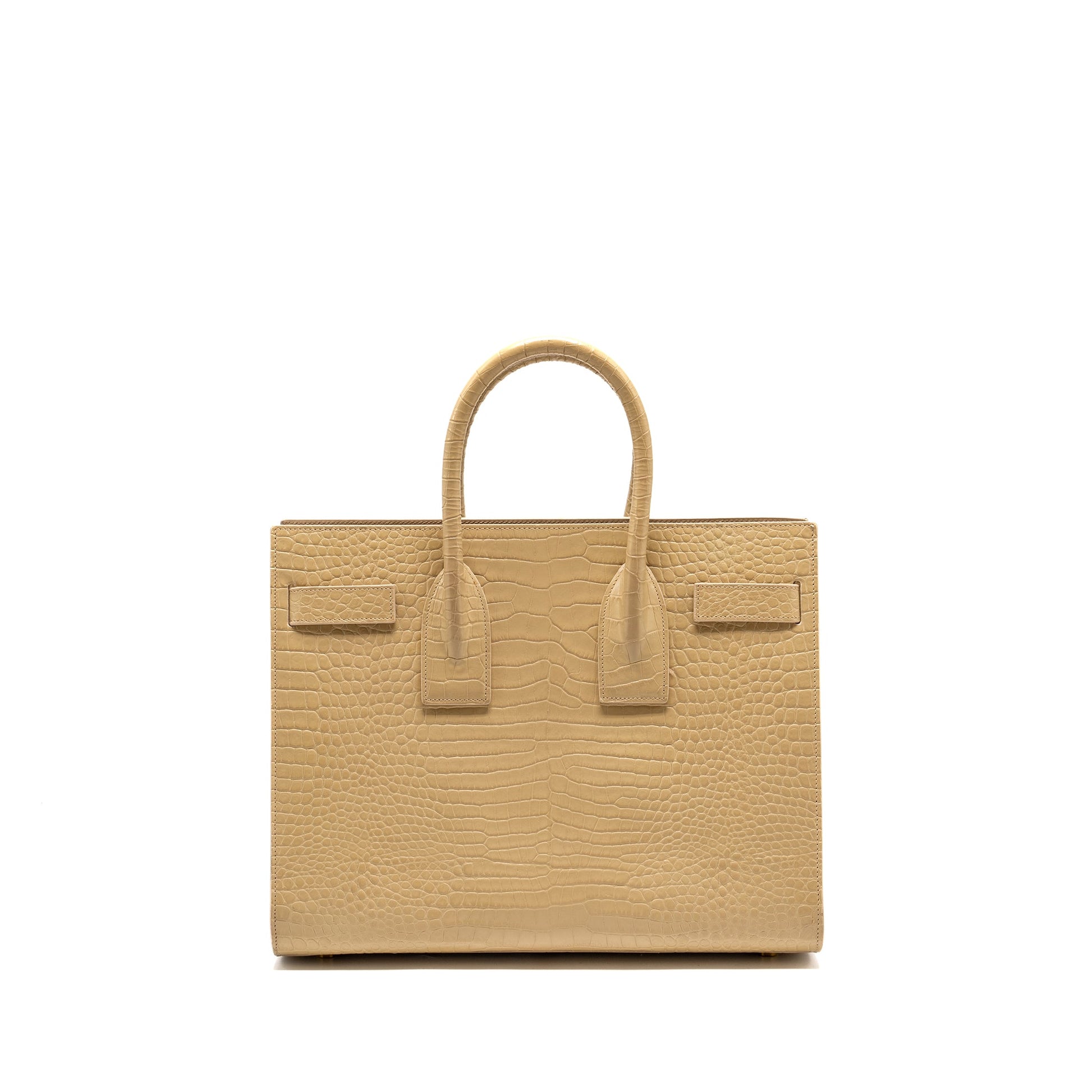 Saint Laurent /Ysl Sac De Jour Croc-Embossed Calfskin Beige GHW