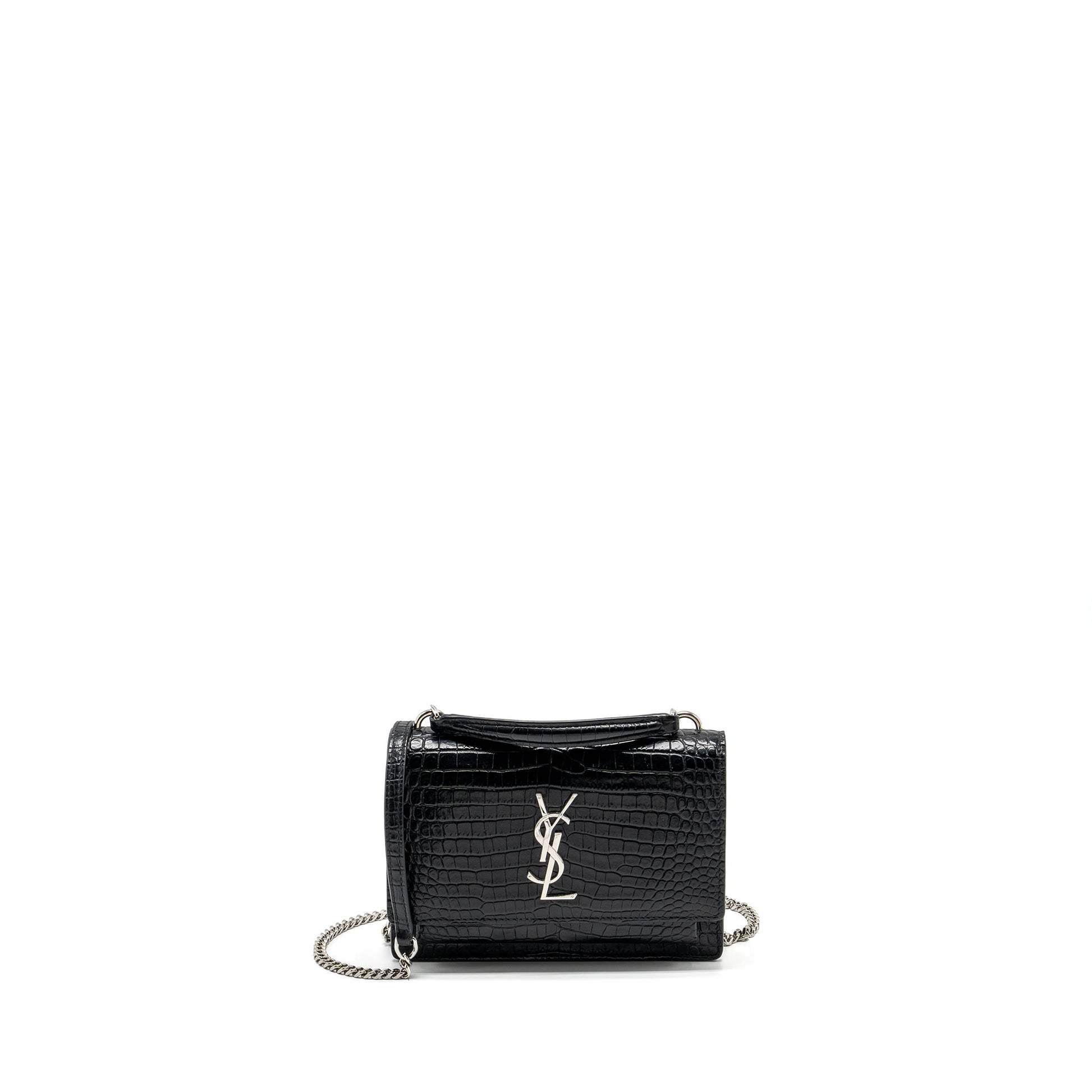 Saint Laurent/YSL Sunset Bag Croc-Embossed Calfskin Black SHW