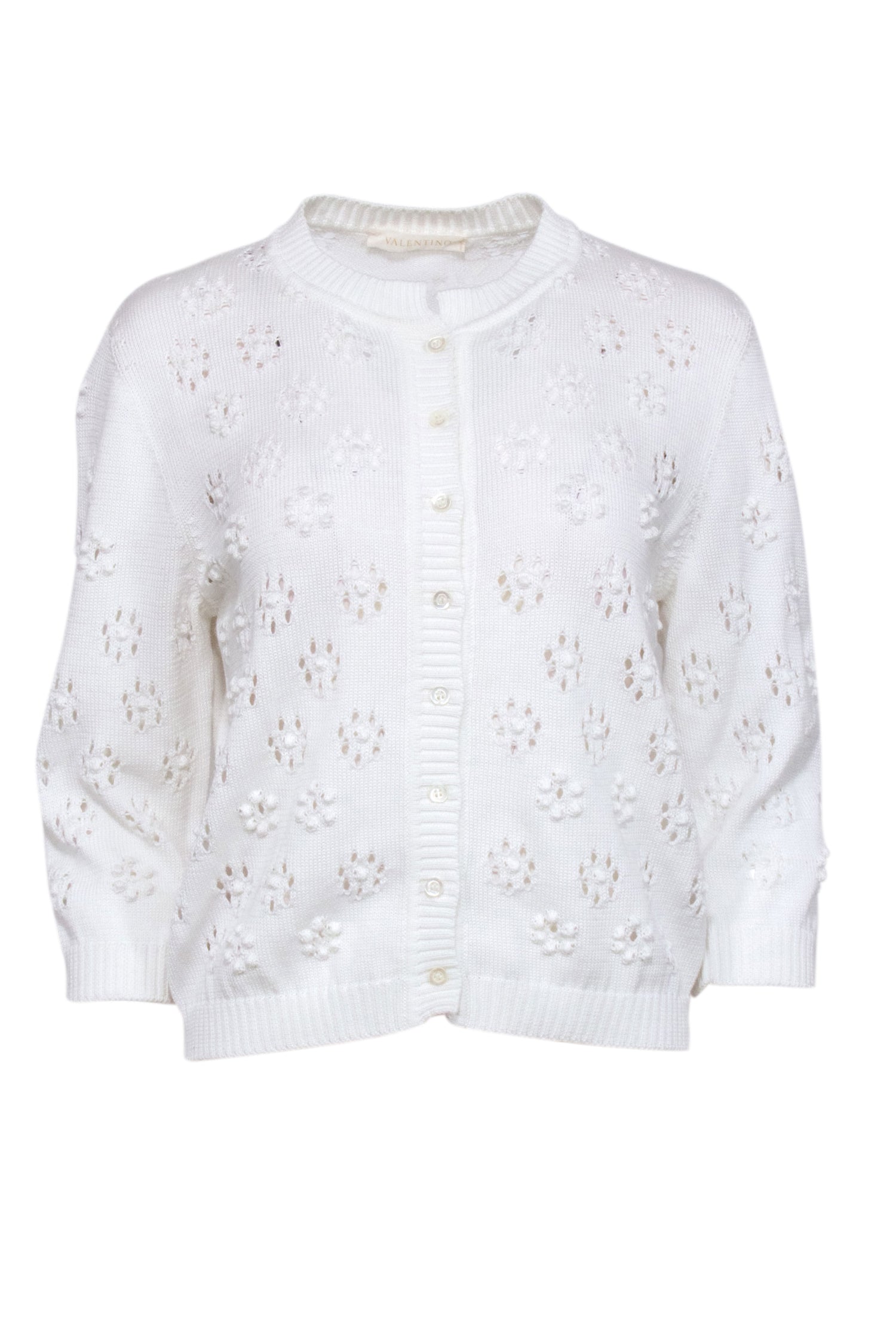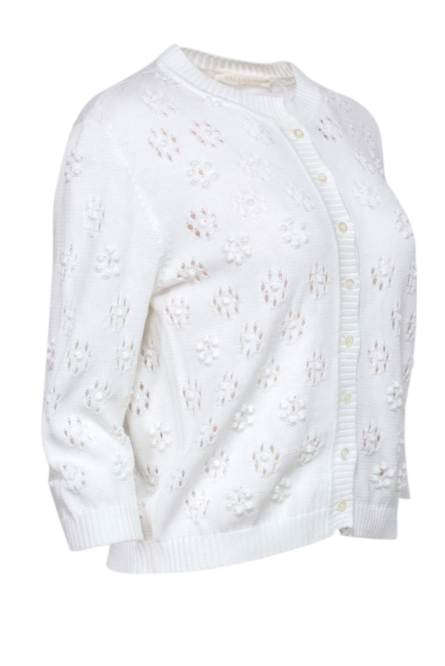Valentino - Ivory Flower Eyelet Cardigan Sz M