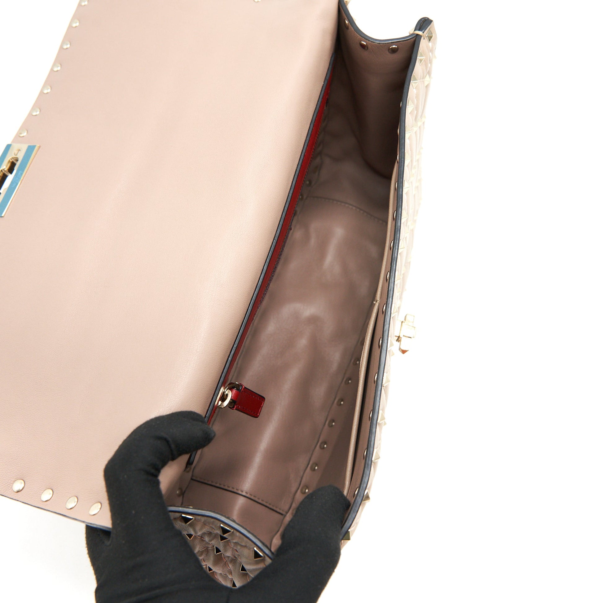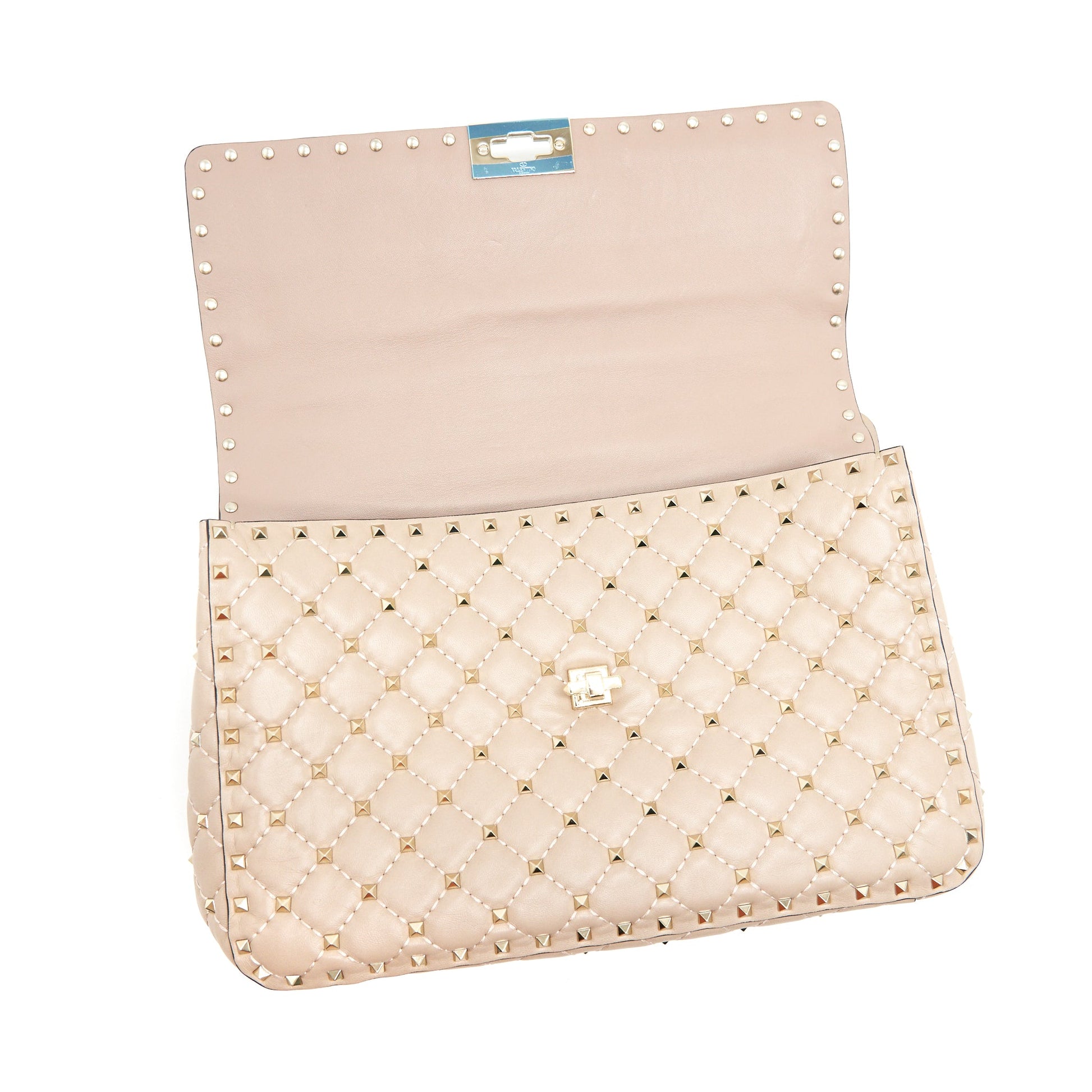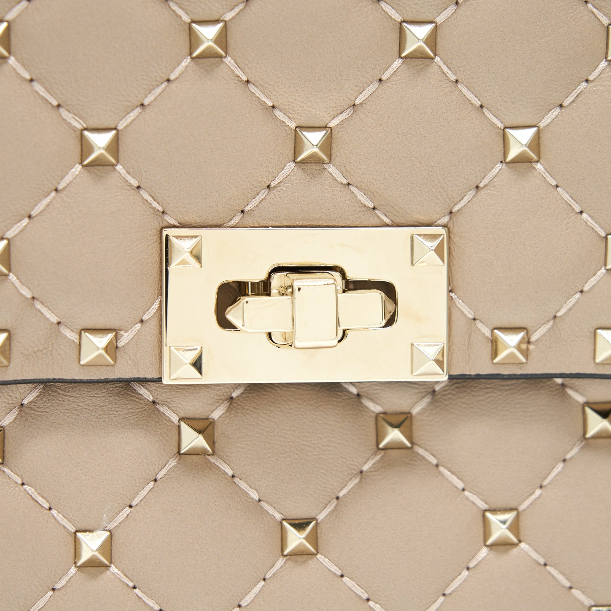 VALENTINO GARAVANI LARGE ROCKSTUD SPIKE SHOULDER BAG BEIGE LGHW