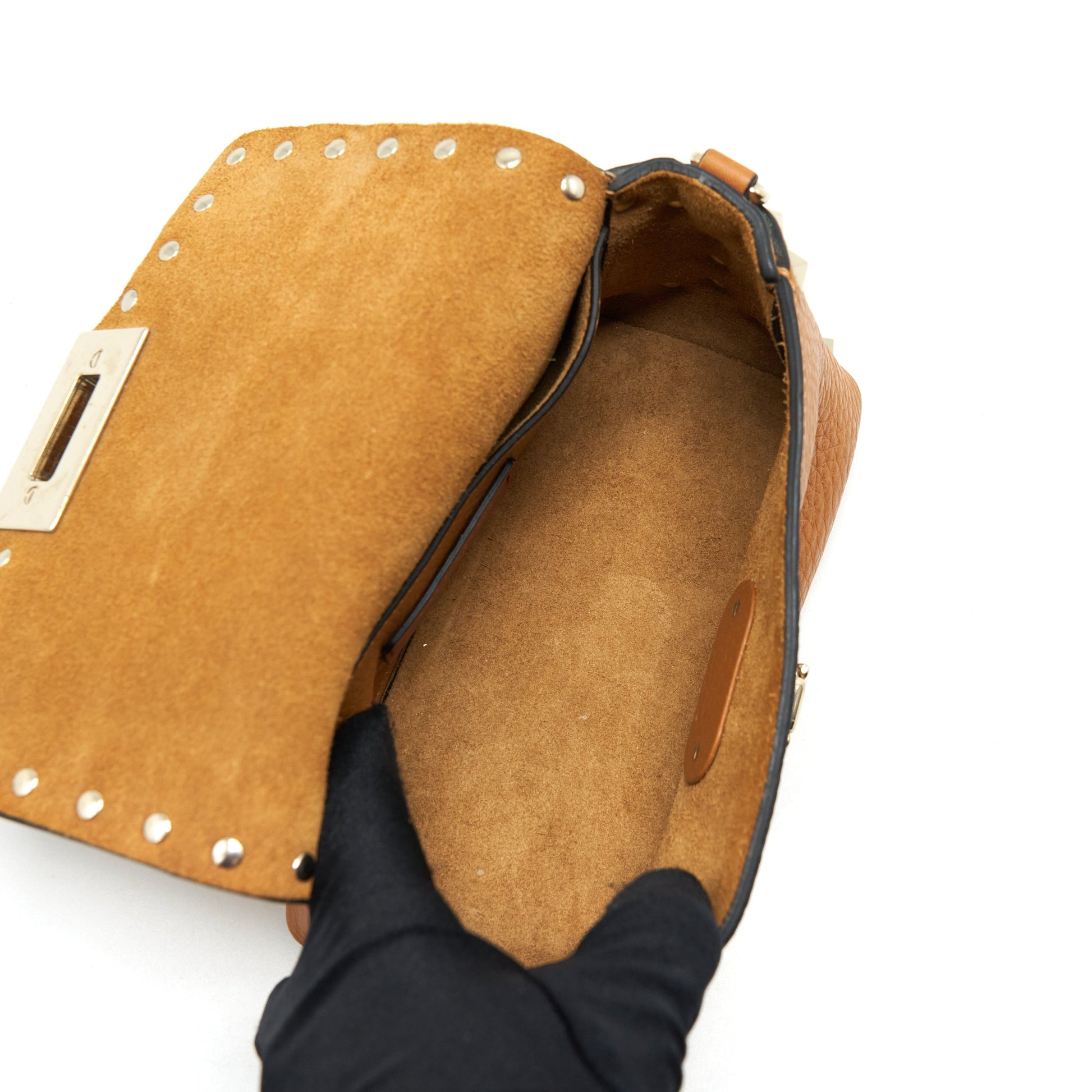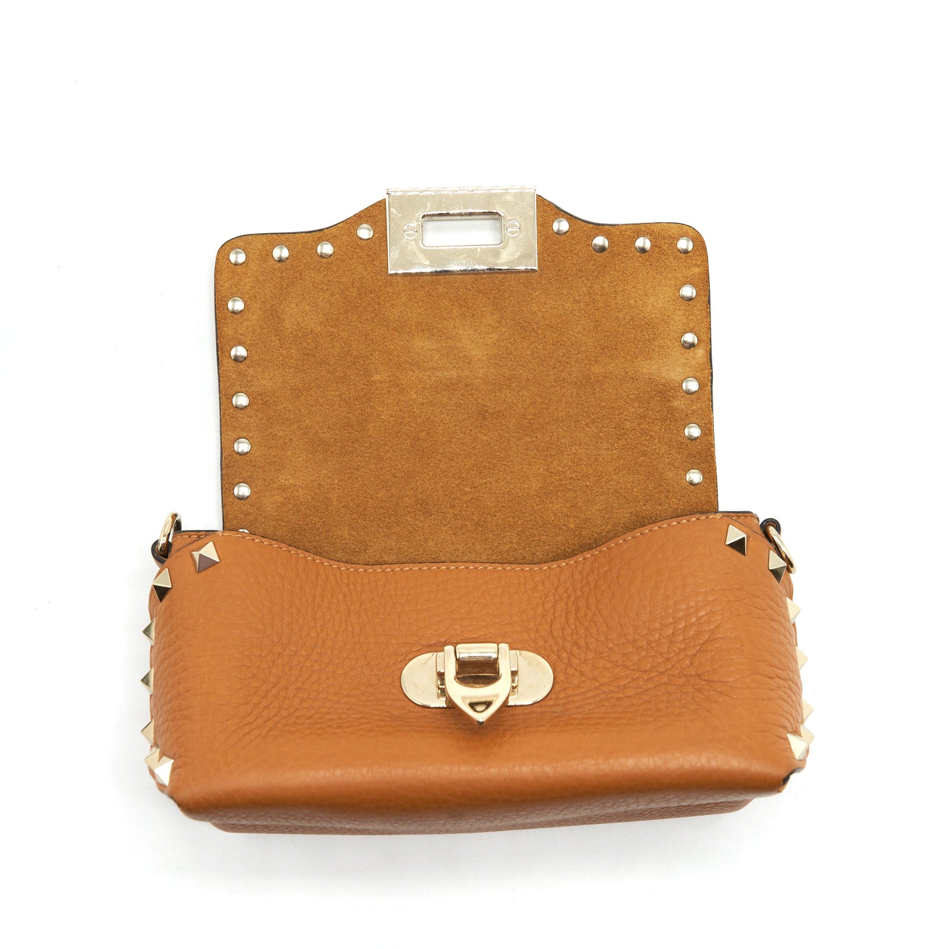 Valentino Garavani Small Rock-Stud Crossbody Bag Grainy Calfskin Mustard