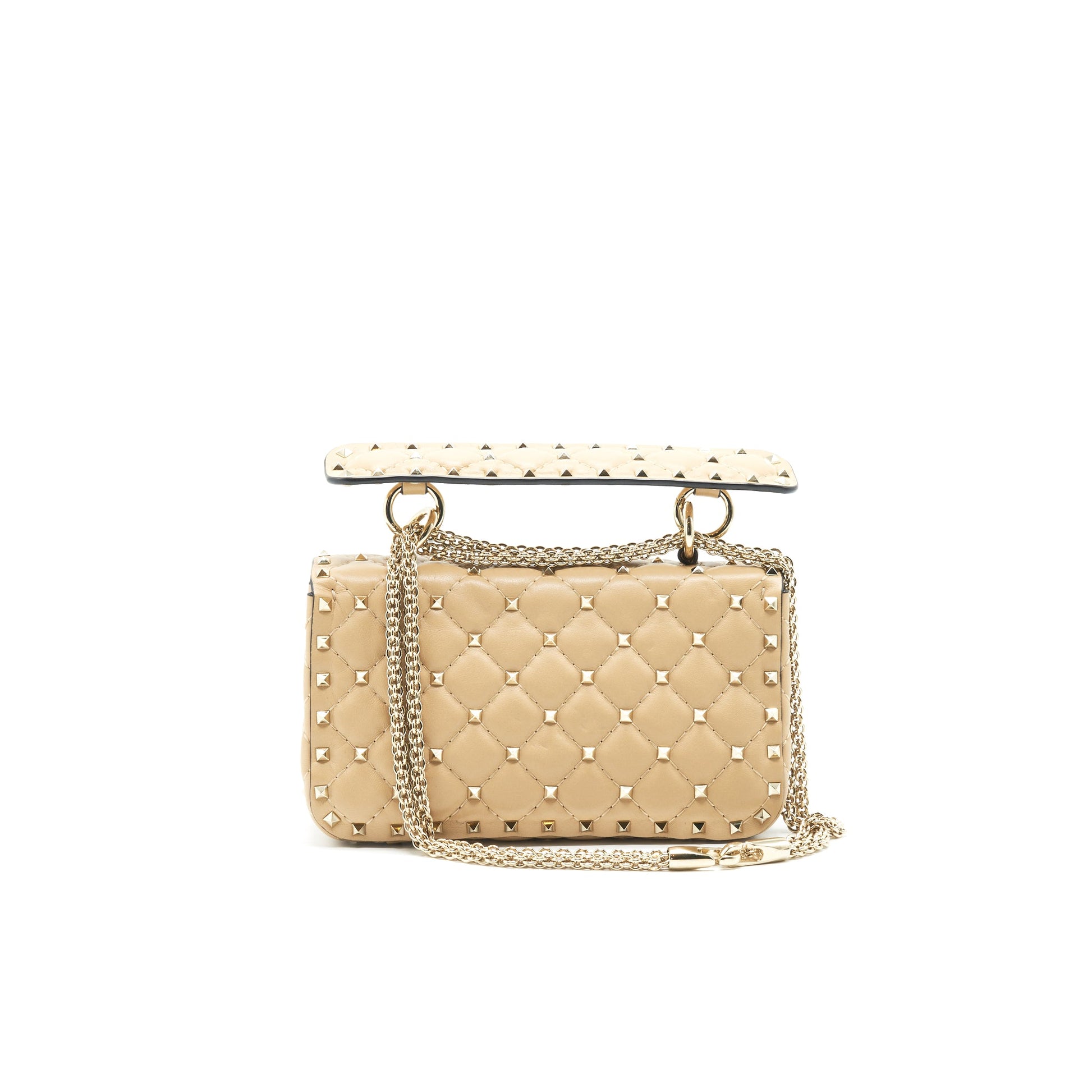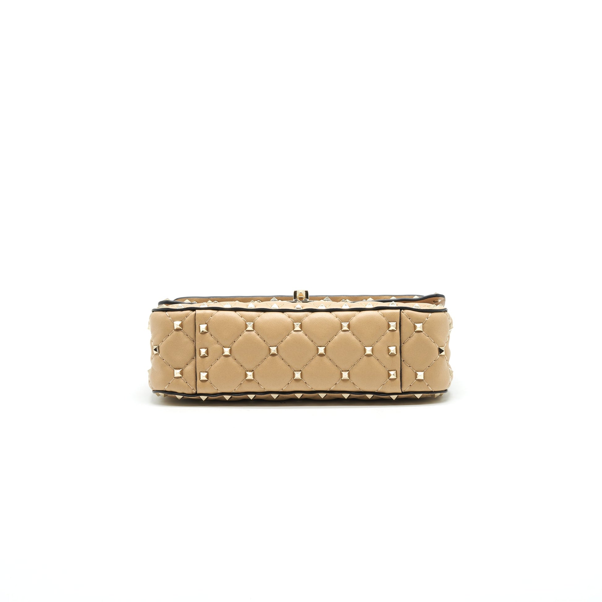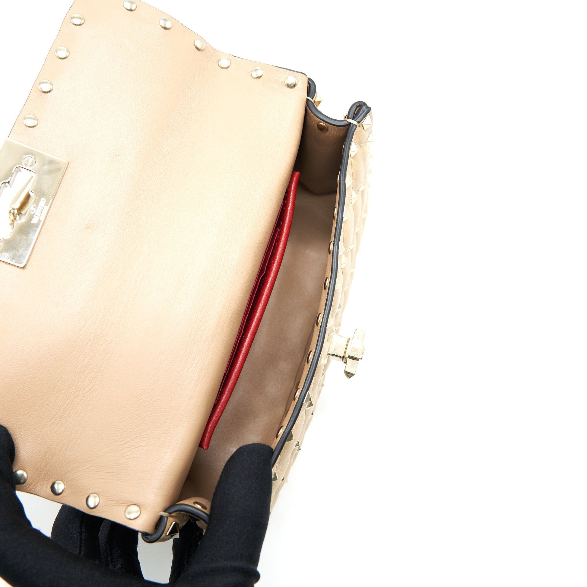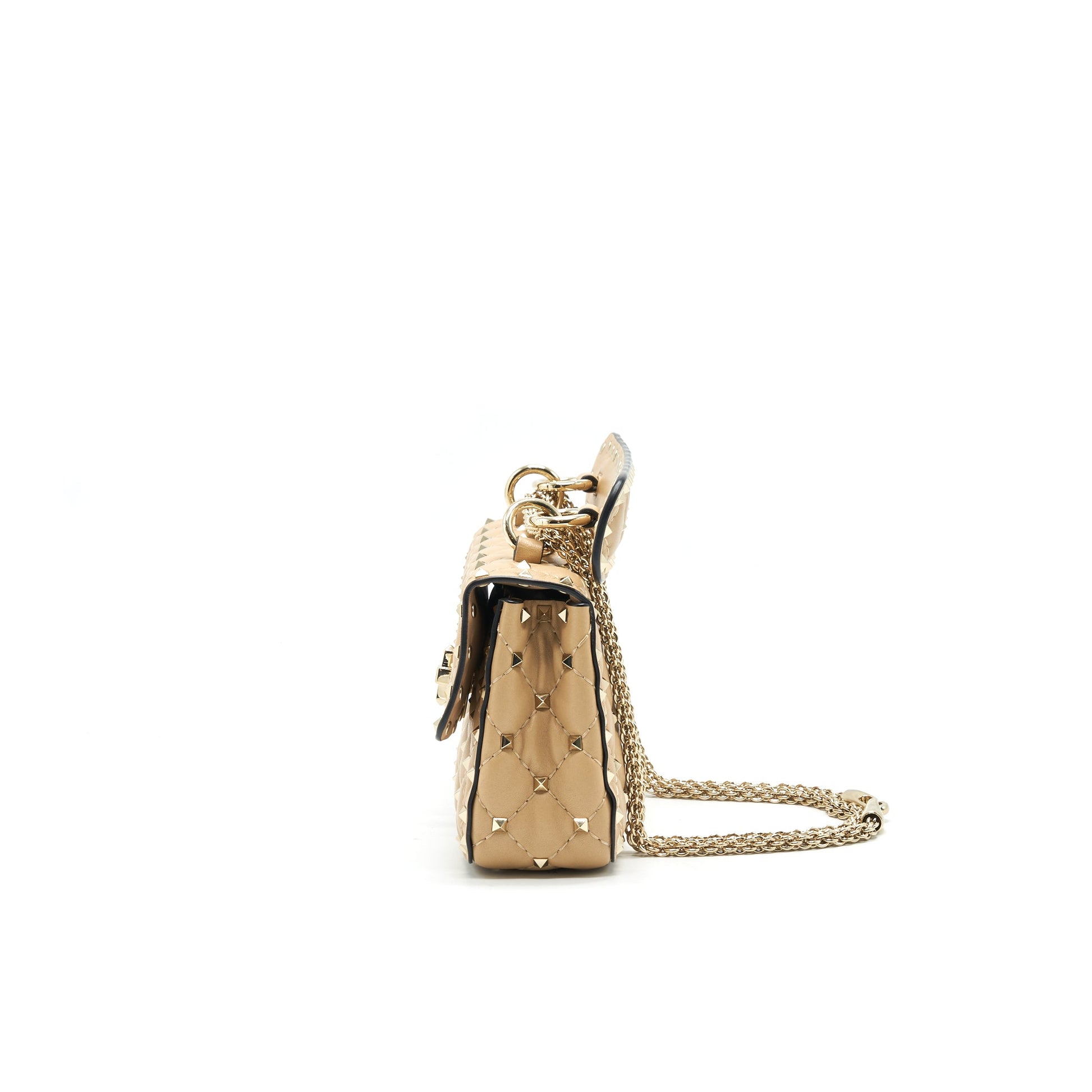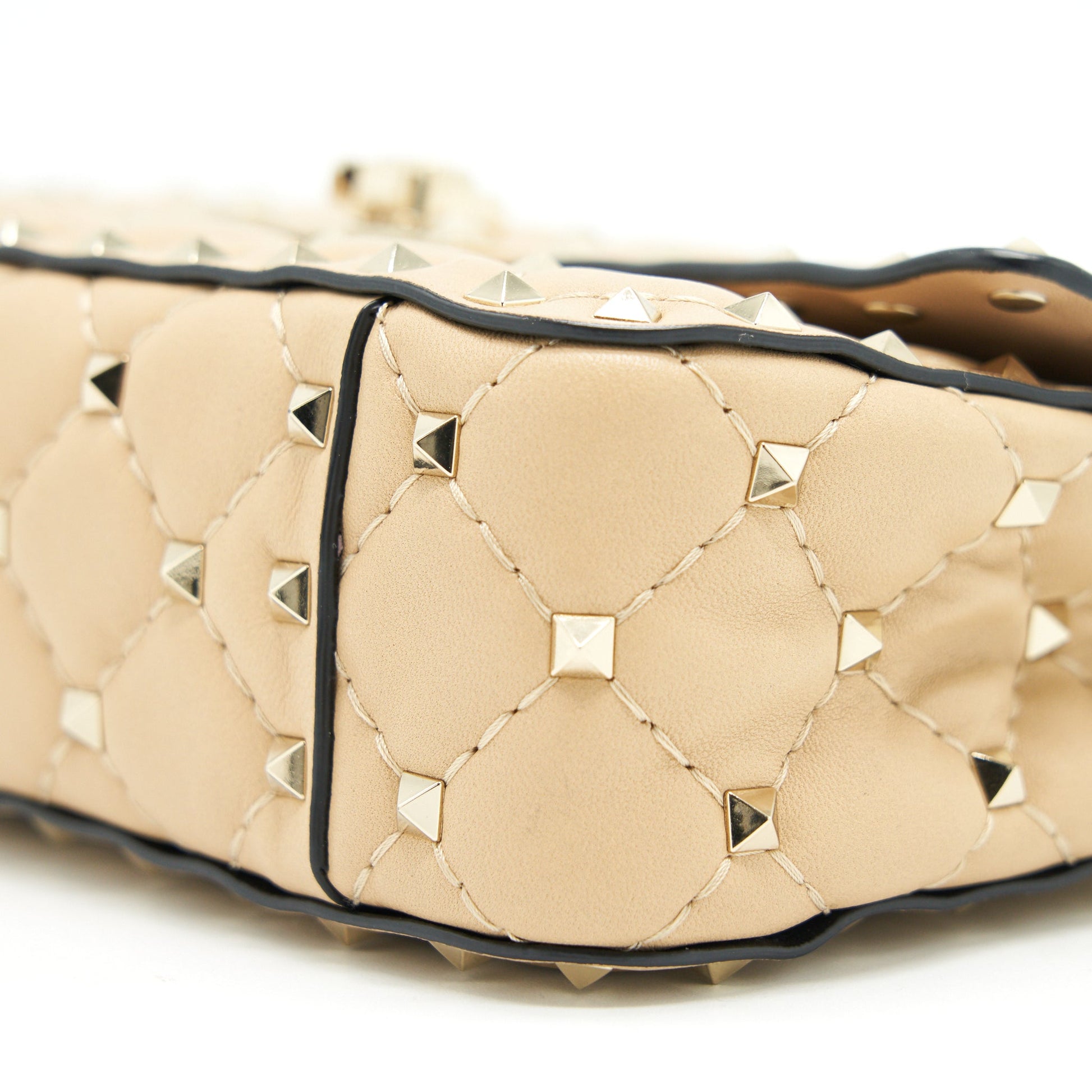 Valentino Garavani Small Rockstud Spike Shoulder Bag Beige LGHW