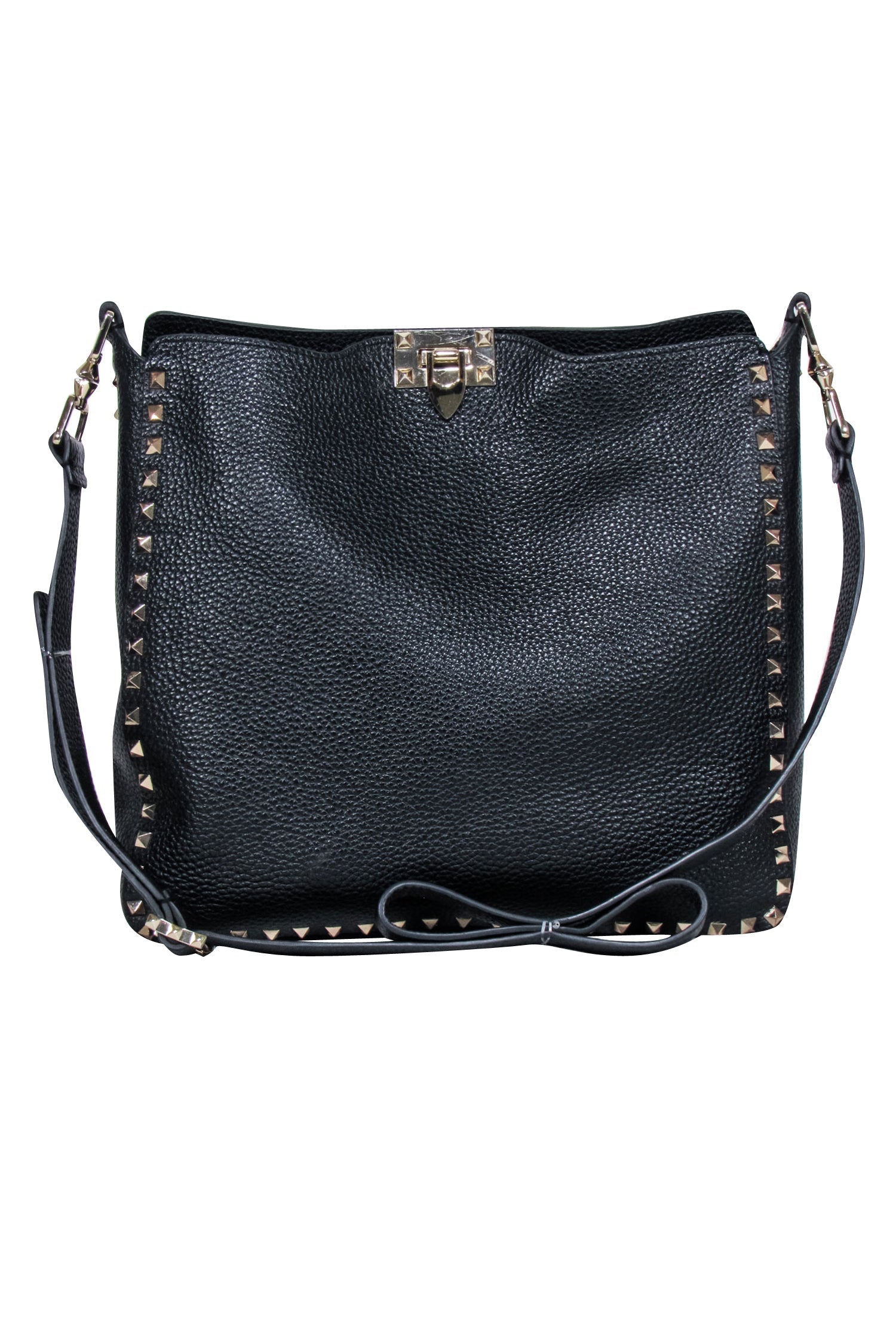 Valentino - Black Pebbled Leather "Rockstud" Crossbody Bag