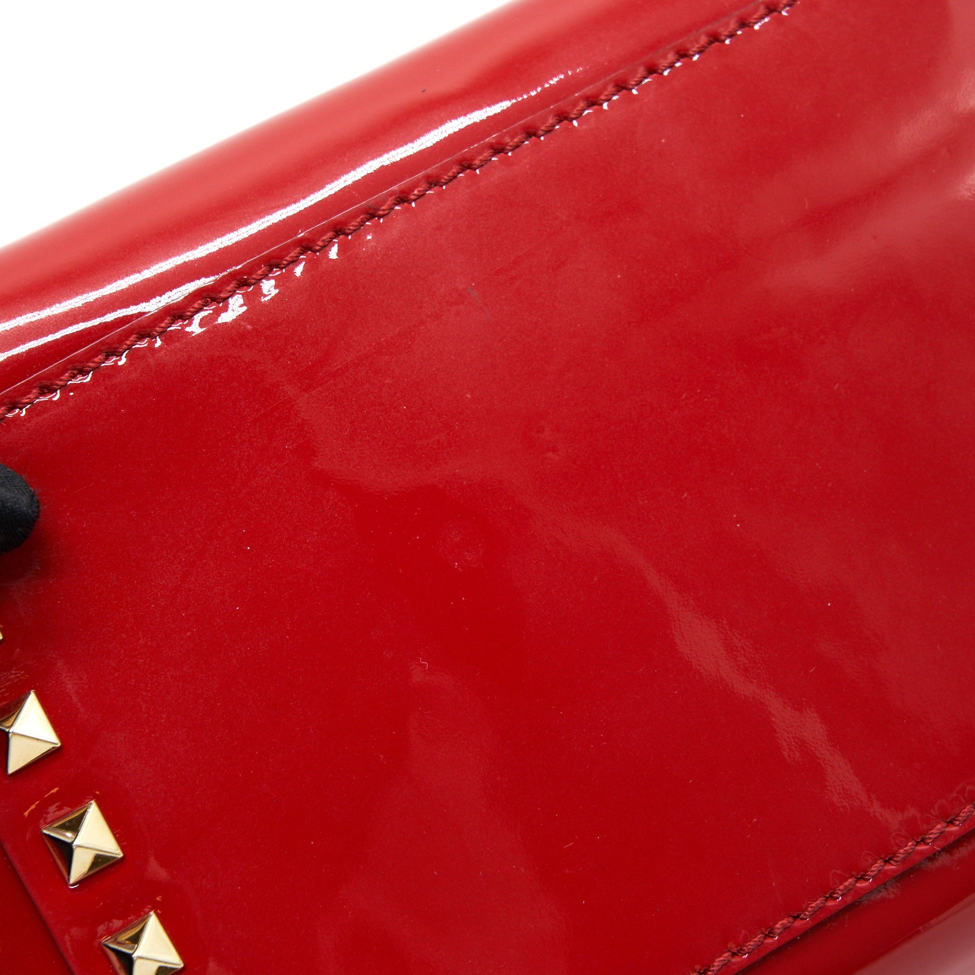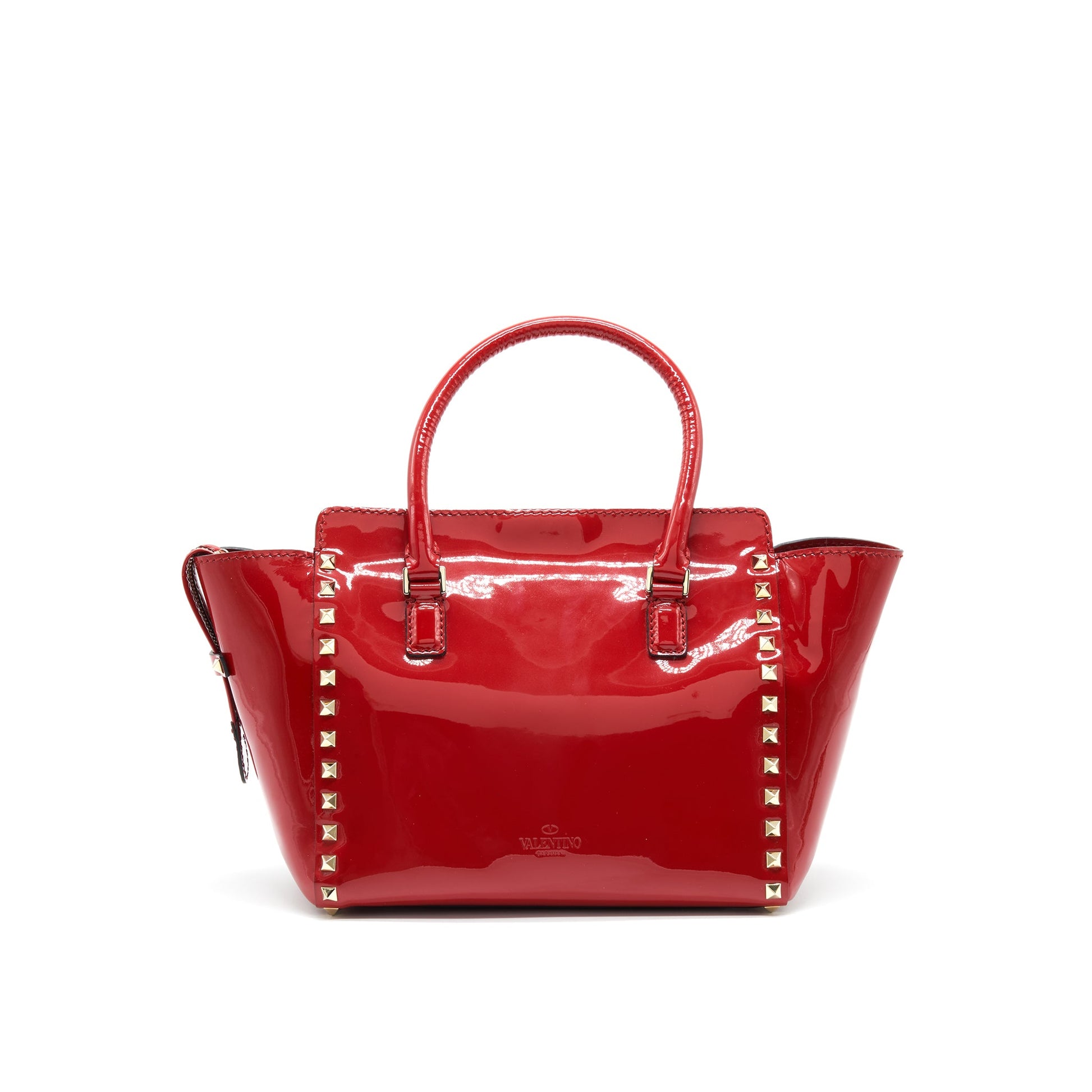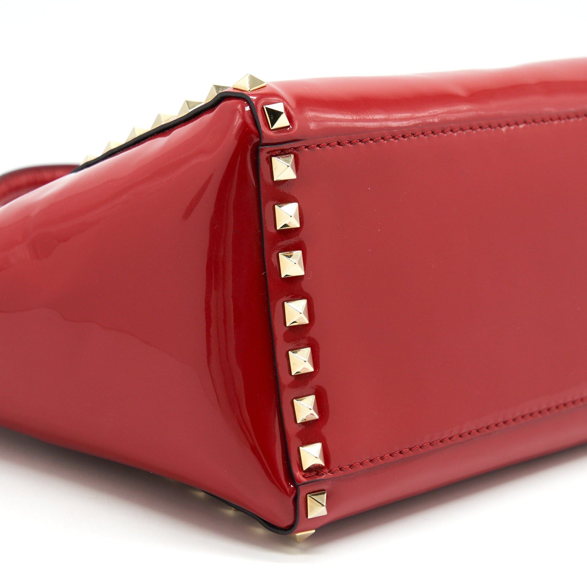 VALENTINO ROCKSTUD SMALL PAGOTA TOTE in patent Red