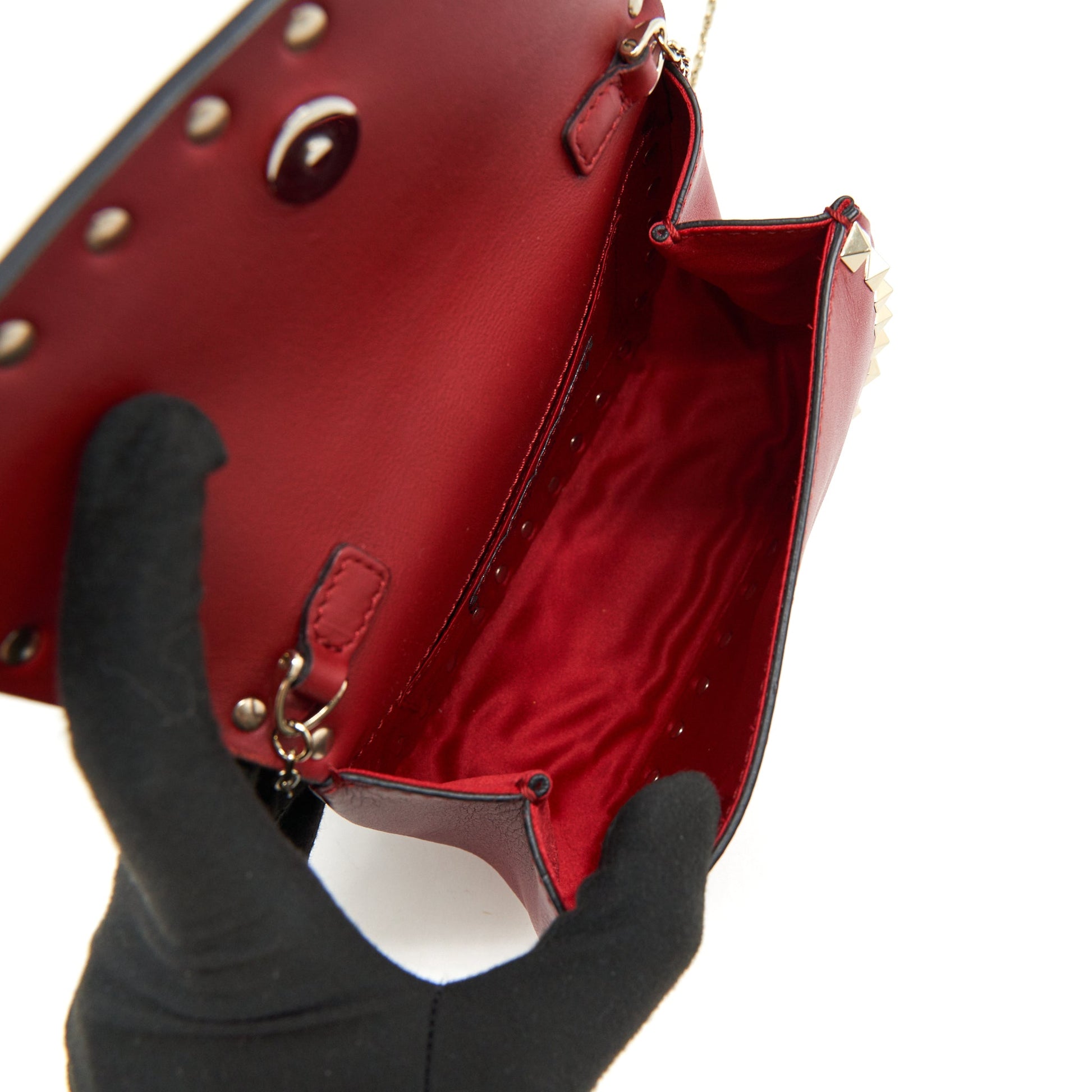 Valentino Rockstud Small Saddle Bag In RED