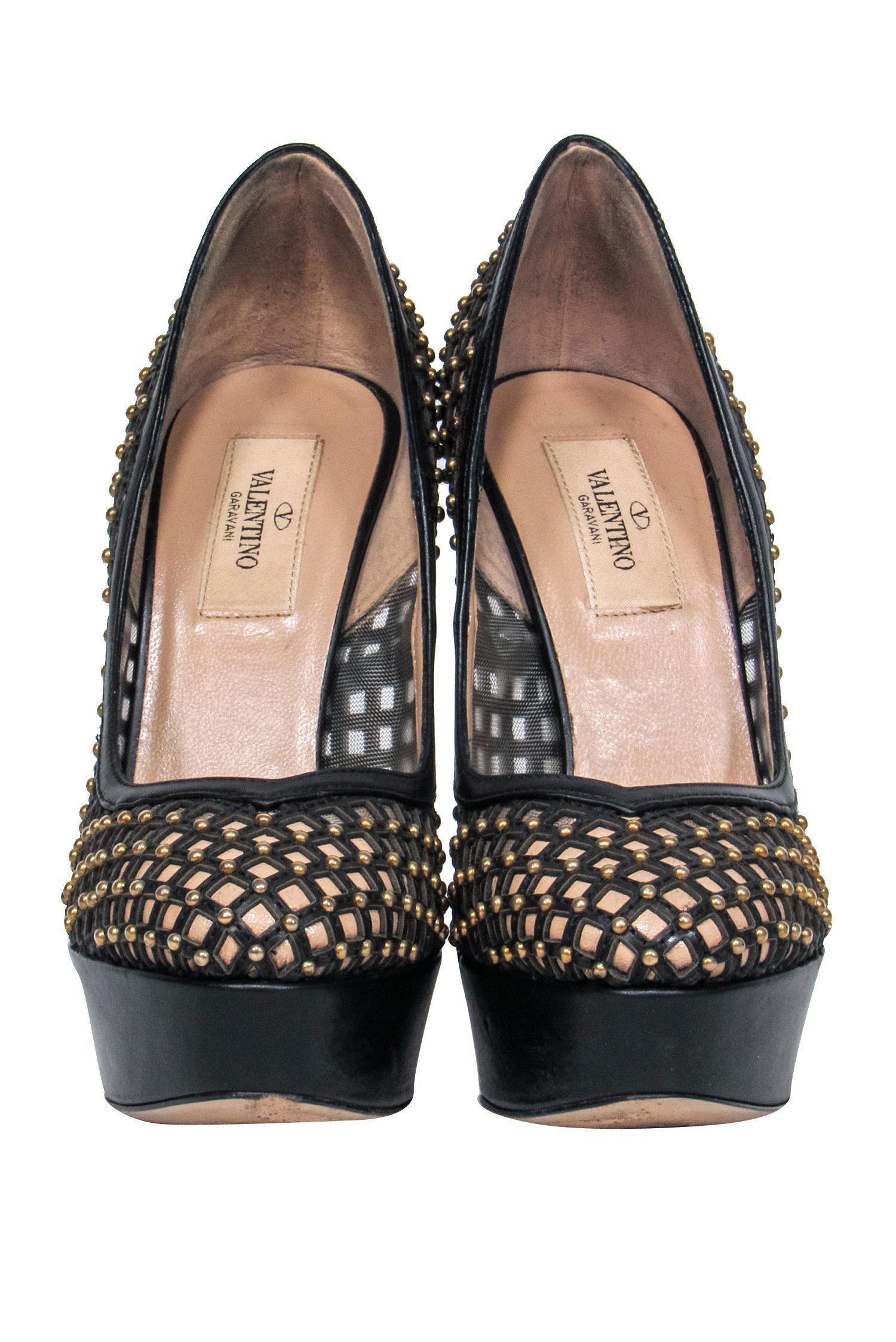 Valentino - Black & Beige Mesh Gold Studded Platform Pumps Sz 7