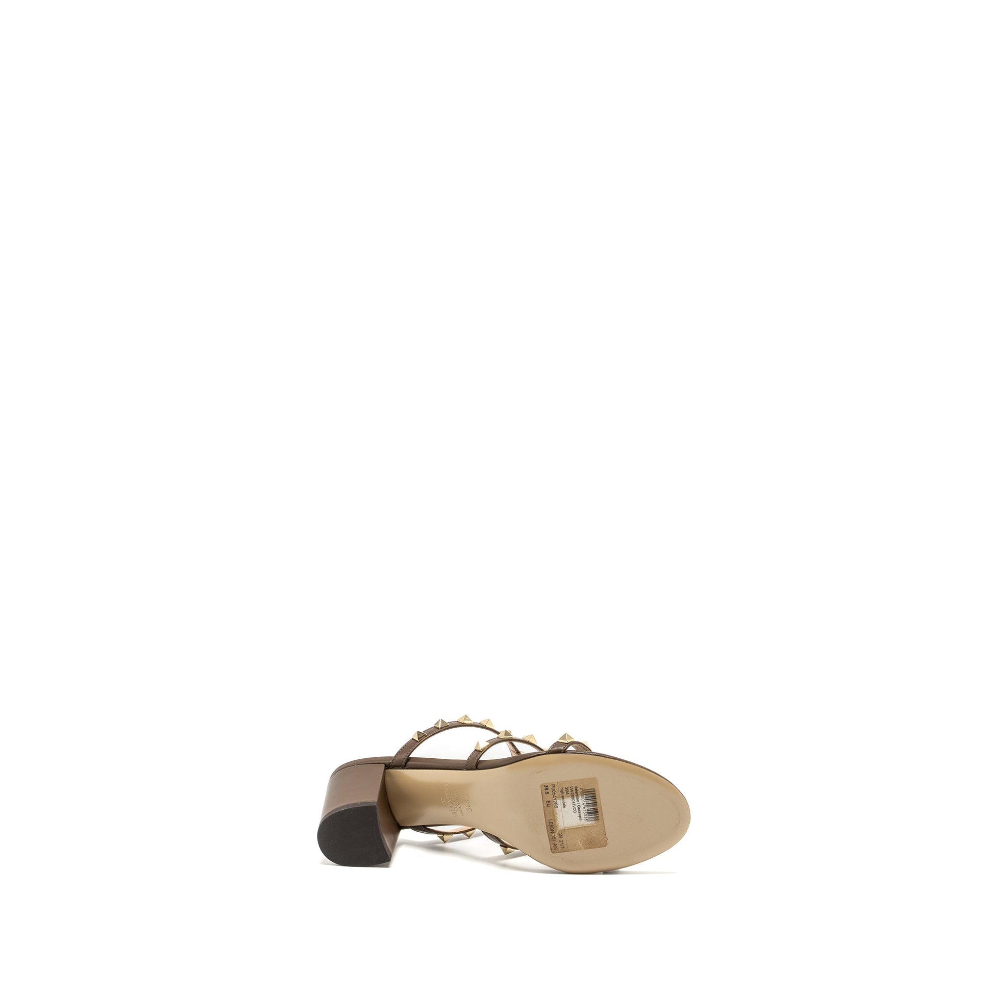 Valentino Size 38.5 Garavani Rockstud Slide Sandals Calfskin Brown