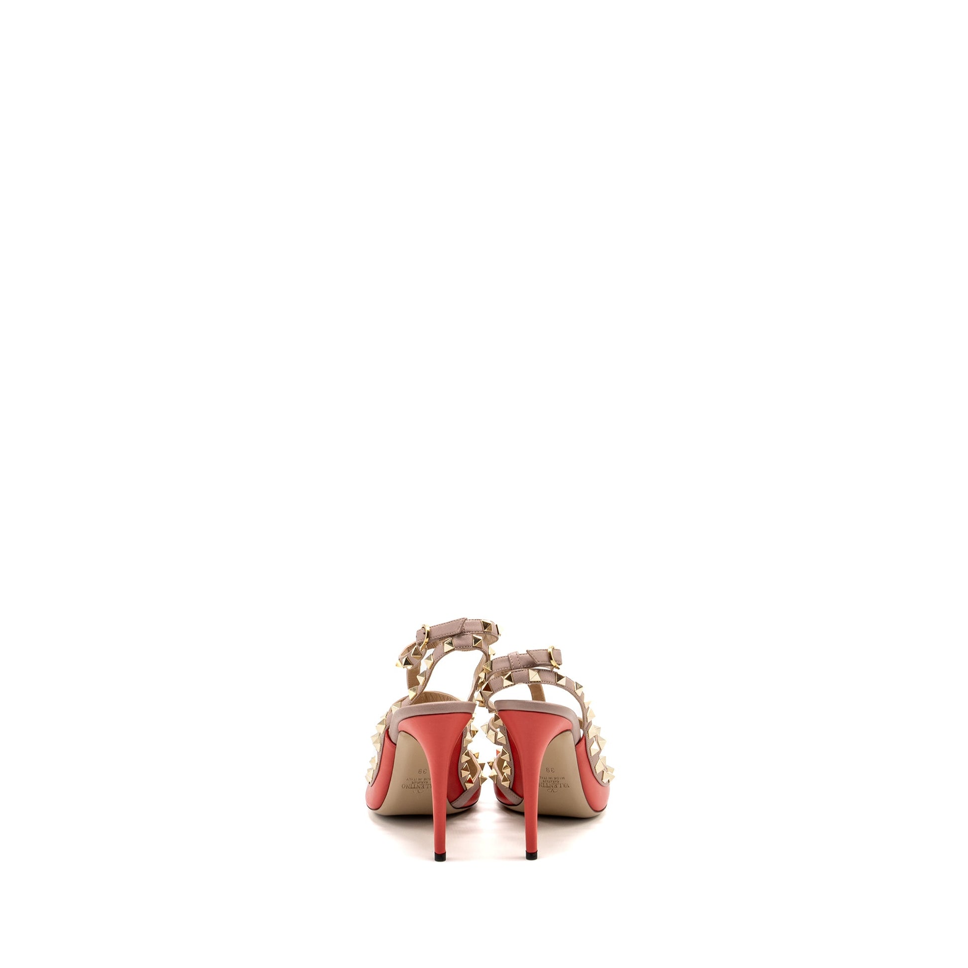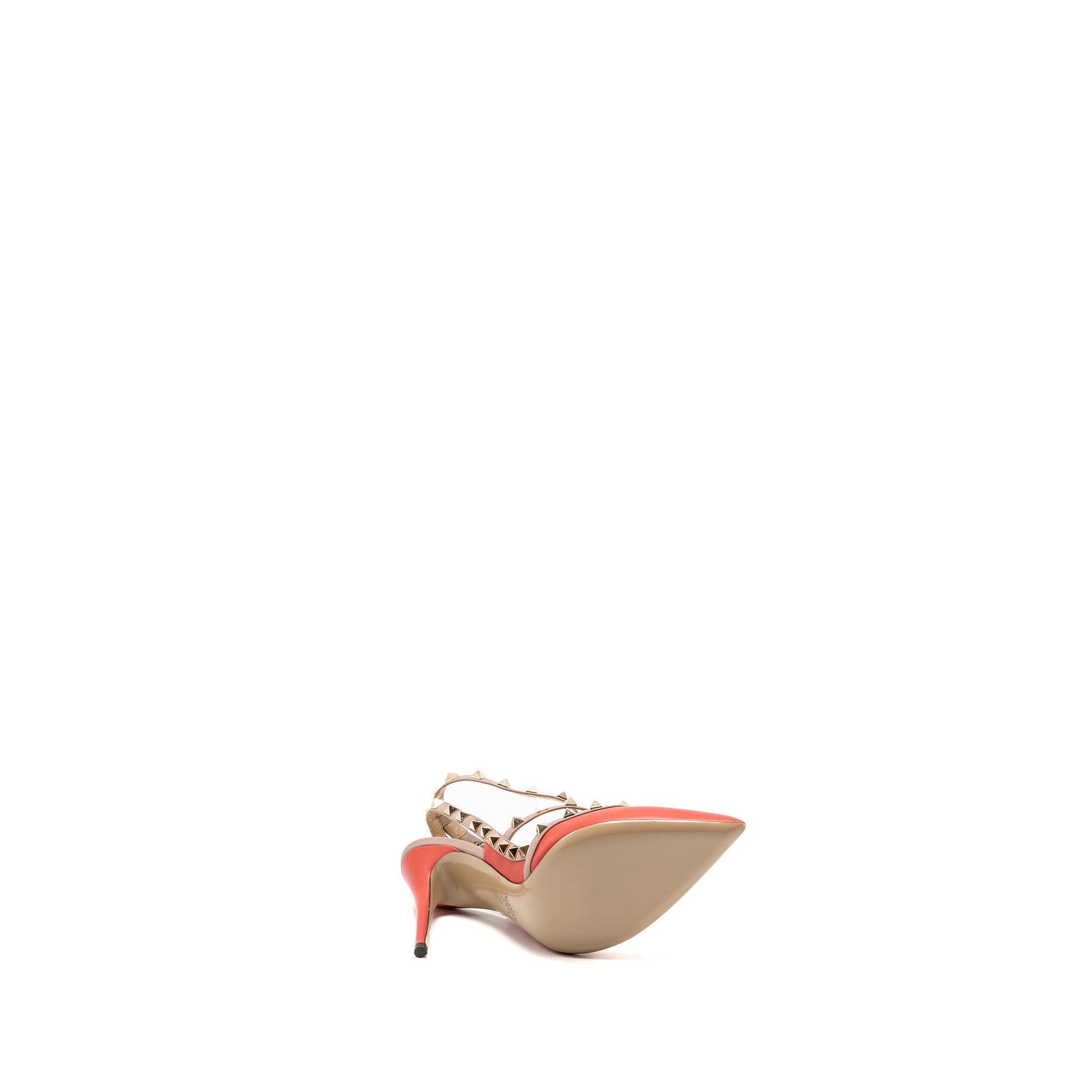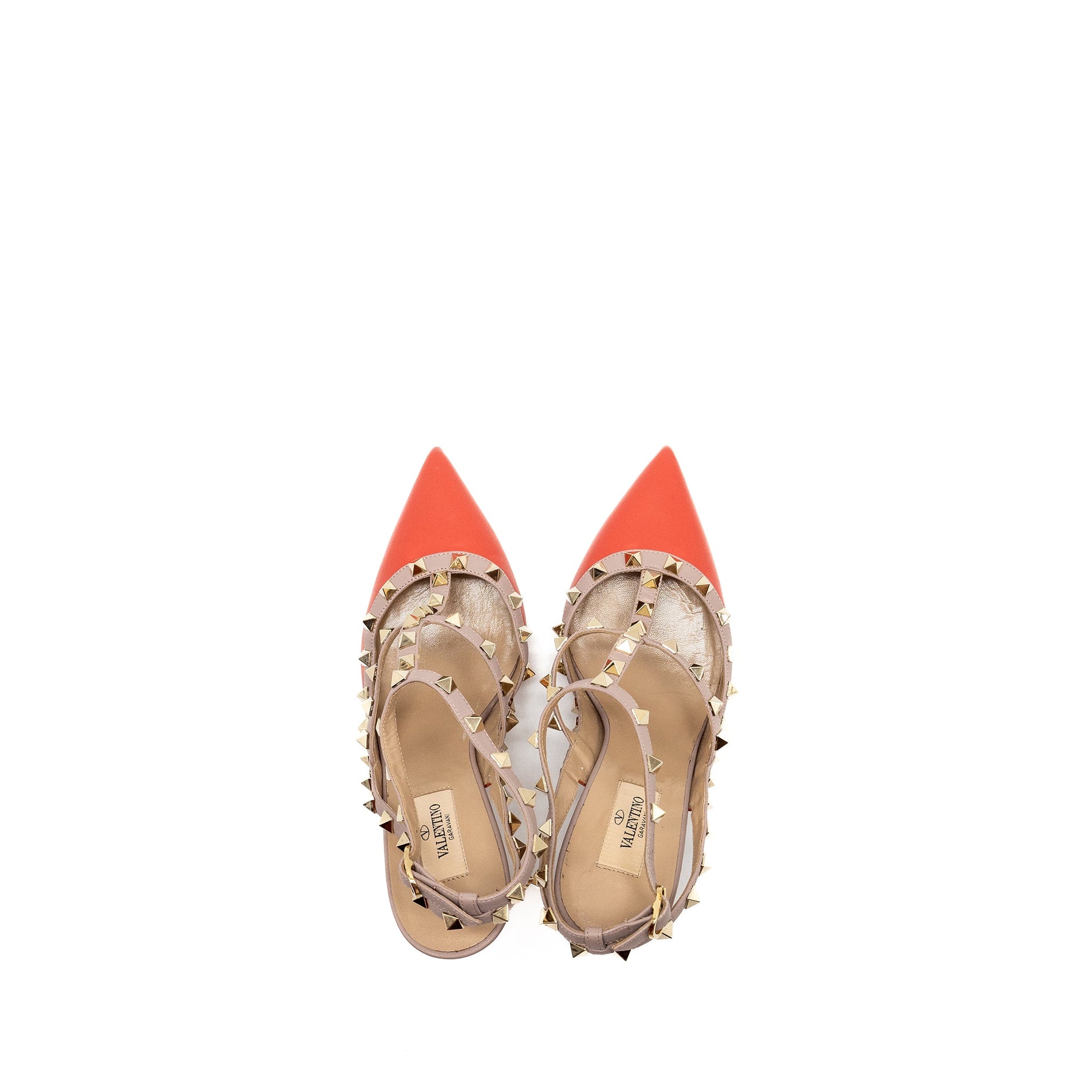 Valentino Size 39 Garavani Rockstud Slingback Heels Leather Orange Red