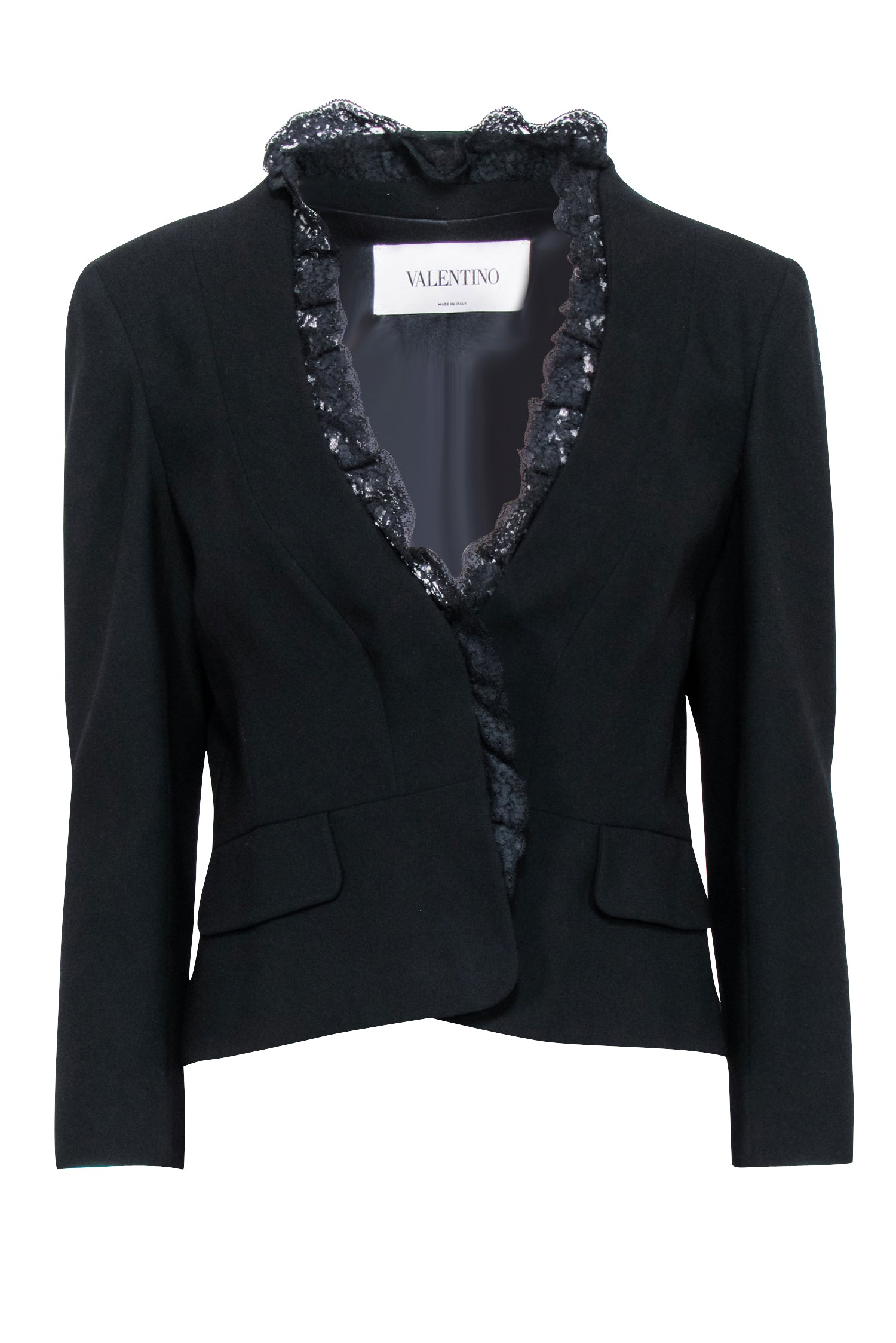 Valentino - Black Open-Front Blazer w/ Lace Trim Sz 8