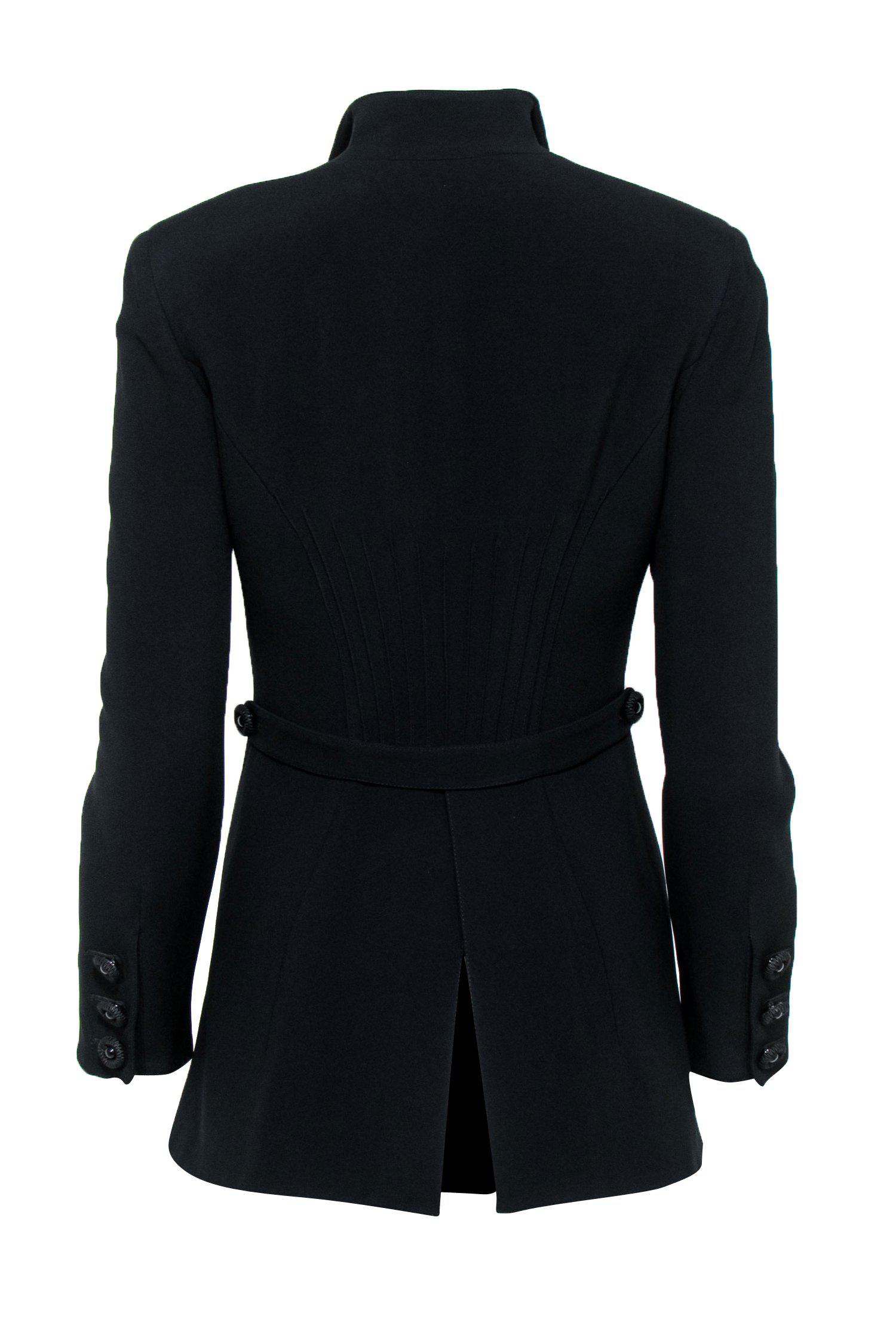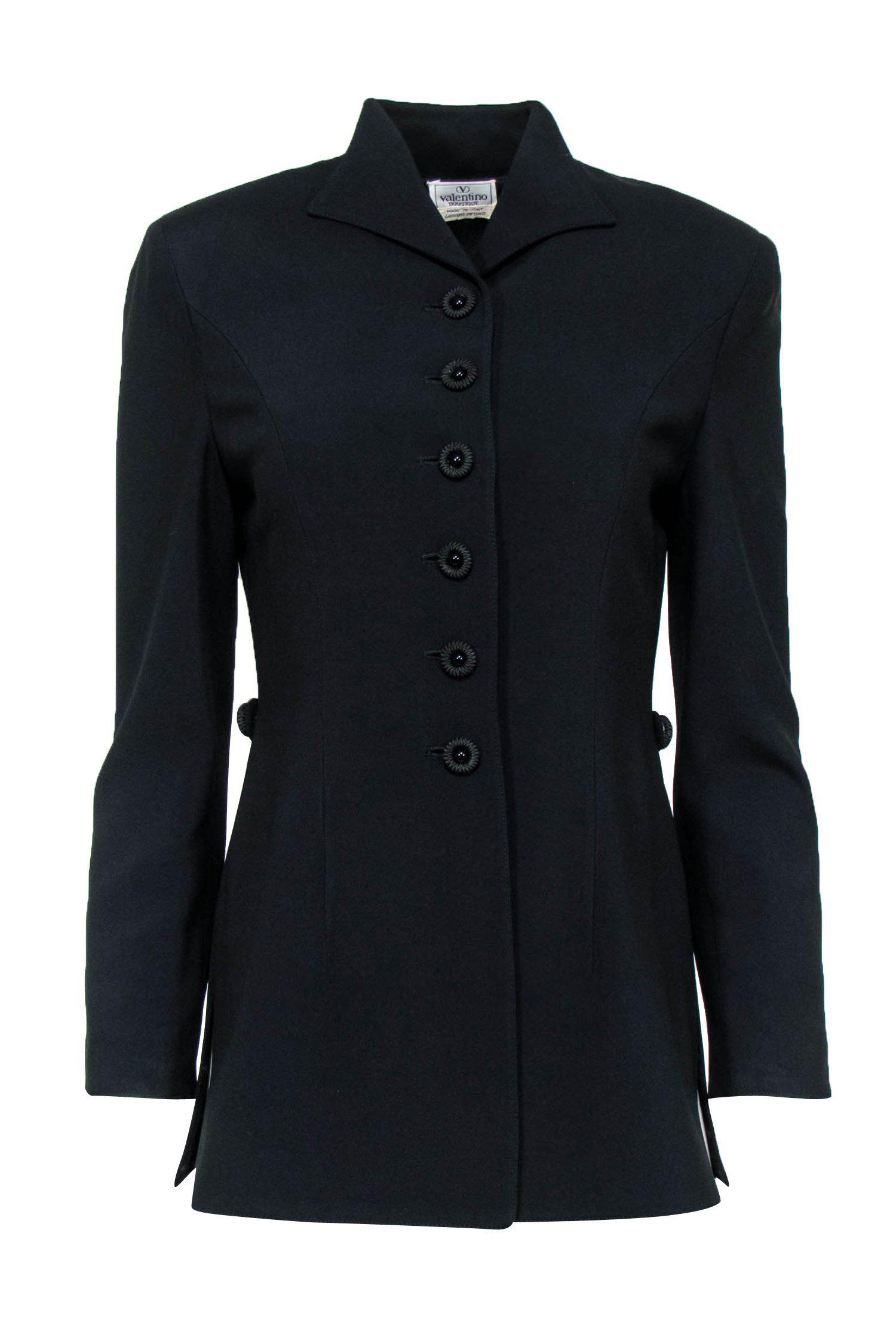 Valentino - Black Fitted Longline Coat w/ Embroidered Buttons Sz M