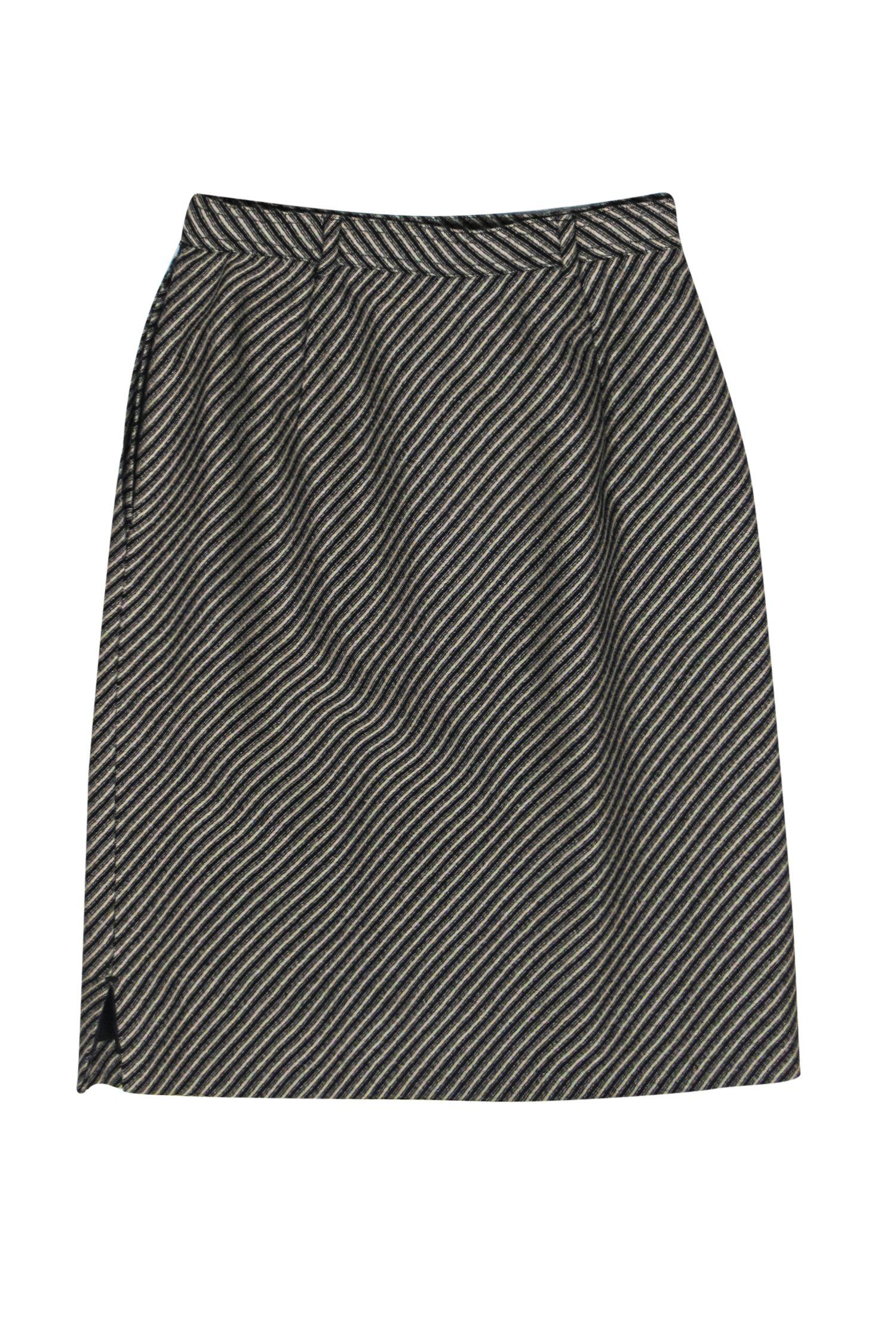 Valentino - Black & White Striped Wool Skirt Sz 2