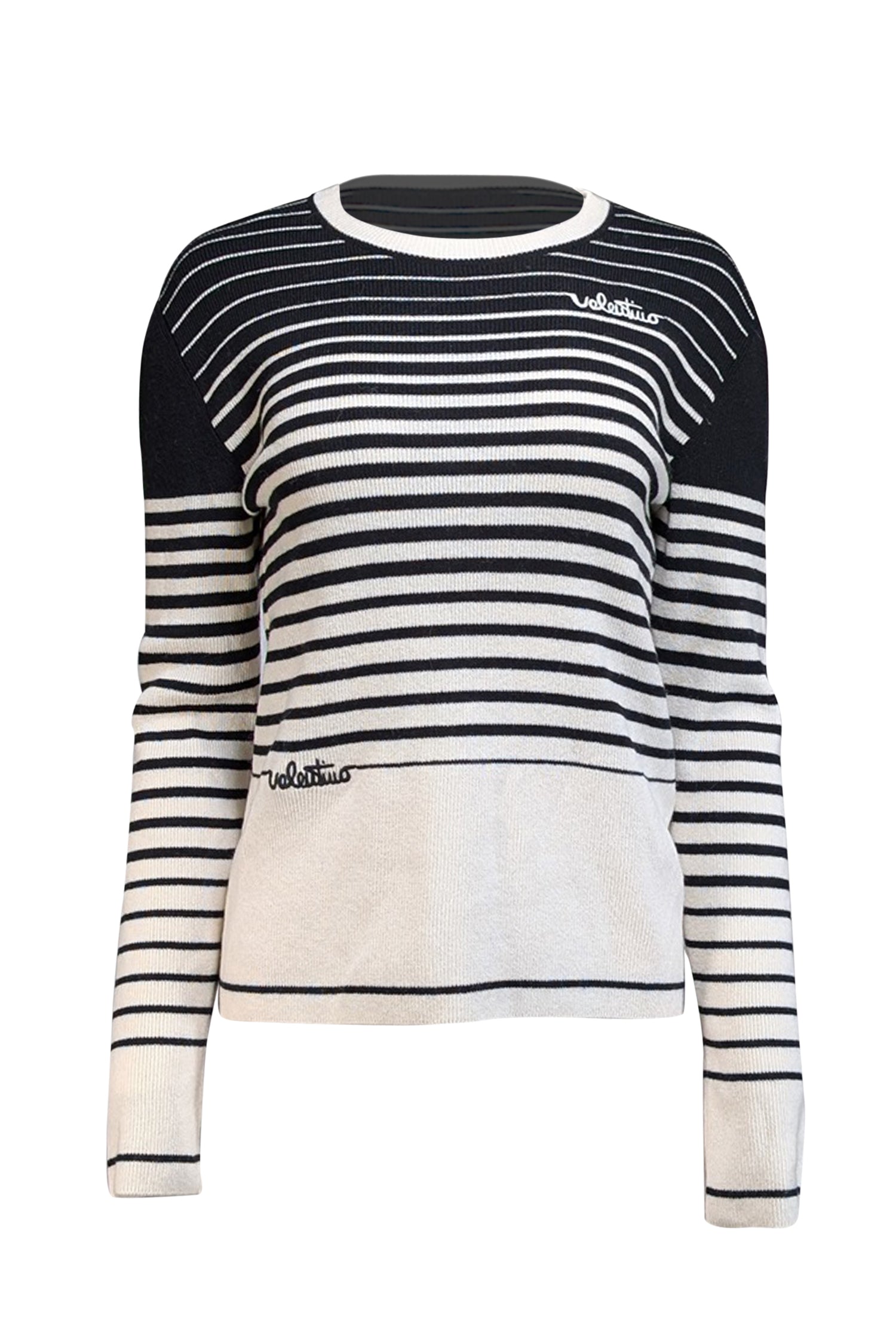 Valentino - Black & Cream Striped Wool & Cashmere Blend Sweater Sz XL