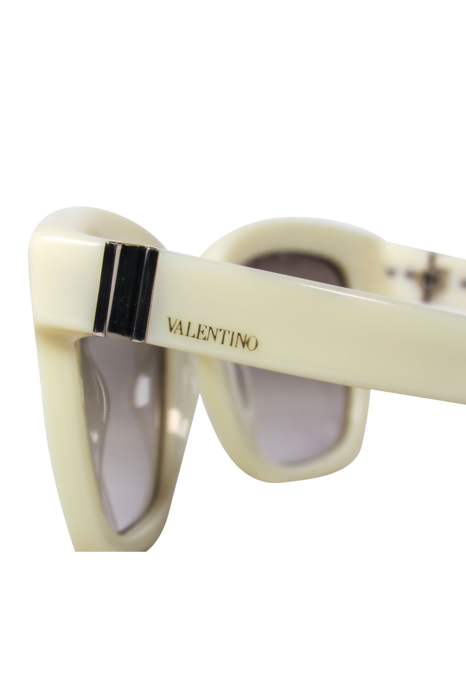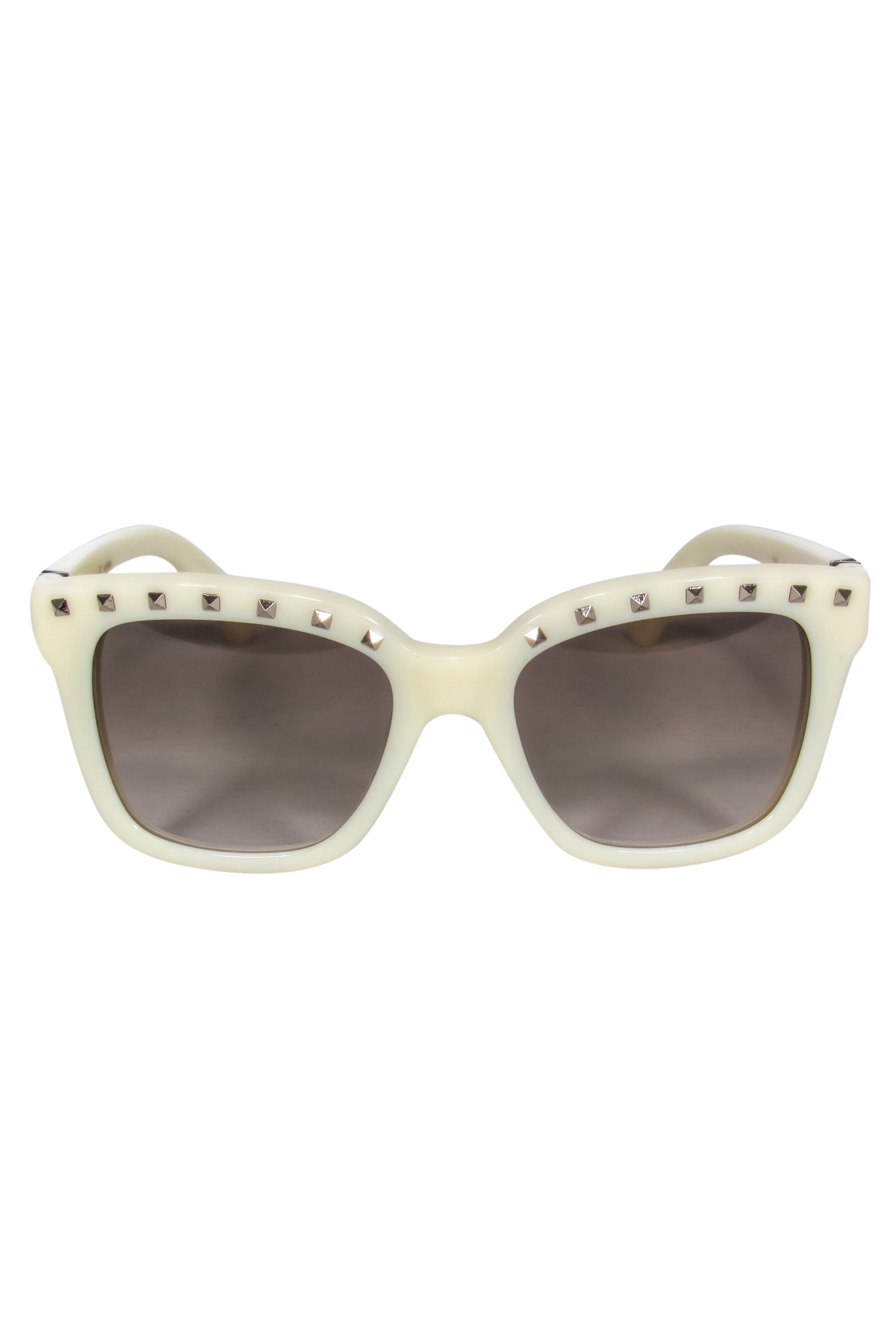 Valentino - Cream Square Frame Sunglasses w/ Studs