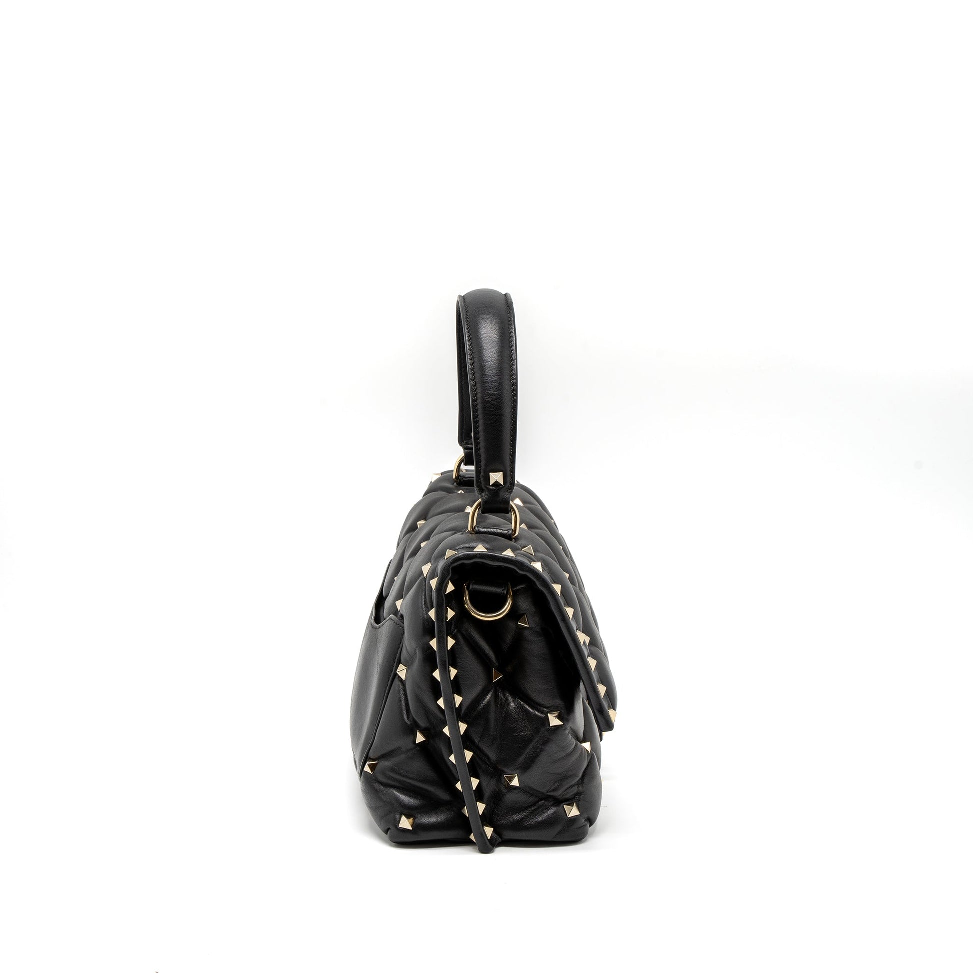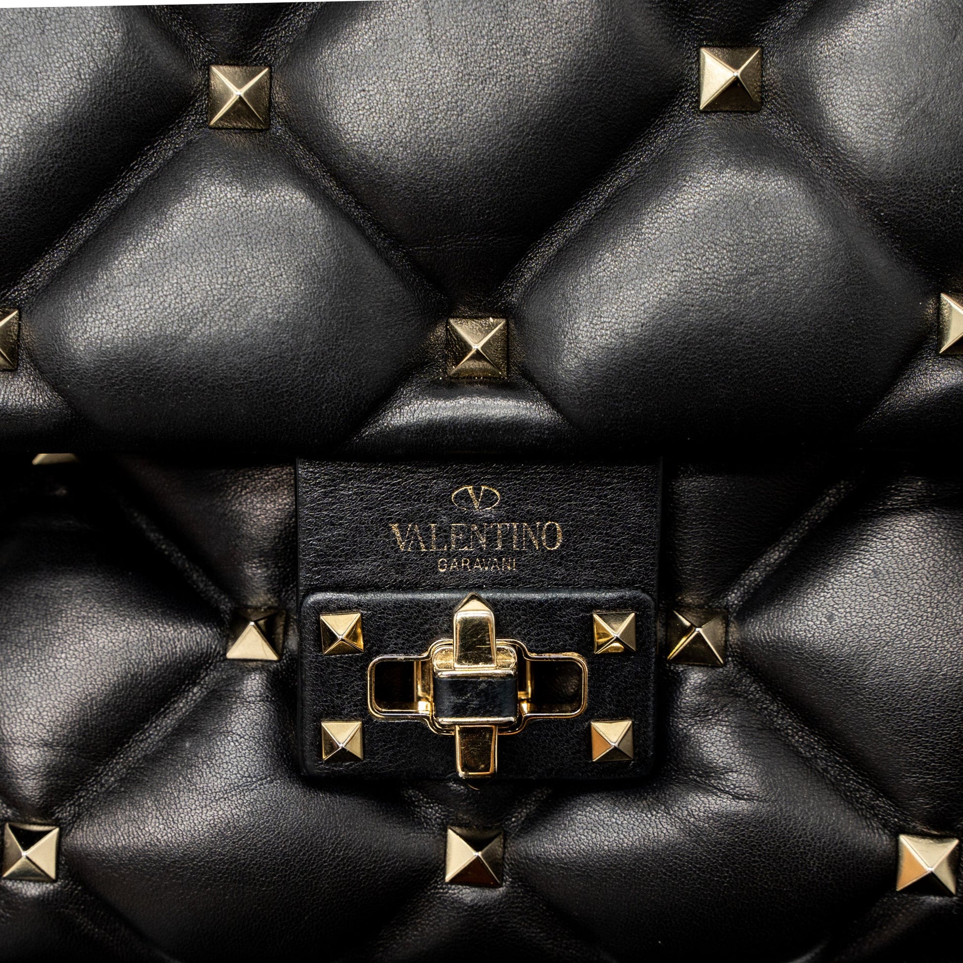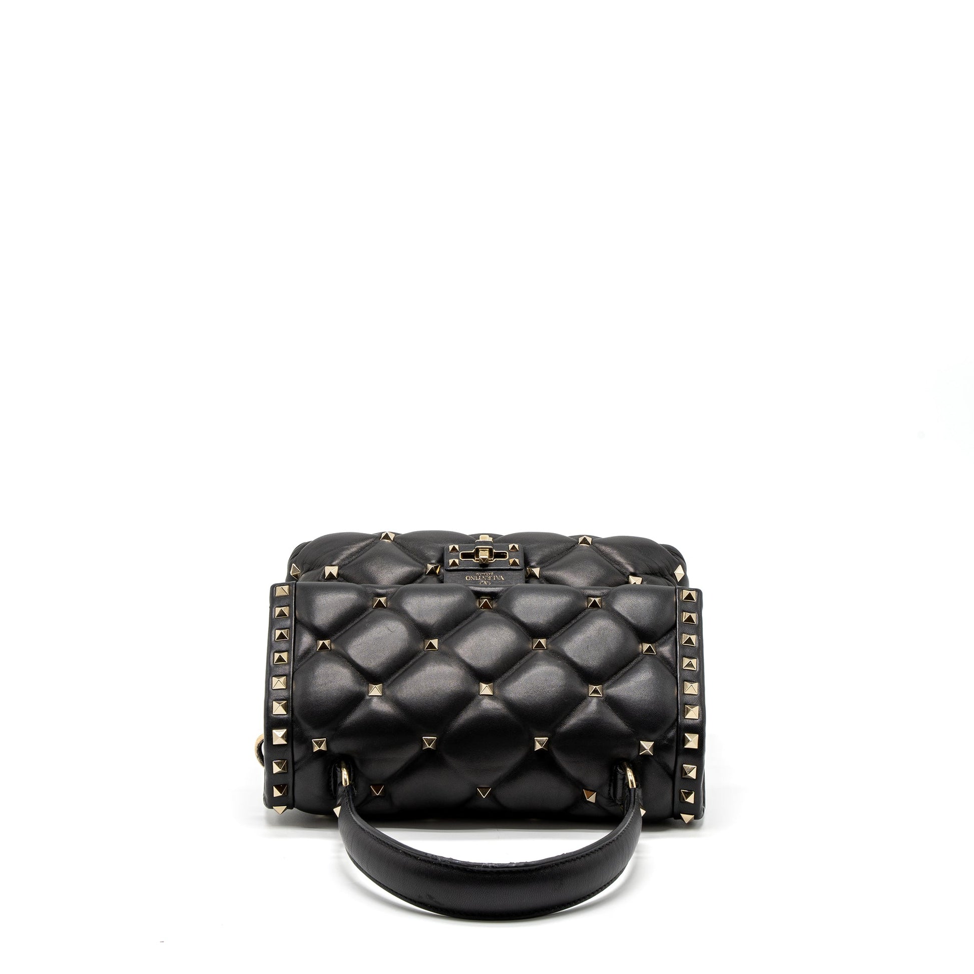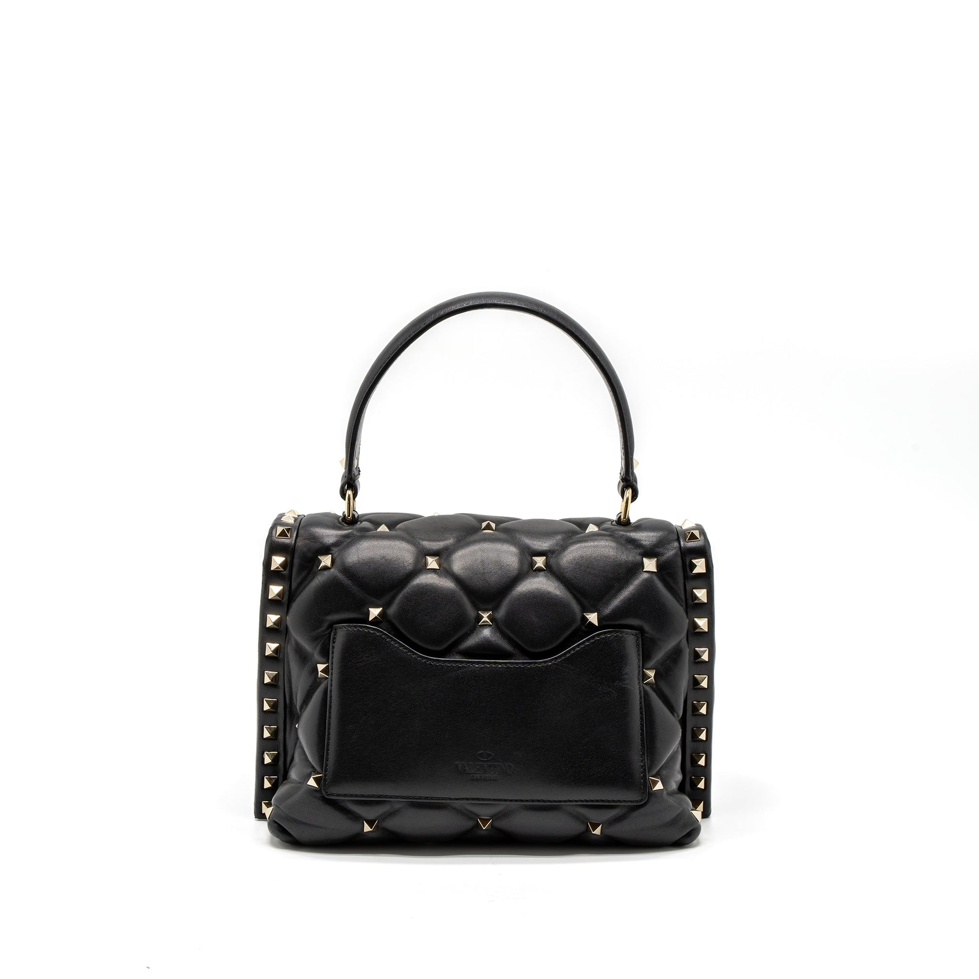 Valentino Top Handle Quilted Candystud Flap Bag Lambskin Black LGHW