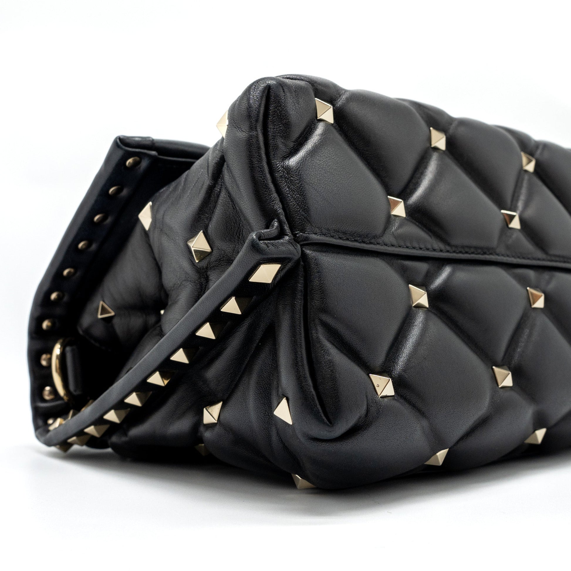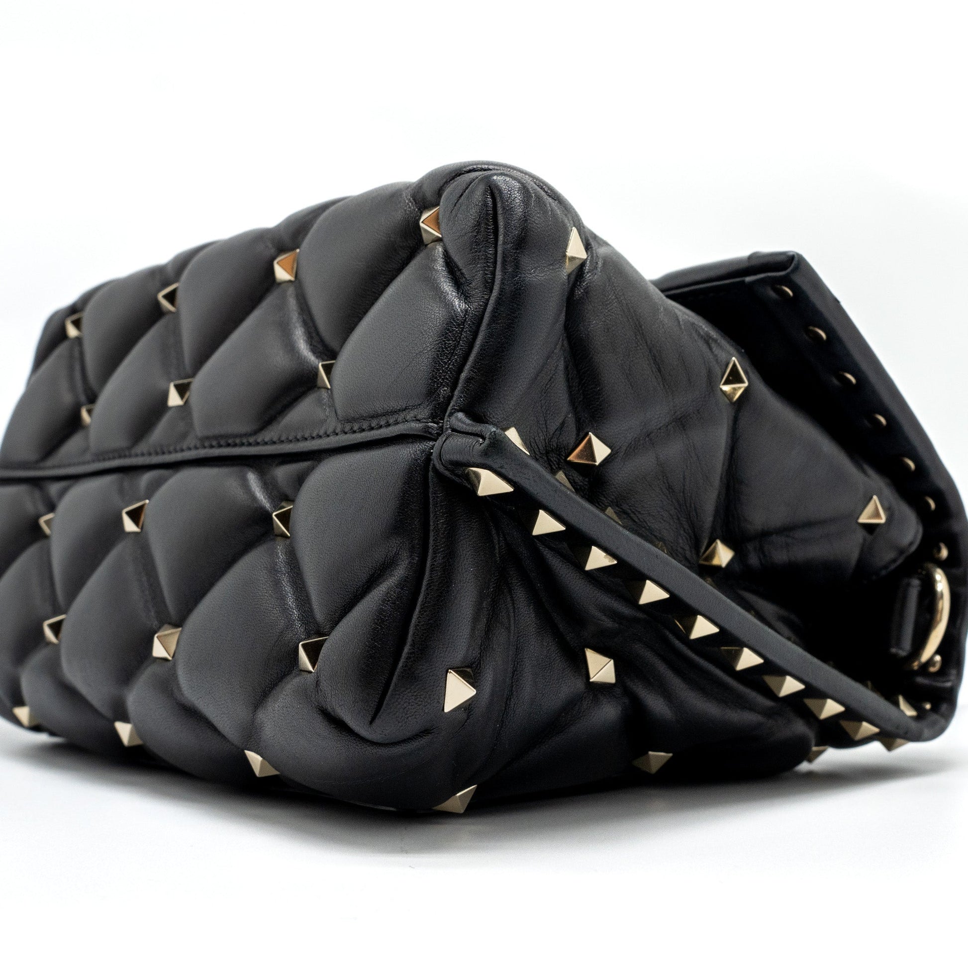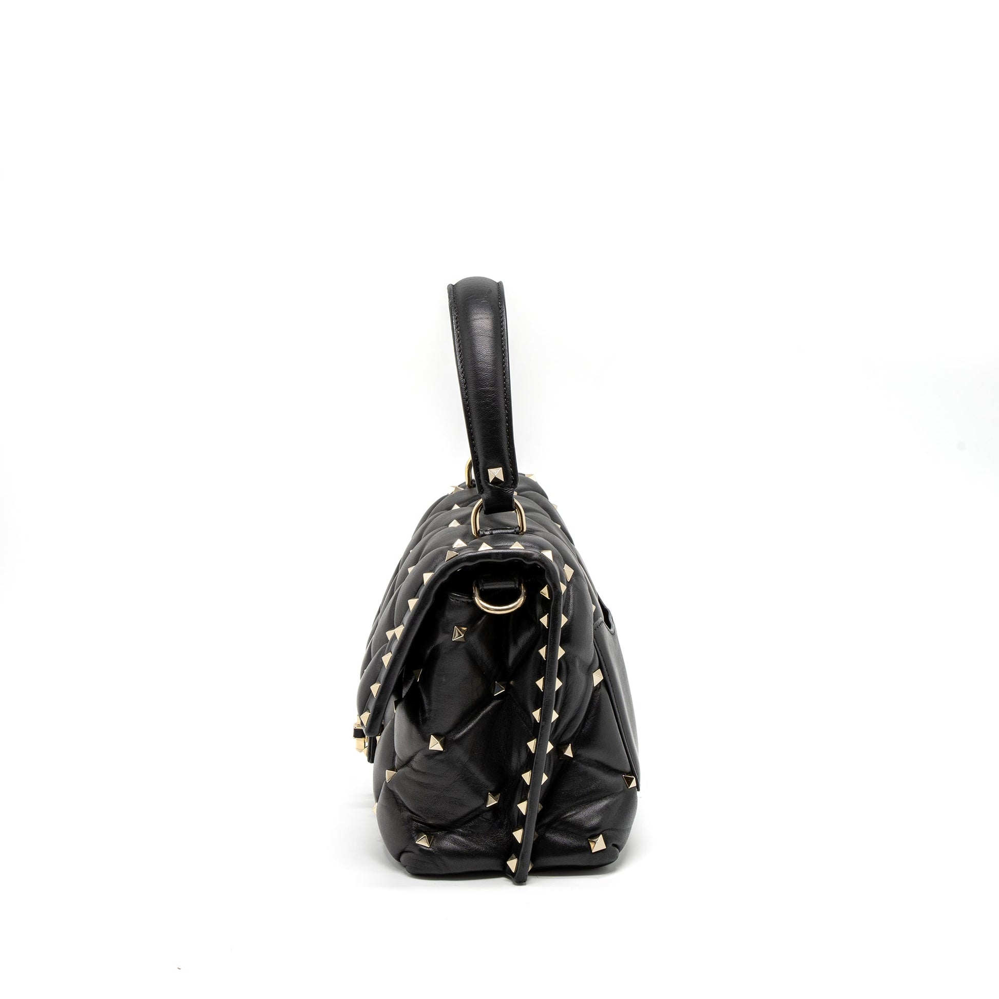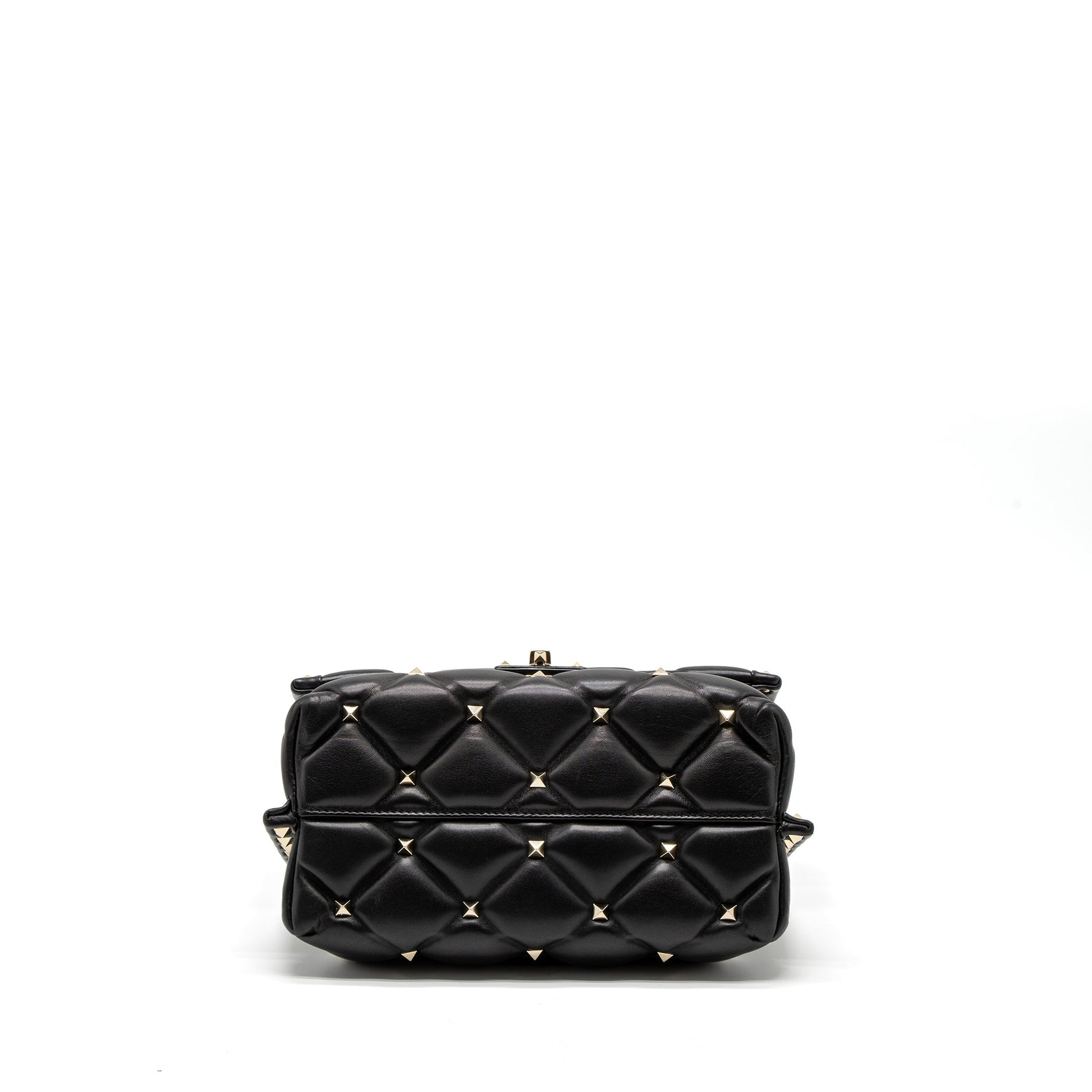 Valentino Top Handle Quilted Candystud Flap Bag Lambskin Black LGHW