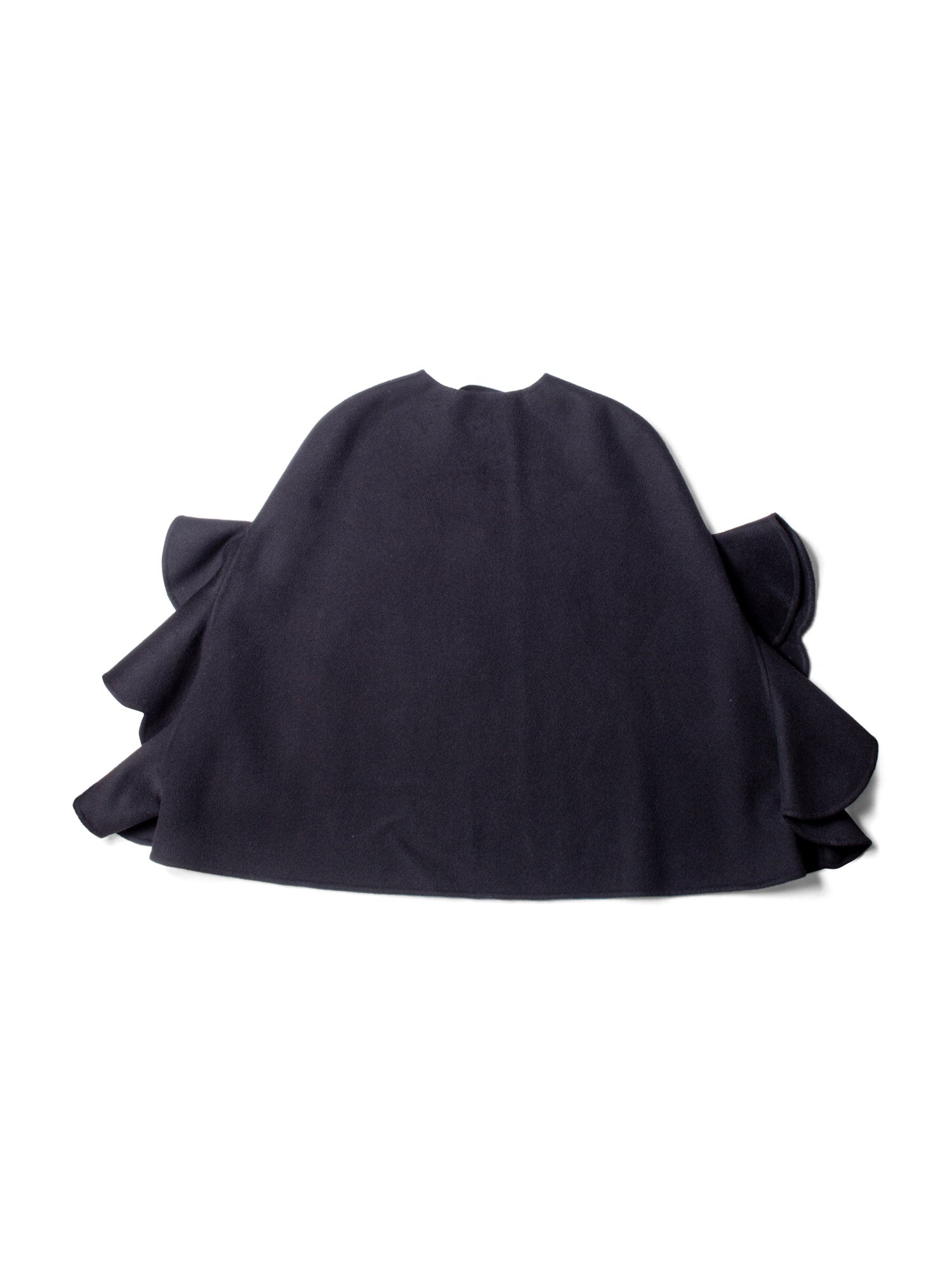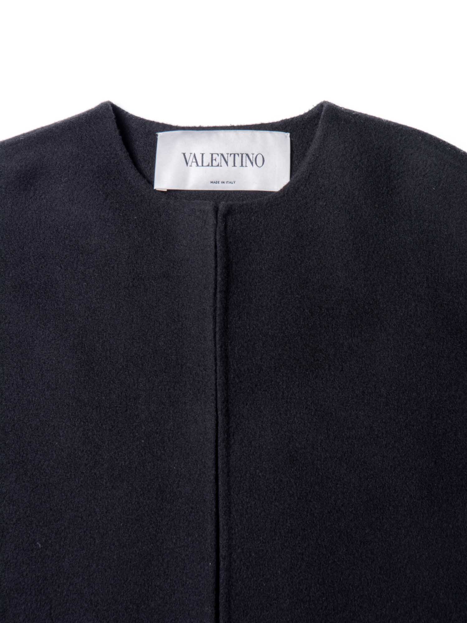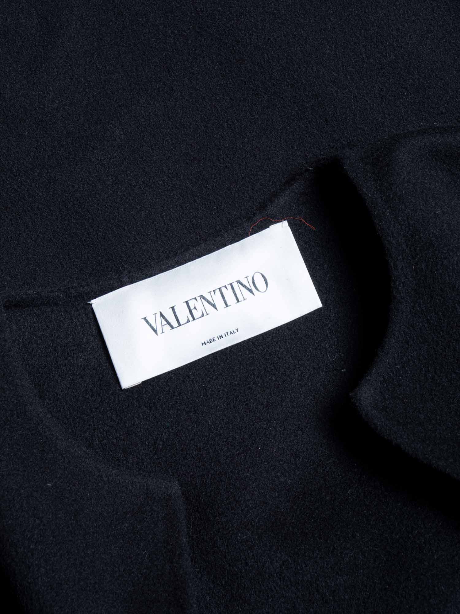 Valentino Cape or . This cape is in a black wool and cashmere fabric. It features a front hidden hook closure and ruffling.