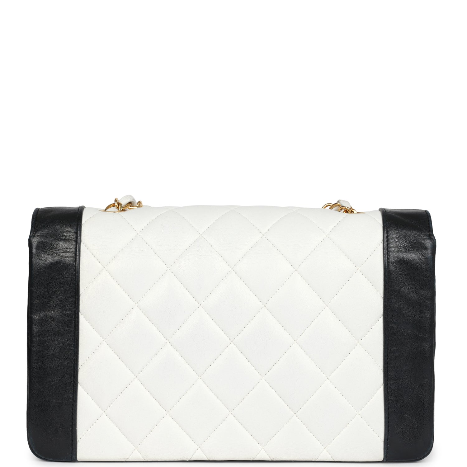 Vintage Chanel Medium Diana Flap Bag White and Black Lambskin Gold Hardware