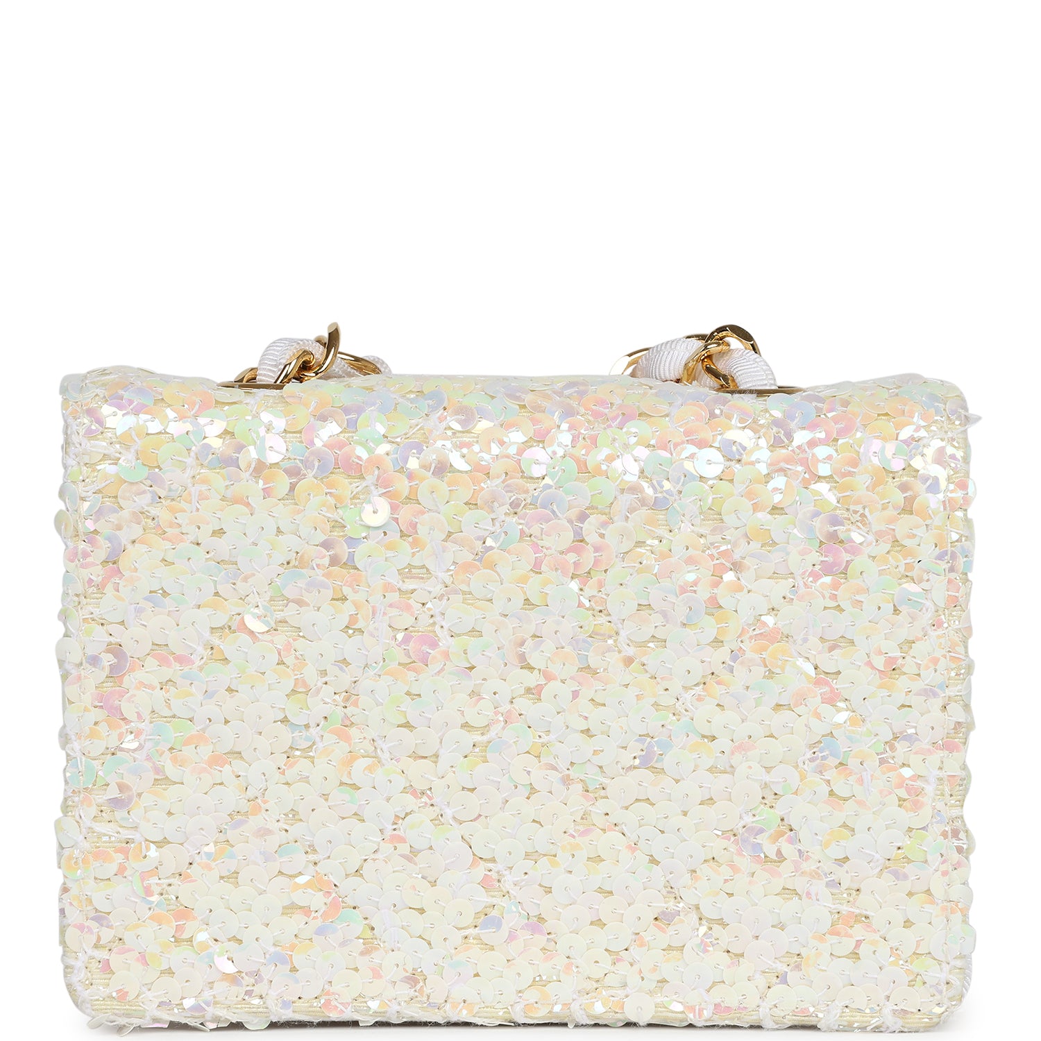 Vintage Chanel Micro Half Flap Iridescent Ivory Sequin Gold Hardware