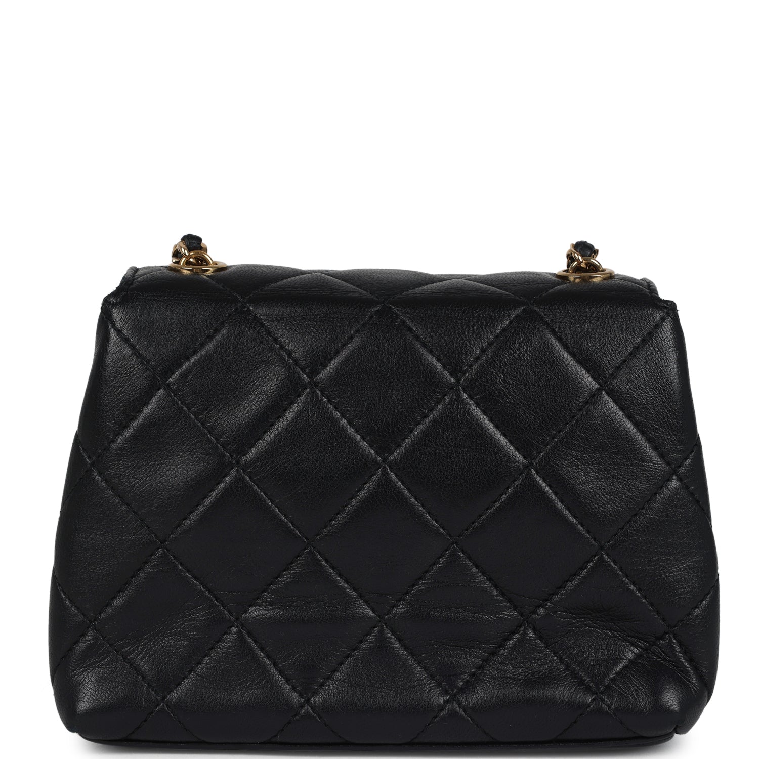 Vintage Chanel Mini Camellia Flap Bag Black Lambskin Gold Hardware