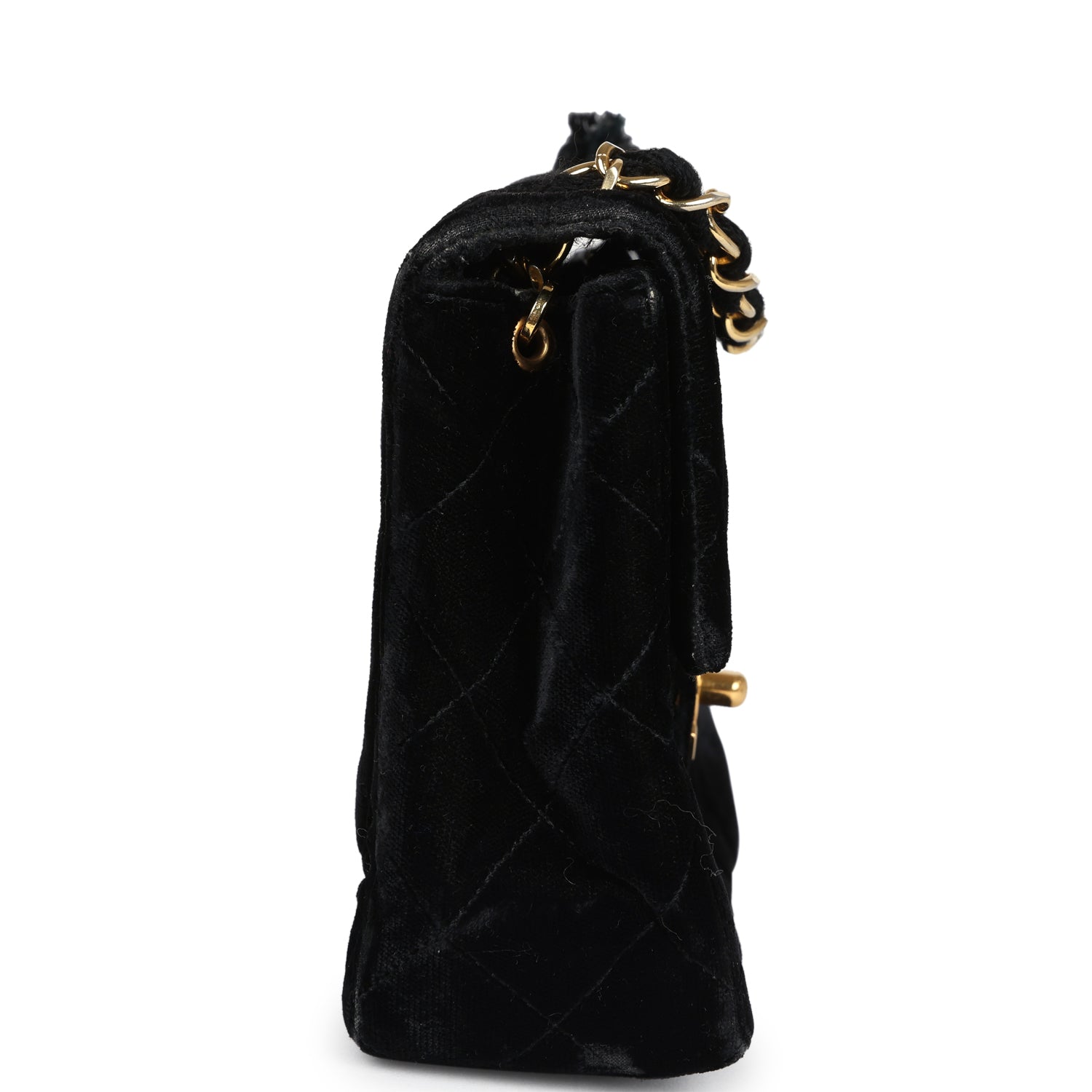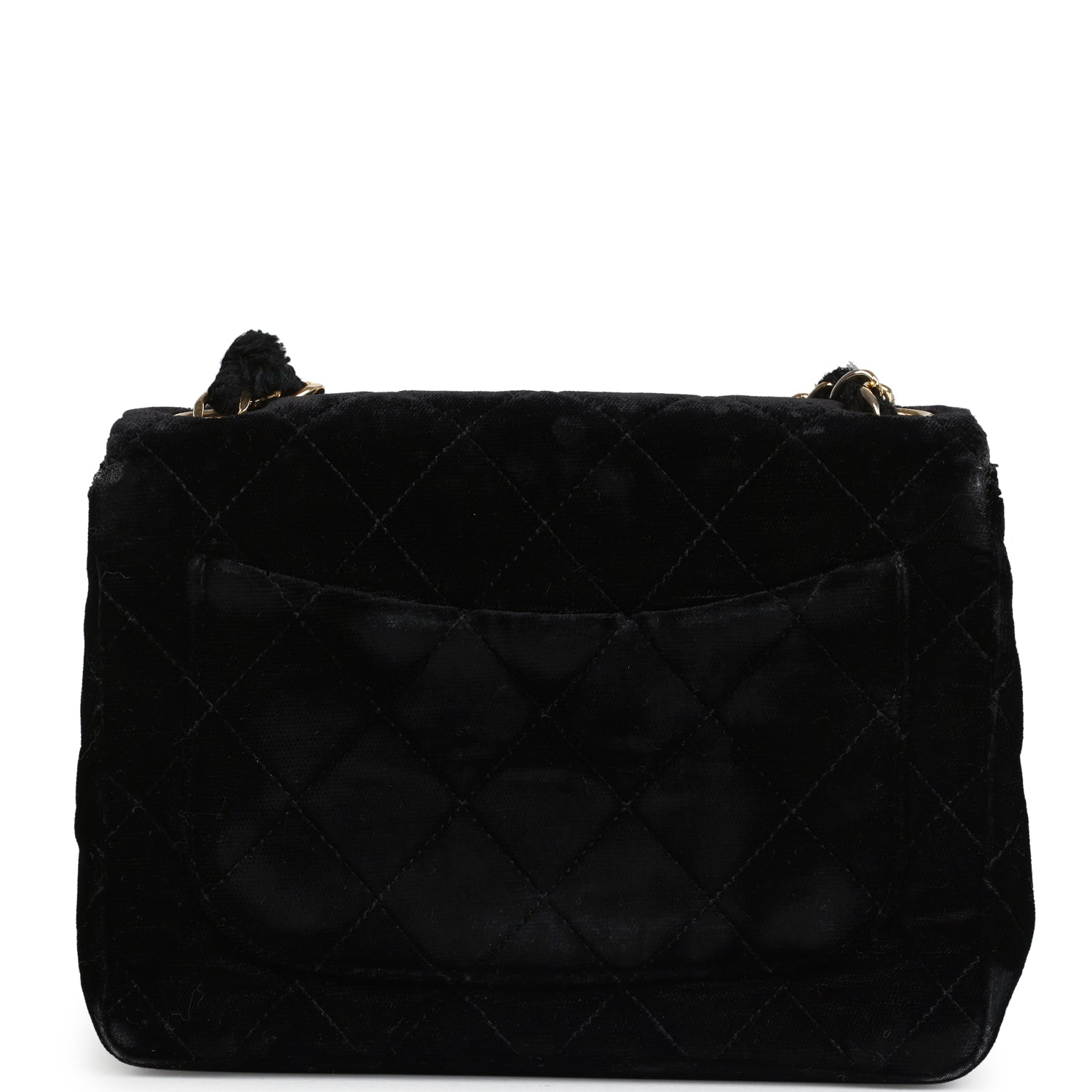 Vintage Chanel Mini Square Flap Bag Black Velvet Gold Hardware