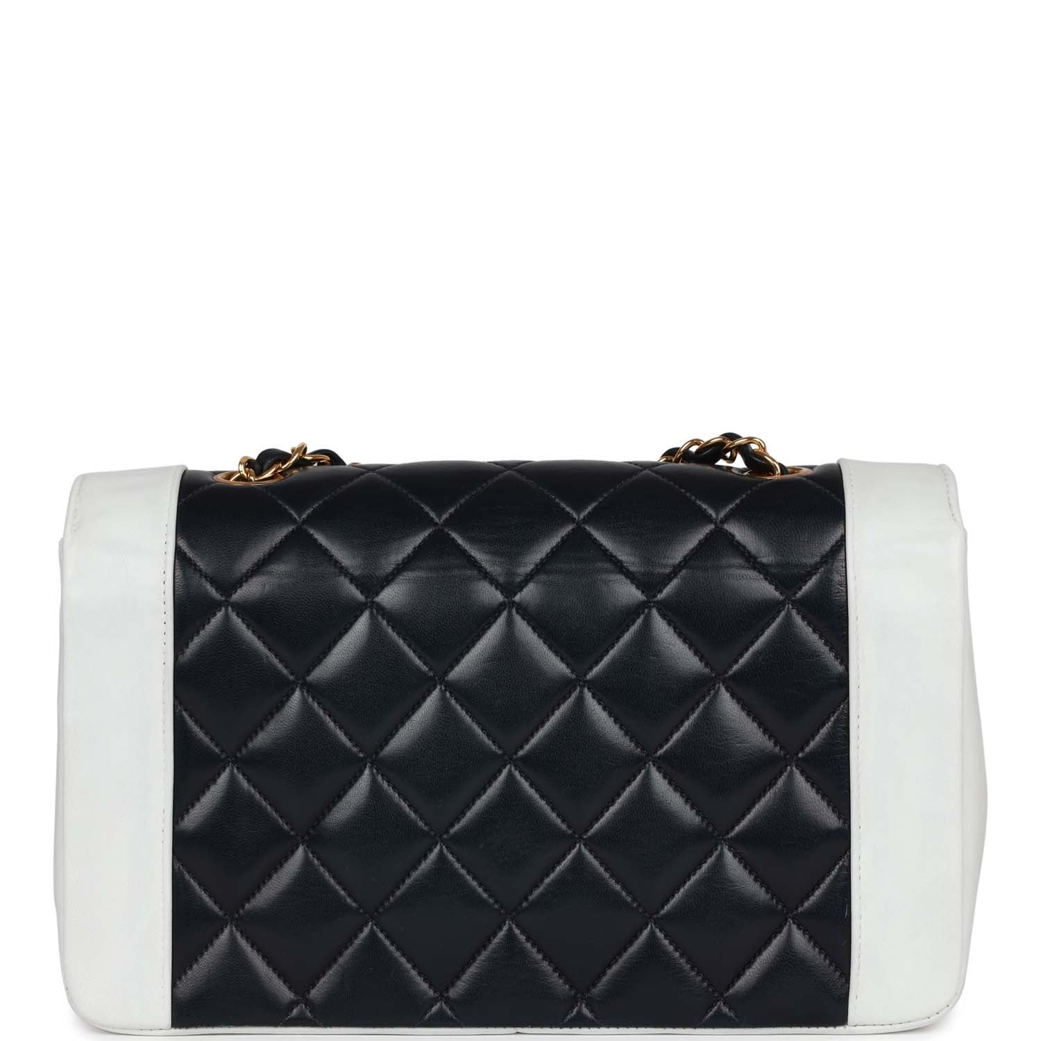 Vintage Chanel Small Diana Flap Bag White and Navy Lambskin Gold Hardware