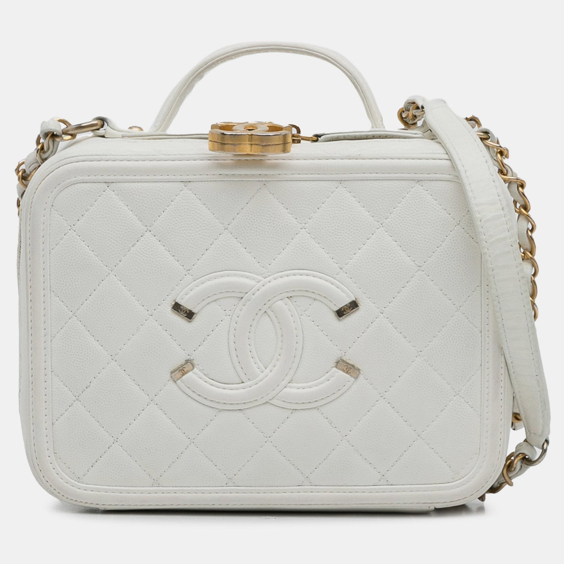 Discover the elegance of the Chanel White Medium Caviar Filigree Vanity Case, a stunning example of designer luxury handbags. Crafted from premium caviar leather, this chic vanity case combines practicality with timeless style, perfect for any occasion. Our price comparison platform allows you to find the best deals when you buy luxury handbags online, ensuring you get quality without compromise. Chanel's renowned reputation for excellence s that this bag meets the highest standards of craftsmanship. Trust our expert insights to navigate your luxury handbag journey and make a confident purchase. Elevate your collection with this iconic piece today.