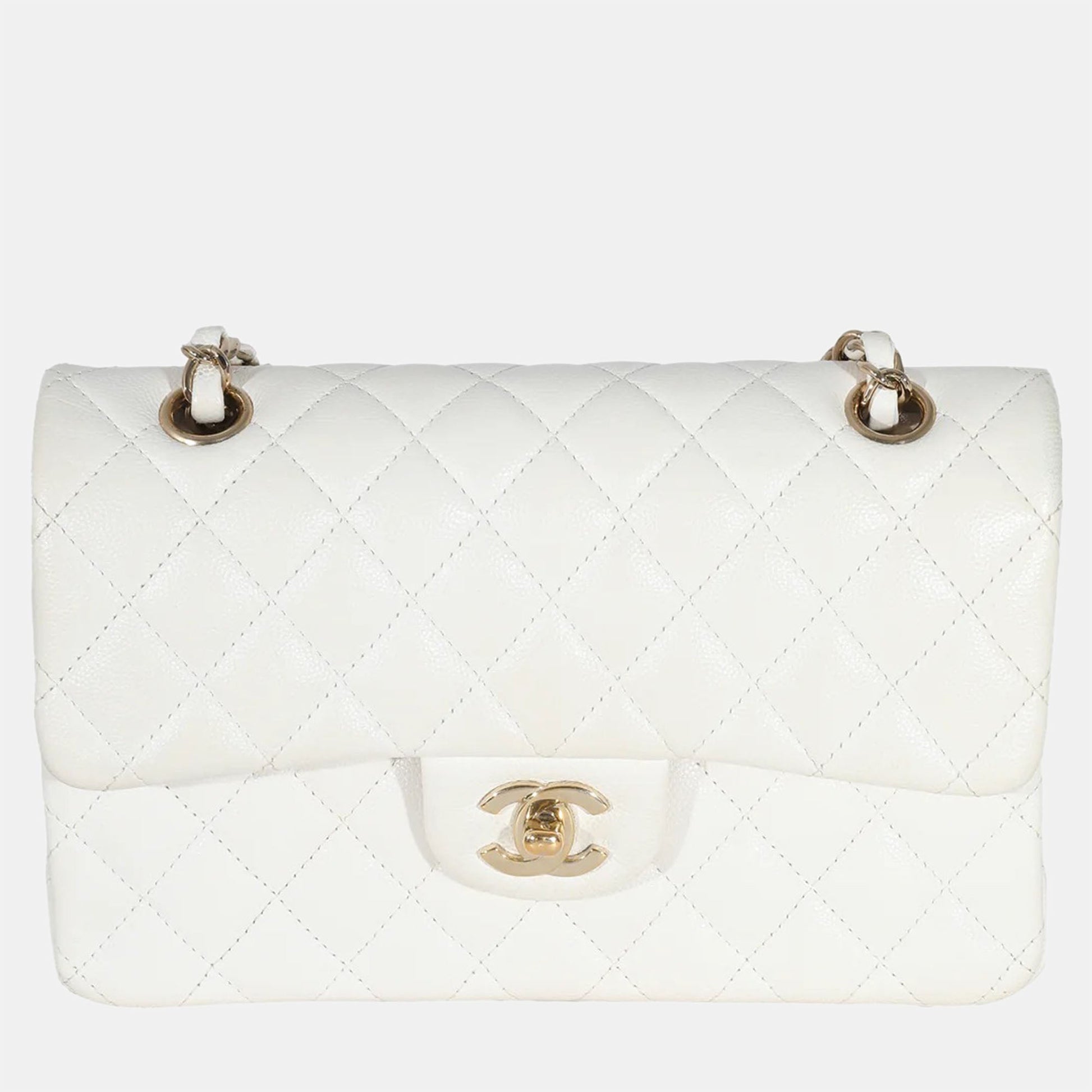 Discover the elegance of the Chanel White Quilted Caviar Small Classic Double Flap Bag, a premier choice in designer luxury handbags. Crafted from premium caviar leather, this iconic bag features a timeless quilted design and a versatile double flap for added practicality. With its exceptional quality and Chanel's renowned brand reputation, itβs a must-have for any fashion enthusiast. Enhance your shopping experience by using our price comparison platform to find the best deals when you buy luxury handbags online. Trust our expertise to guide you in making informed decisions, ensuring you invest wisely in this exquisite accessory.